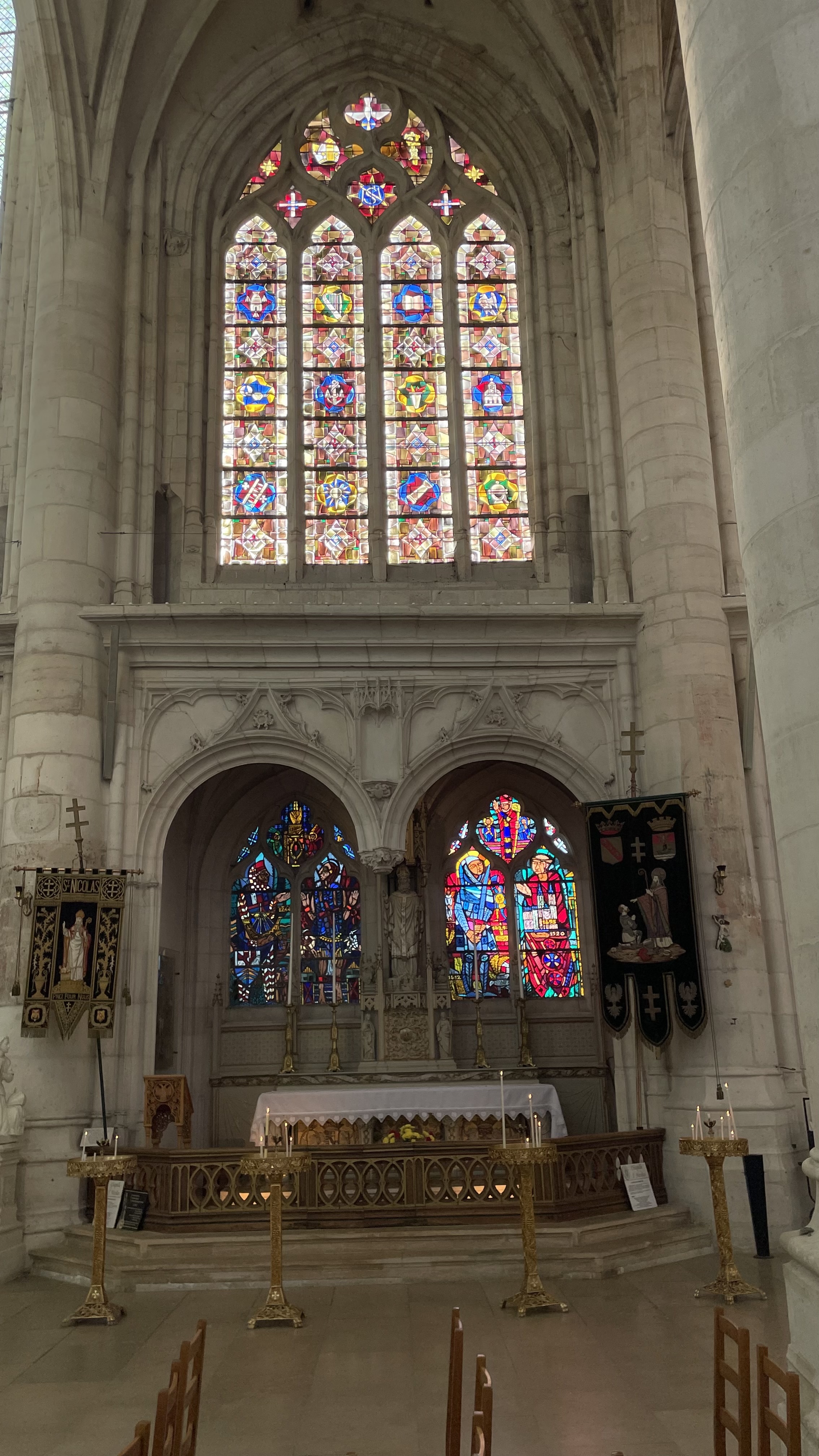 Baignée de lumière grâce aux vitraux clairs et à la pierre blanche, elle vous surprendra par sa forme non rectiligne. À visiter absolument si vous êtes sur Saint Nicolas de port !
