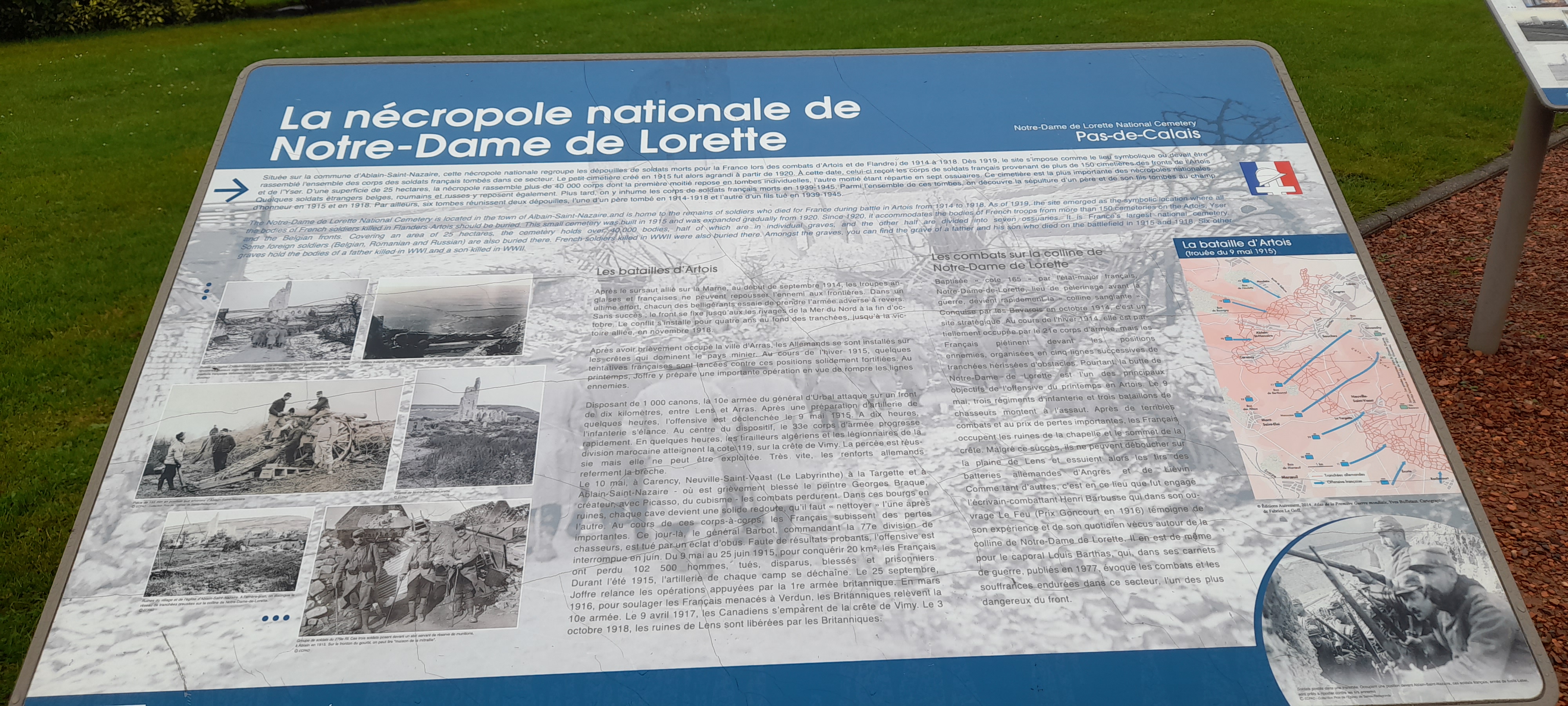 Lieu de mémoire incontournable de la guerre 14-18 Beaucoup d'émotion lorsque l'on arpente le sanctuaire où sont ensevelis les corps de plus de 42 000 soldats morts au court de la bataille de la colline de Lorette qui dura près de 12 mois !
