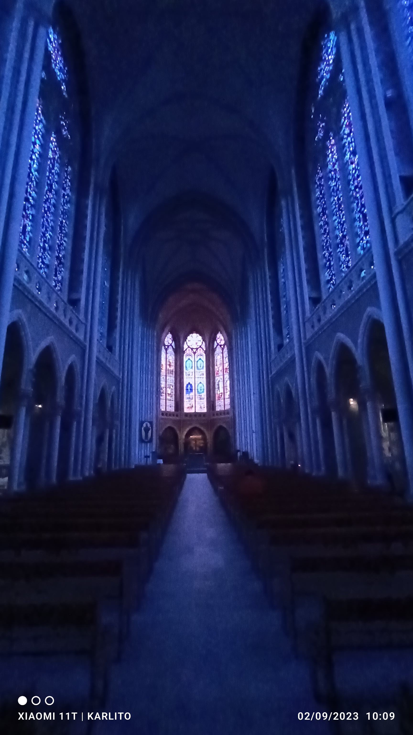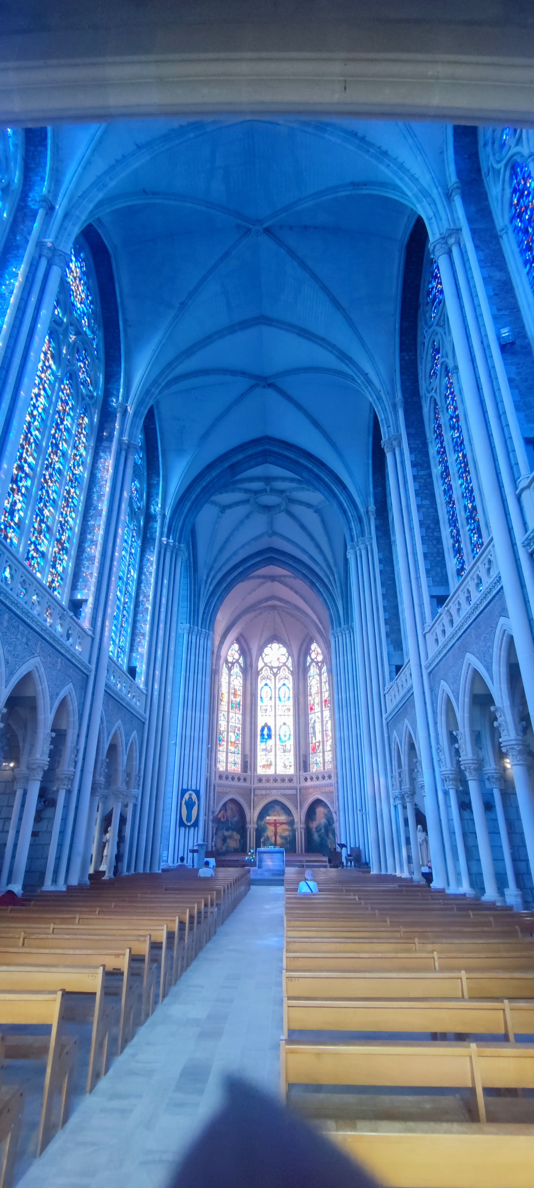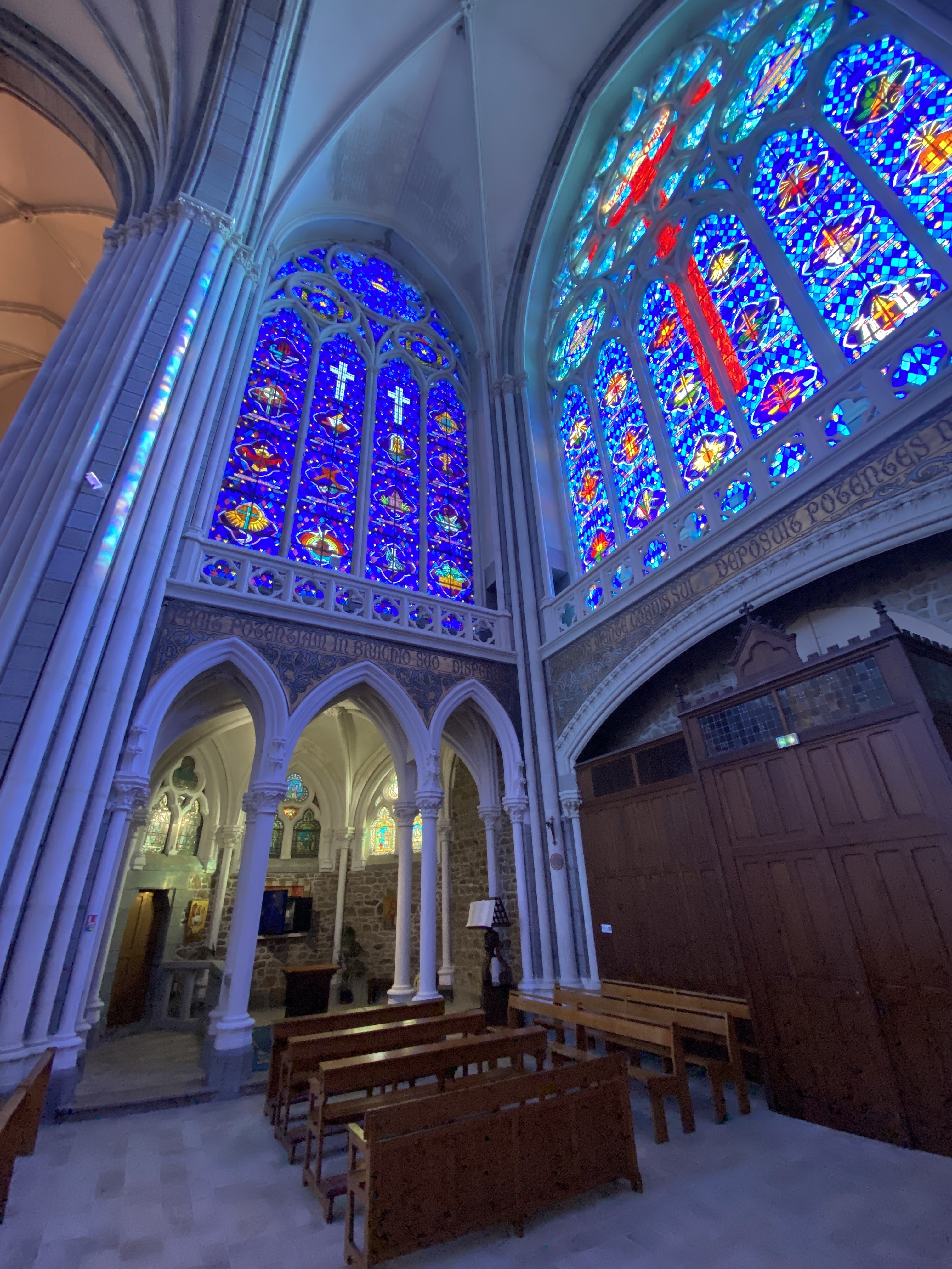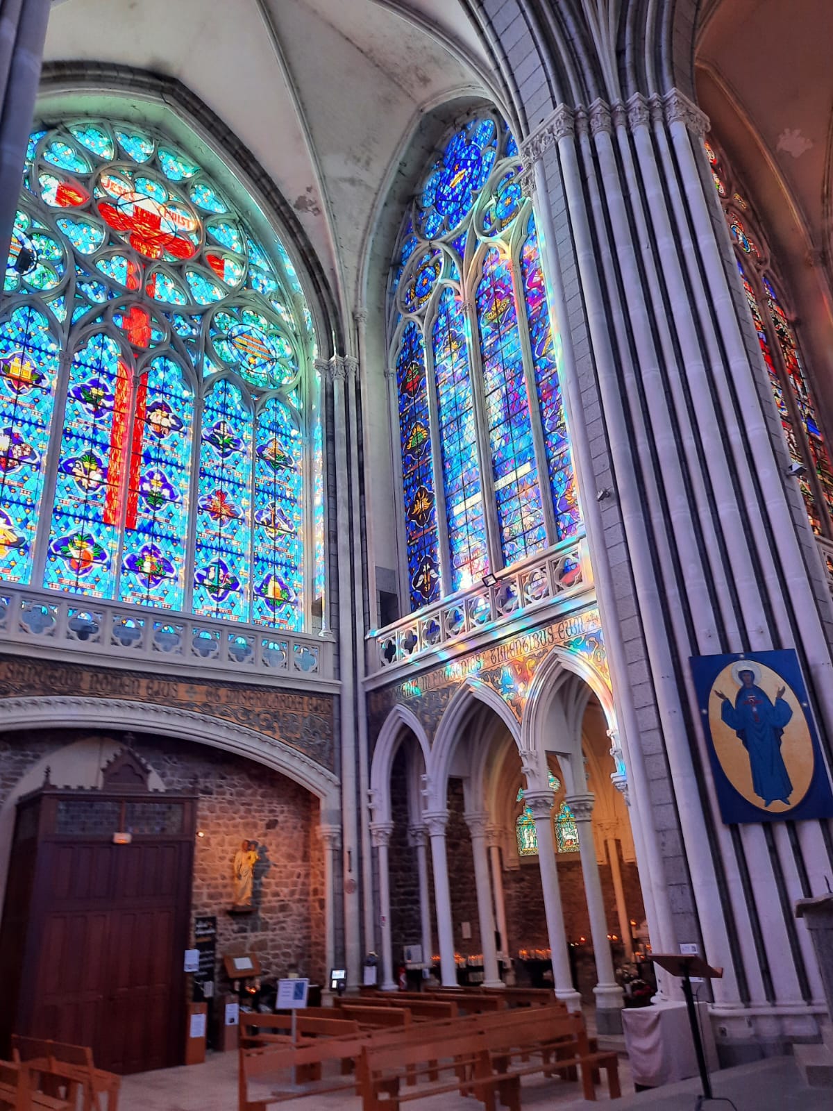 Le reflet des vitraux inondent la basilique quand le soleil pointe le bout de son nez. Magnifique