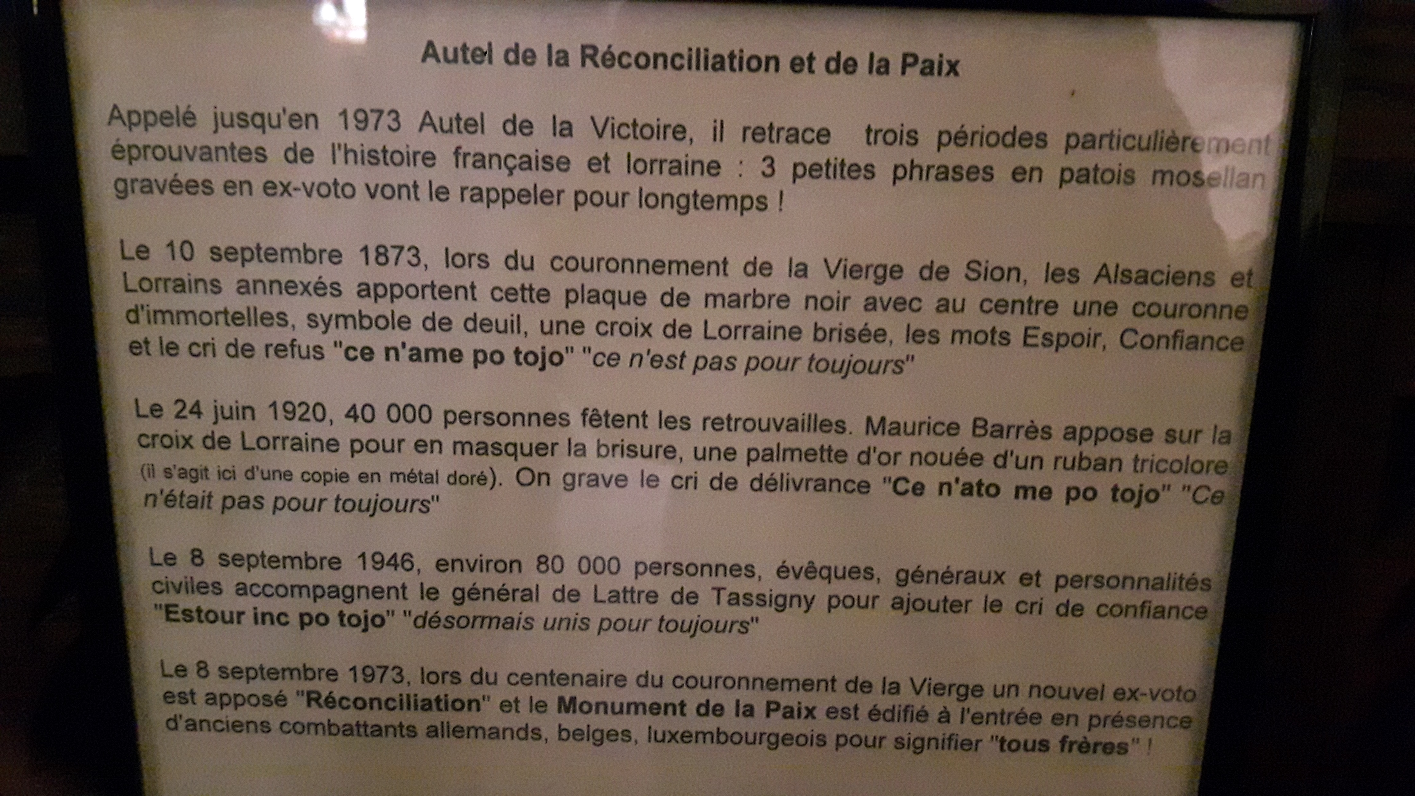 Lieu chargé d'histoire, propice à la méditation et à la réflexion. La Basilique impose le respect et il est difficile de s'asseoir sur l'un de ses bancs intérieurs sans élever son coeur et sa pensée, voire ses prières et sa louange vers Celui qui en a inspiré les architectes, Dieu, Son Fils Jésus et la maman, Marie, qui a mis au monde Celui qui allait devenir son propre Sauveur et celui de tous ceux qui l'acceptent. Nous avons beaucoup reçu de cette visite. A visiter absolument si vous êtes en Meurthe et Moselle.
