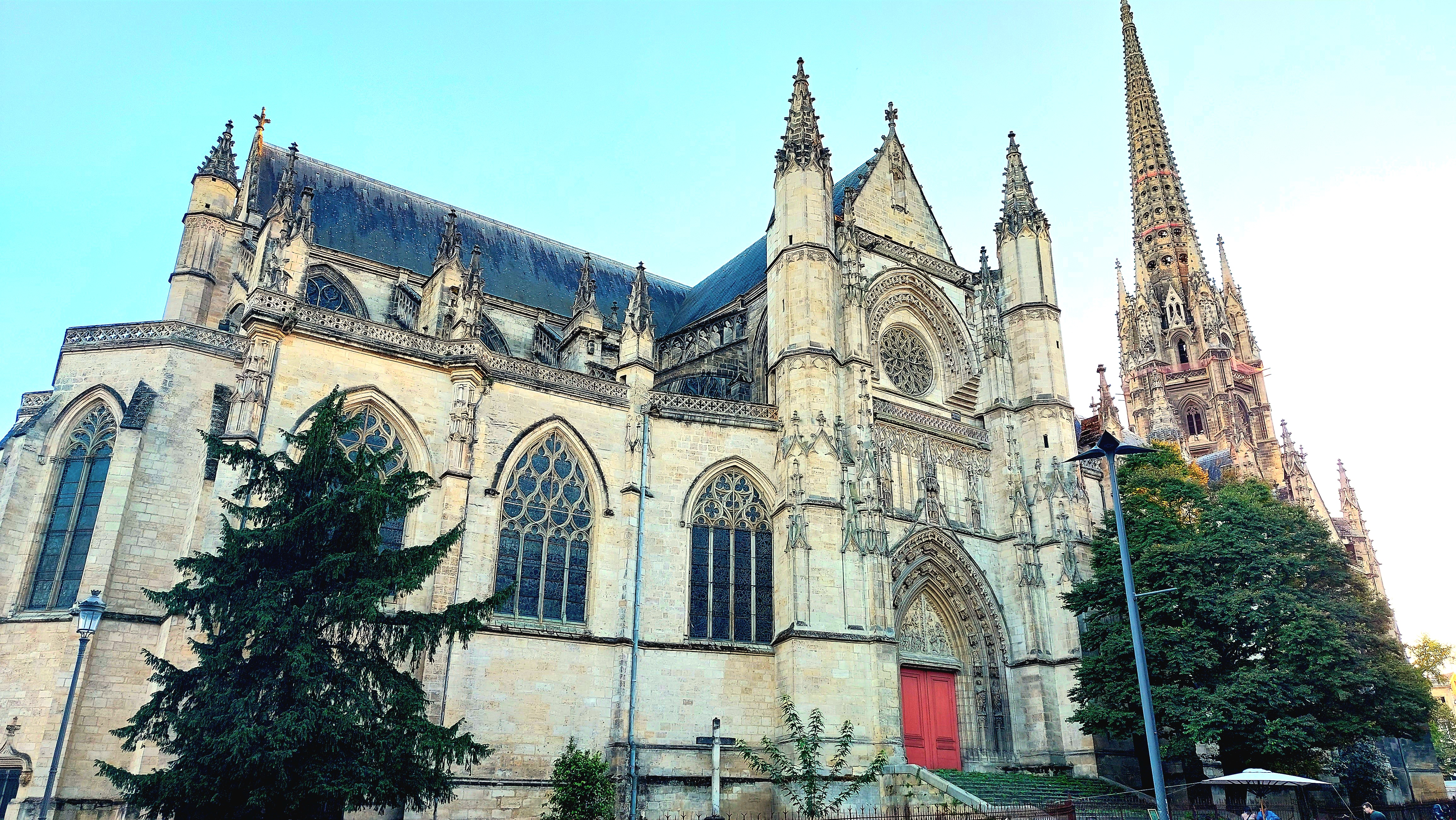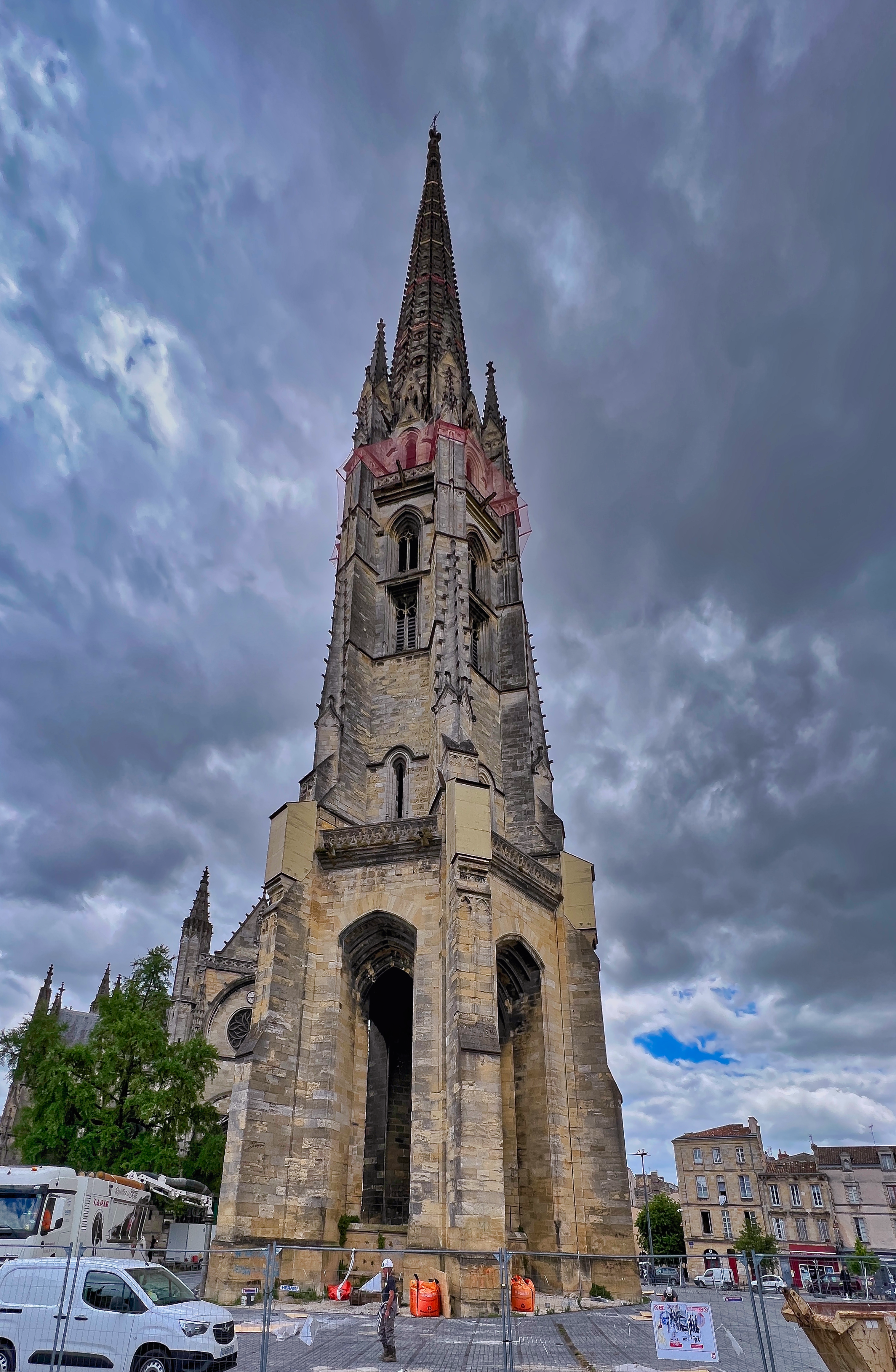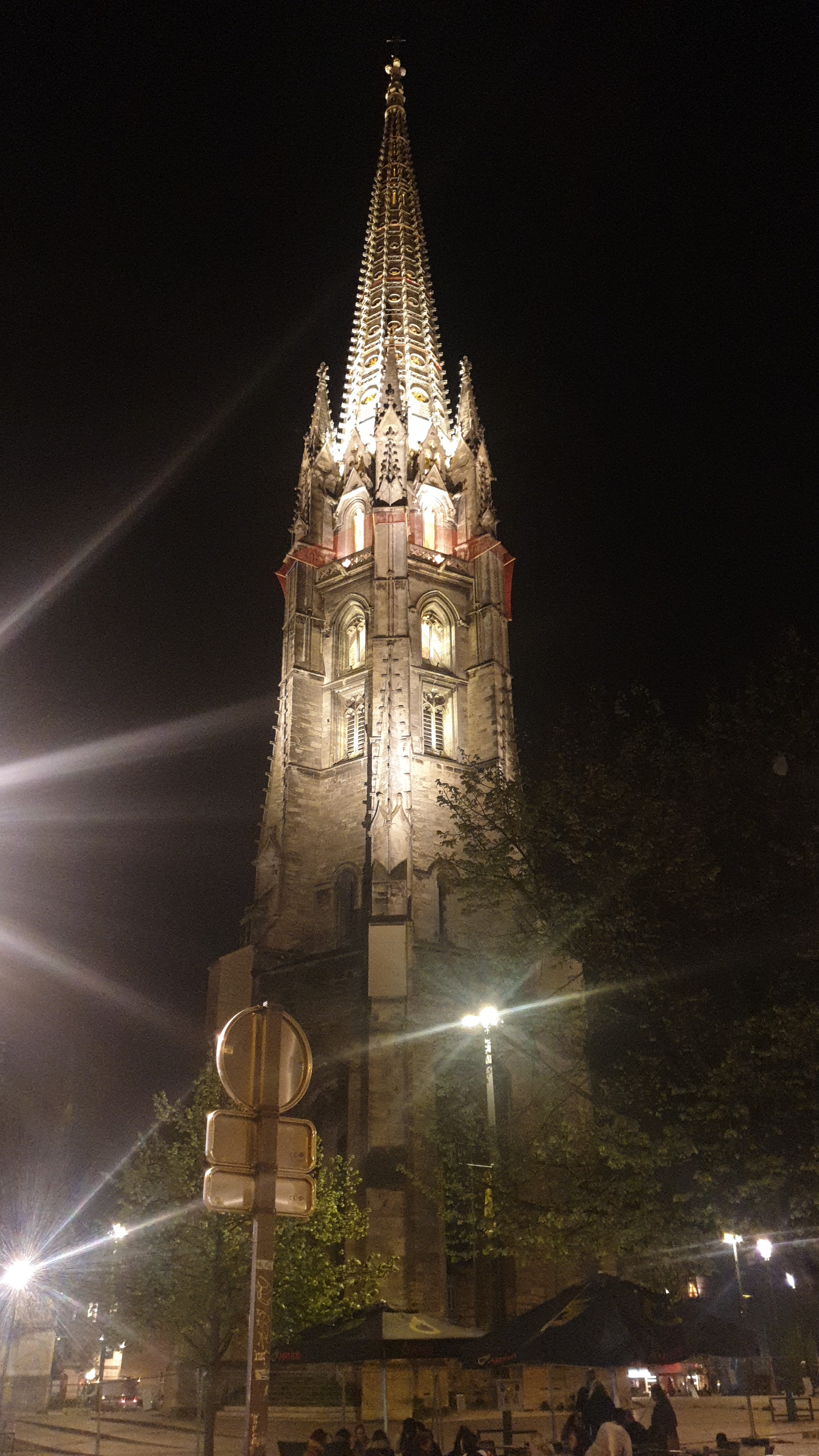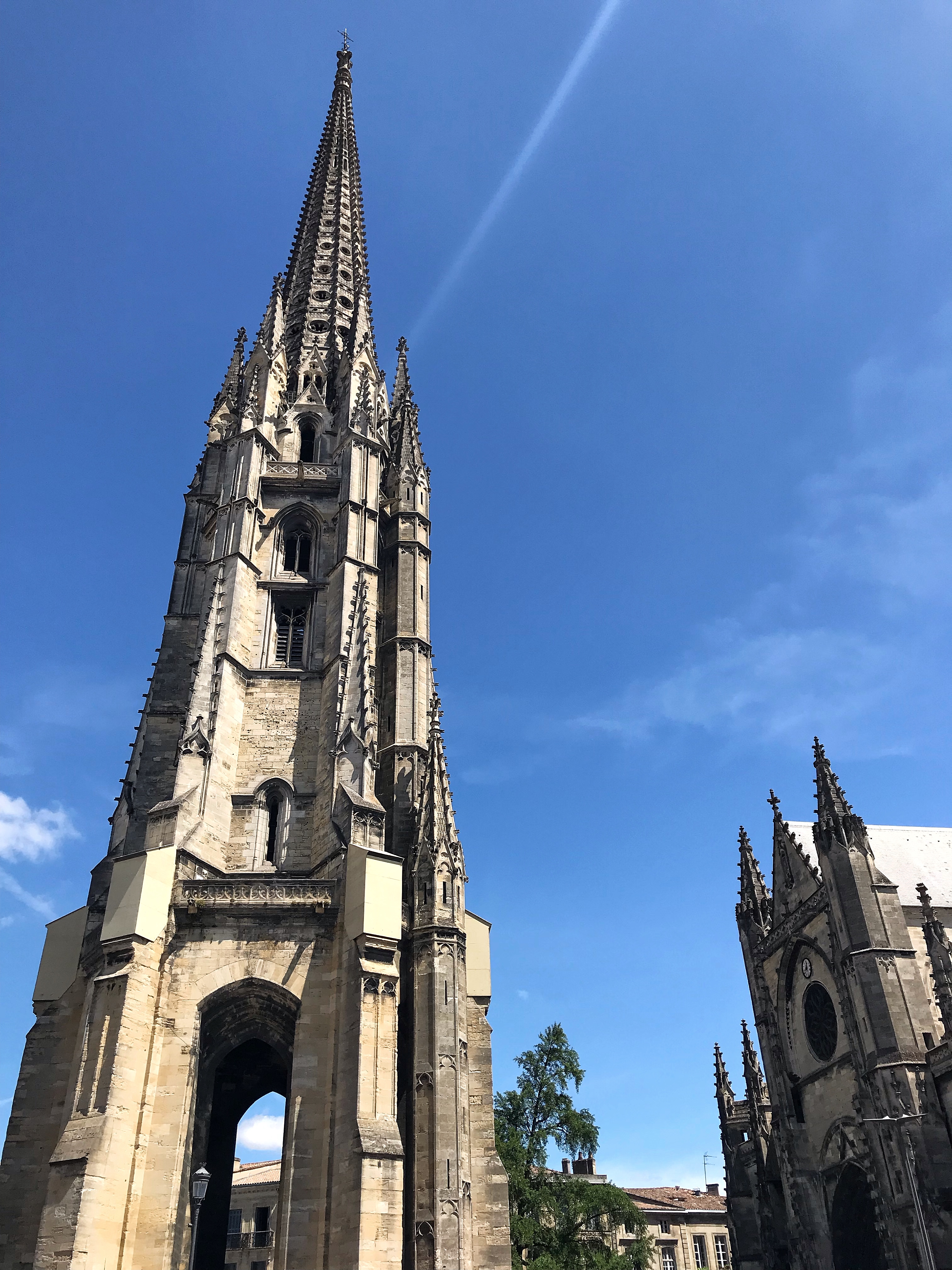 Très joli bâtiment gothique flamboyant construit entre le 14eme et 16eme siècle. Notre surprise, le clocher indépendant du sanctuaire. Le clocher à été séparé de l'église pour éviter que le poids de celui-ci ne déstabilise le bâtiment de l’église. En effet, la présence de sols marécageux instables dans le sous-sol bordelais risquait de provoquer l’effondrement du clocher fortement soumis aux vibrations.