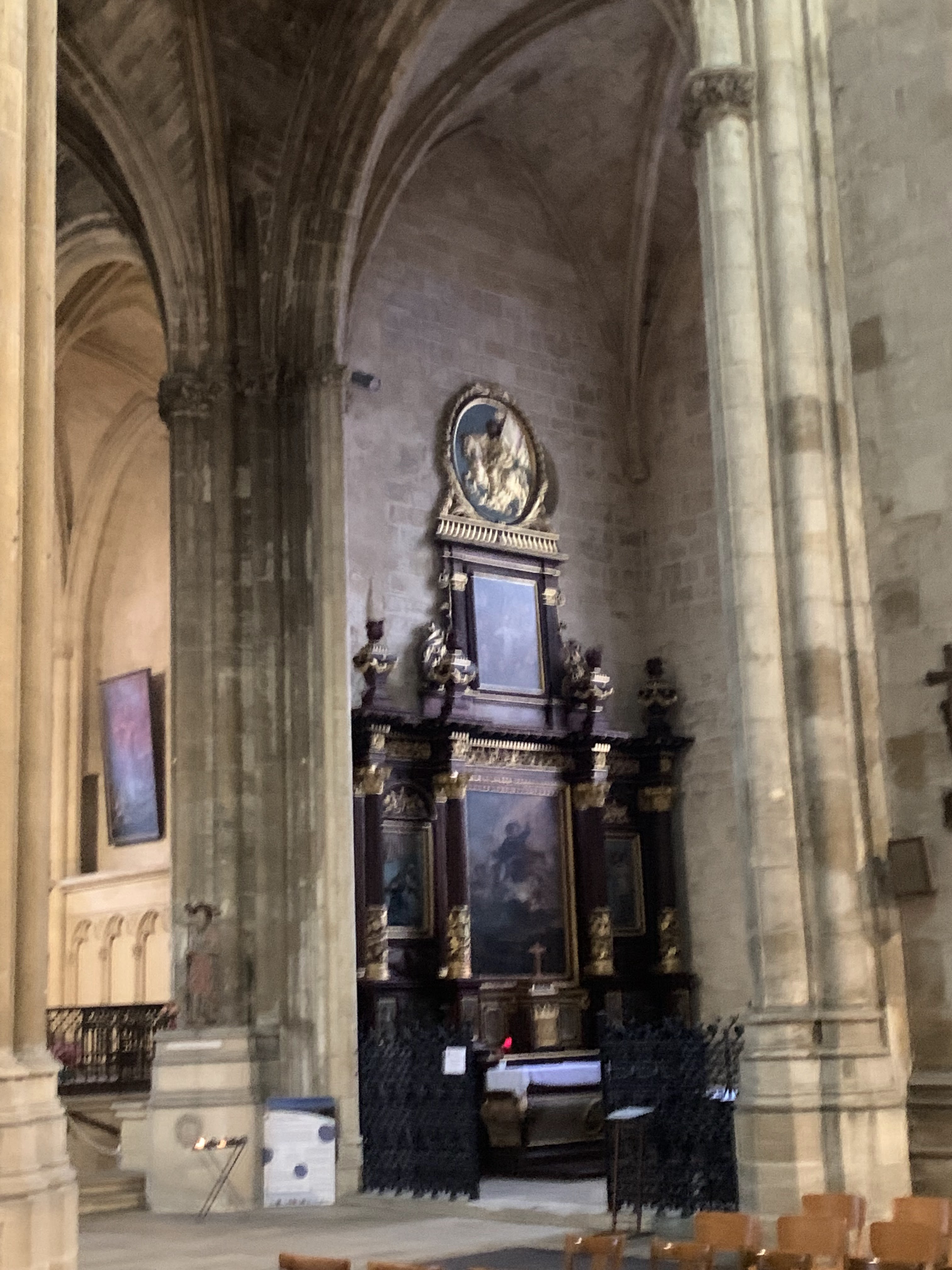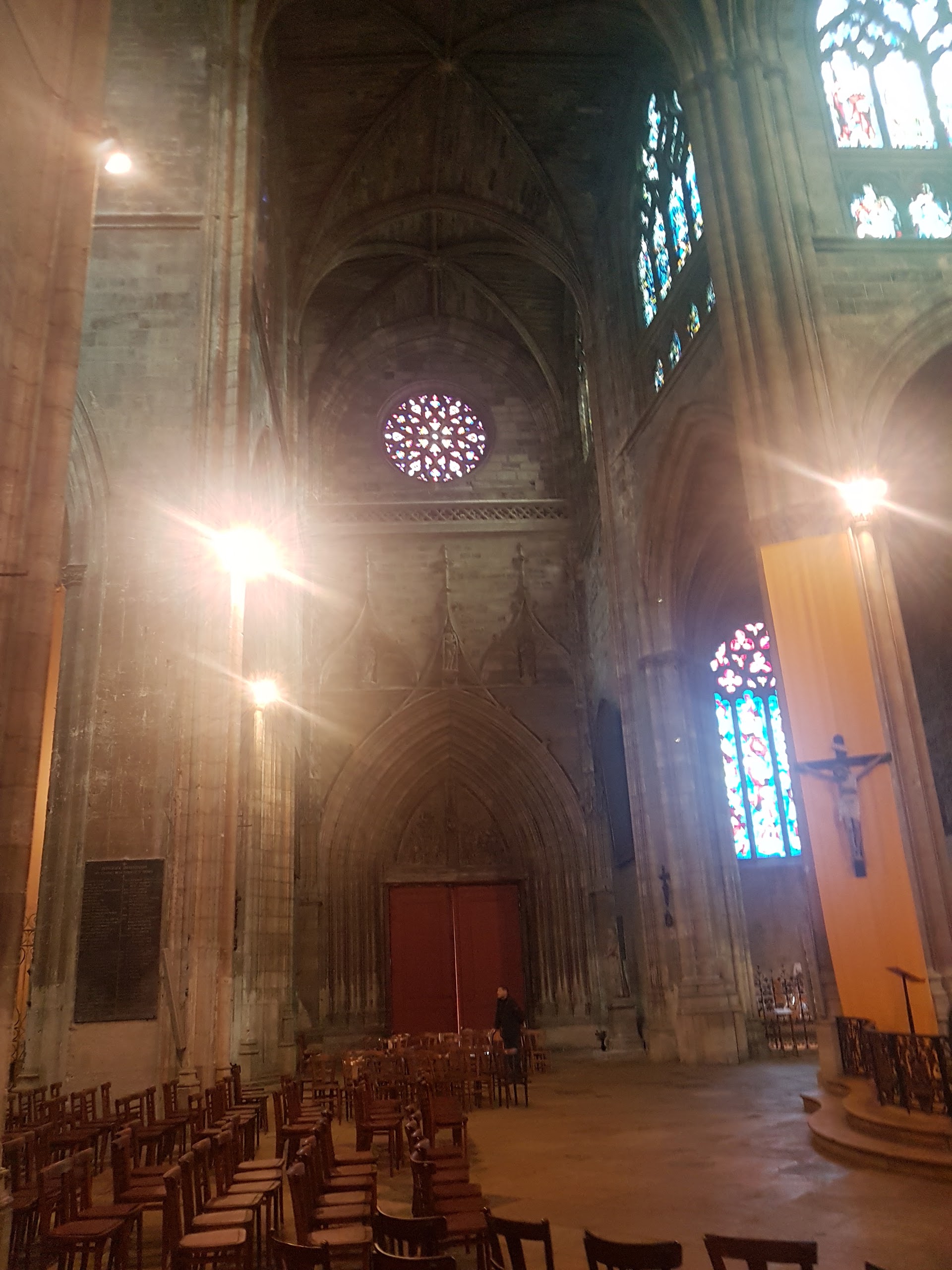 Il y a un marché bcp de commerce qui a un peu caché la vu d'extérieur du eglise , on es venu le samedi martin . Intérieur est classic., Beau vitre revisité façon moderne. Orgue impressionnant.