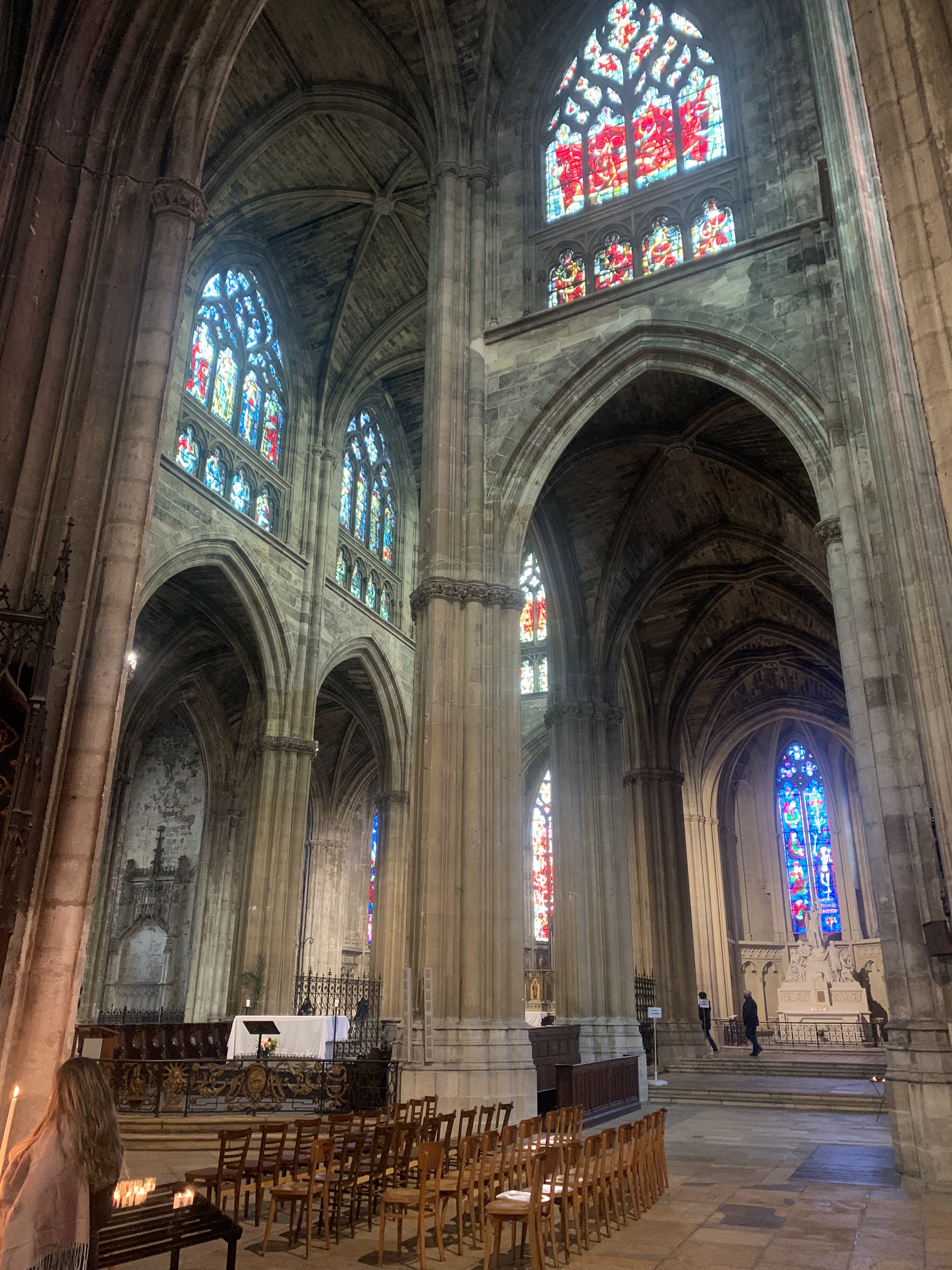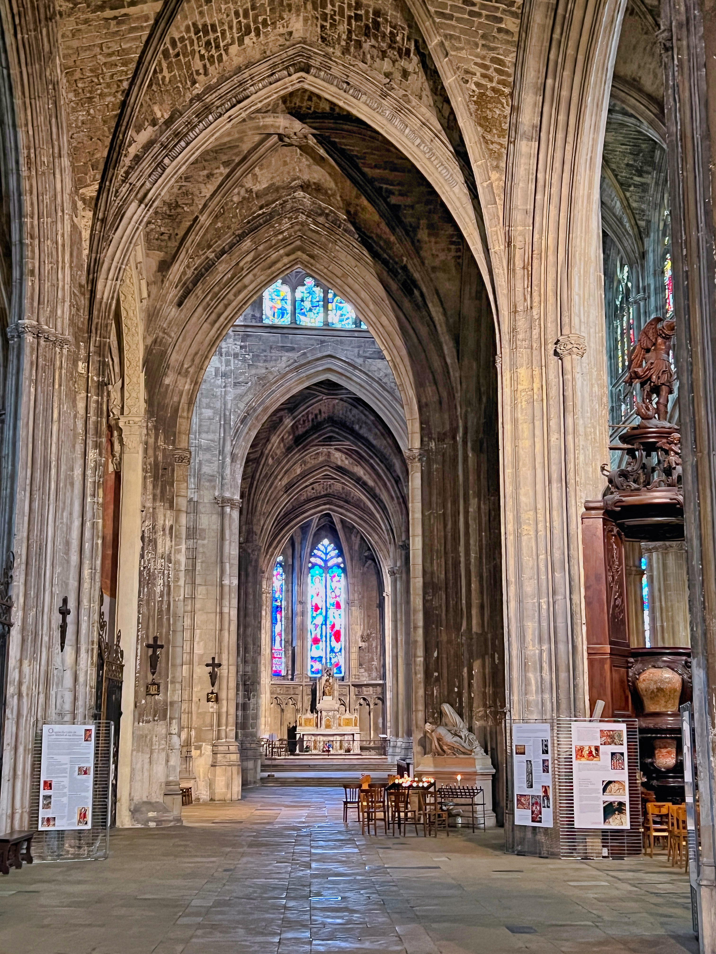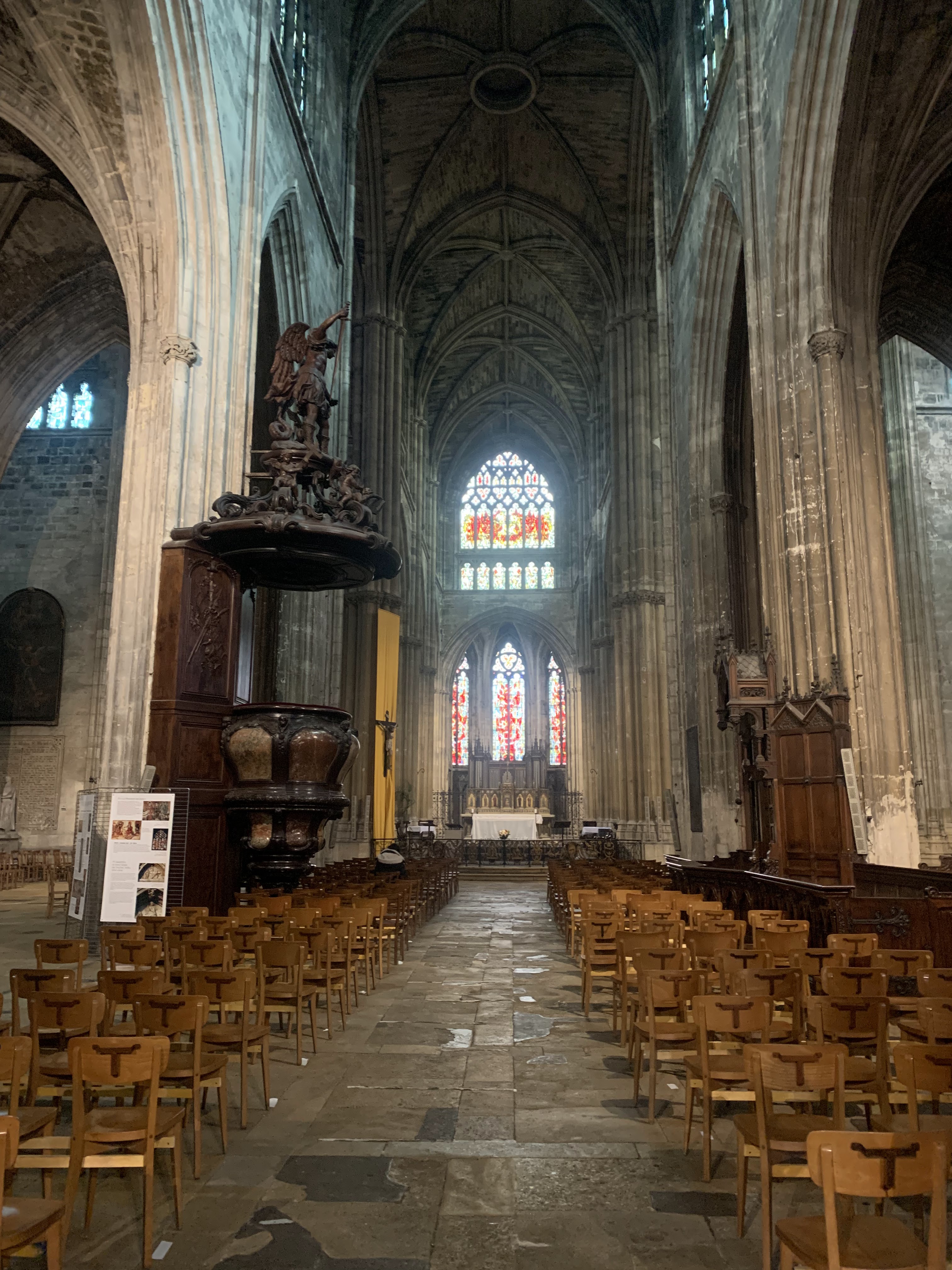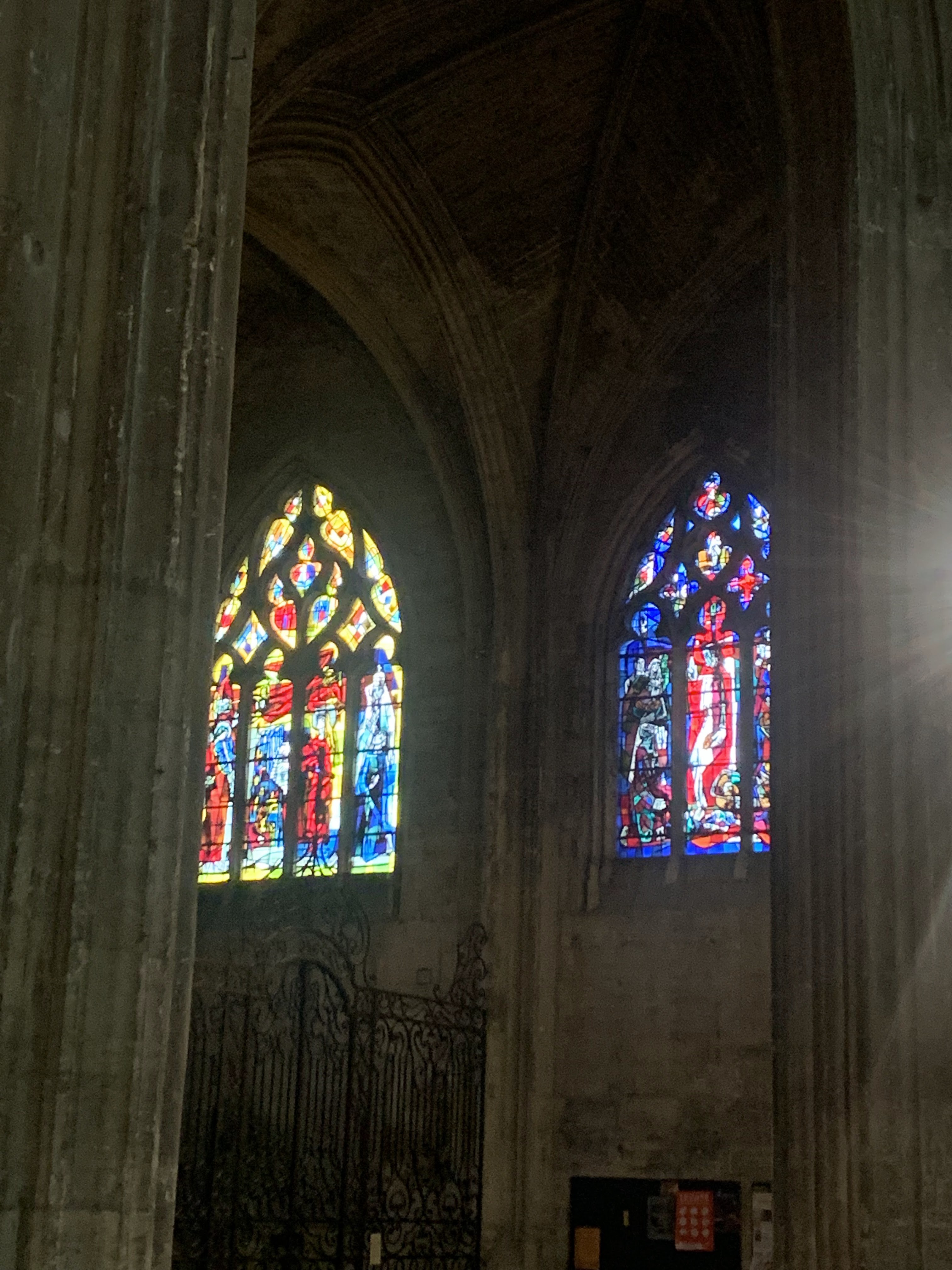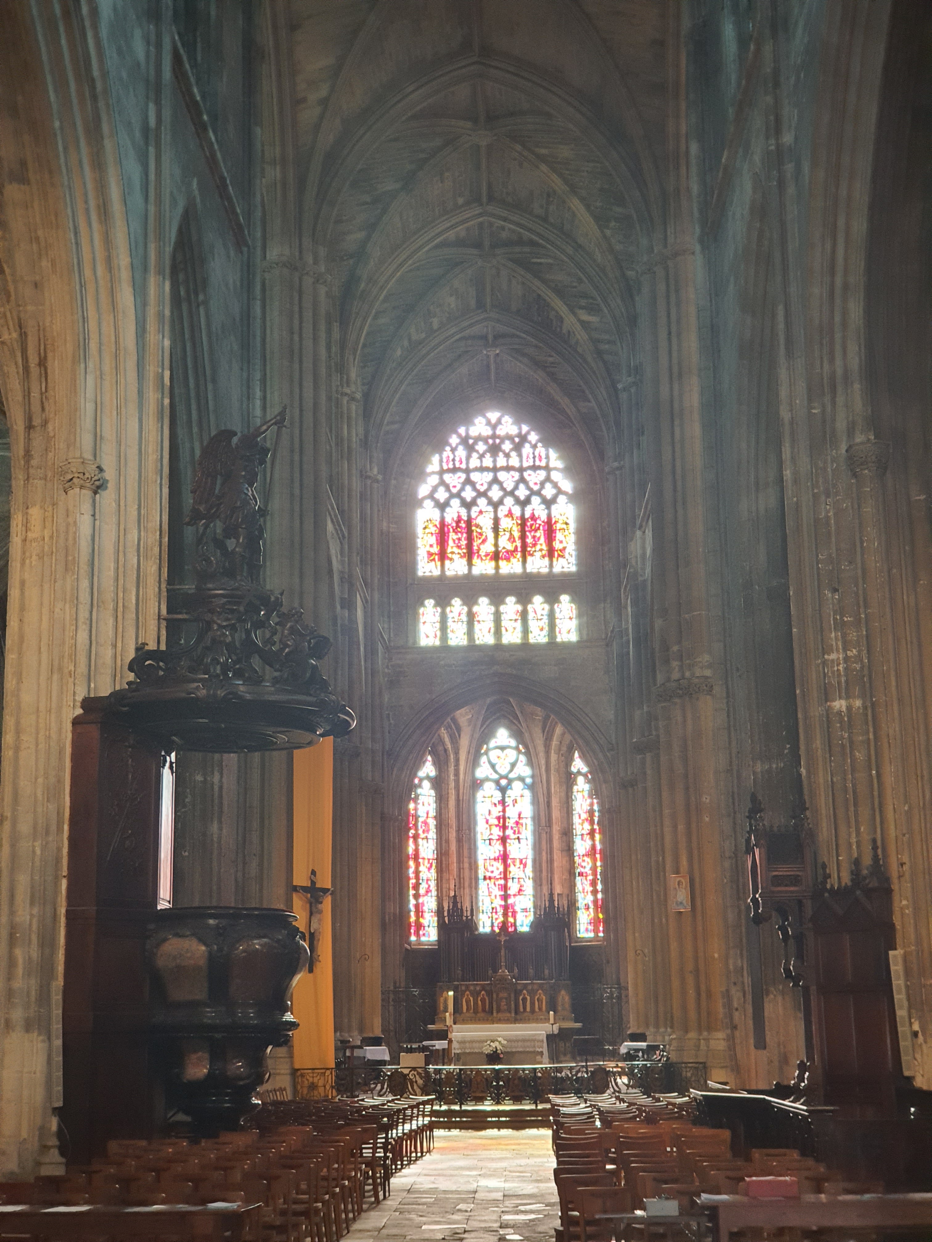 Belle cathédrale : jolis vitraux et hauteur de la voûte impressionnante