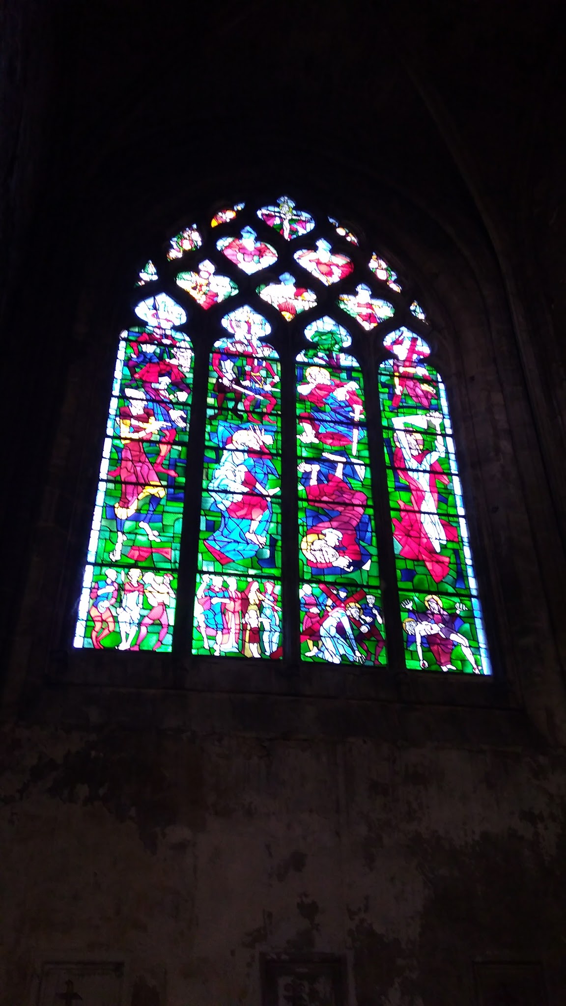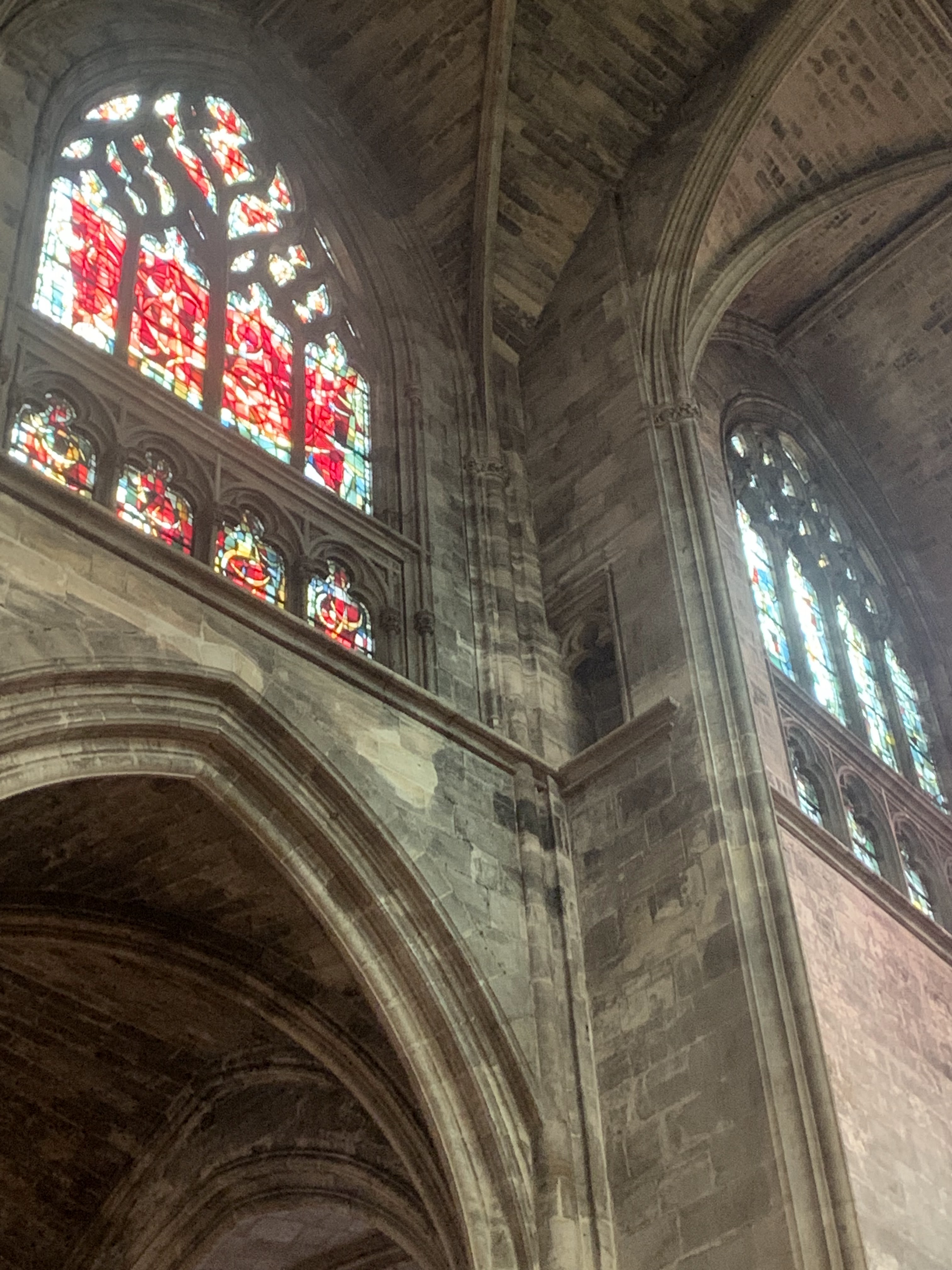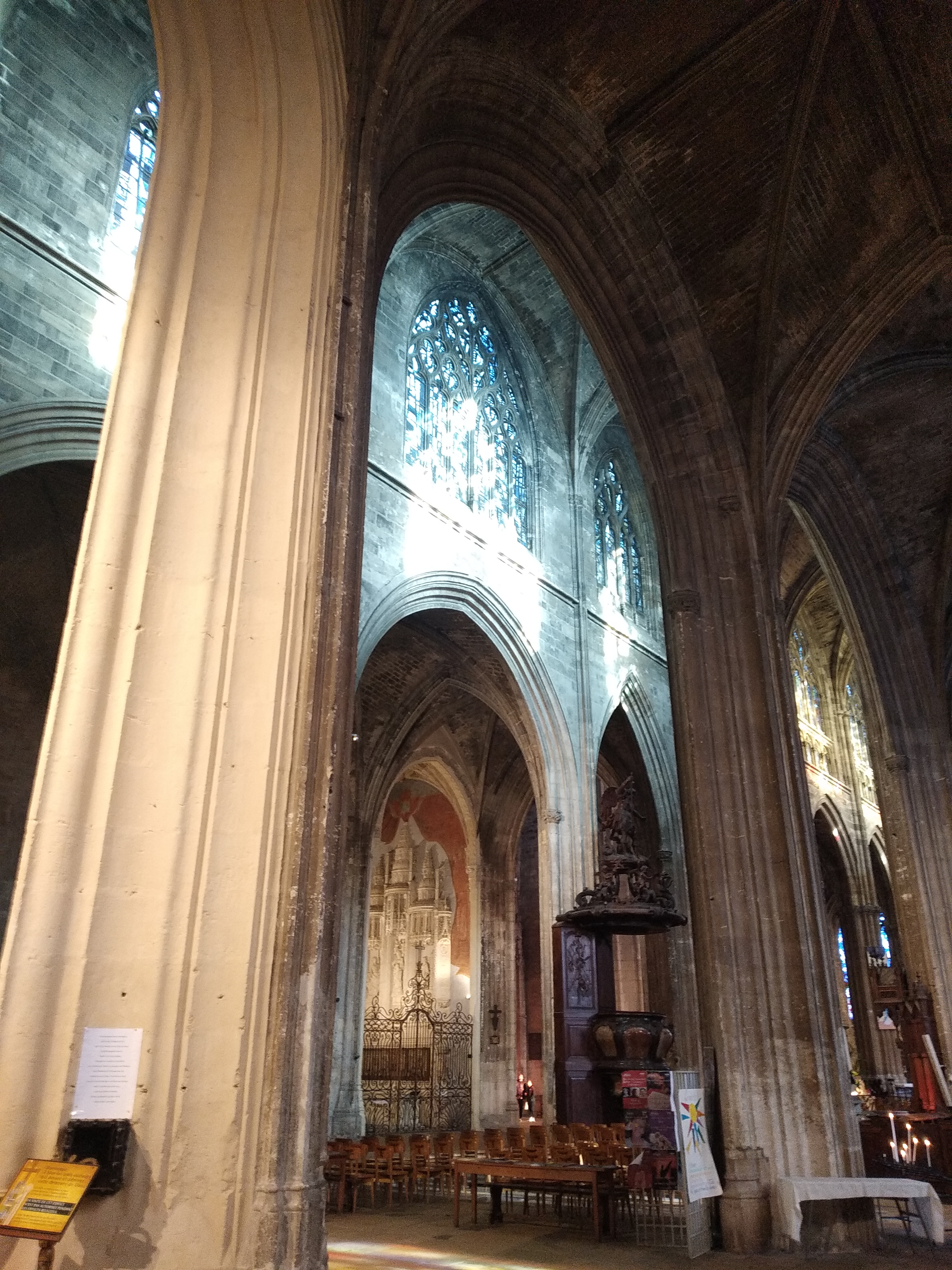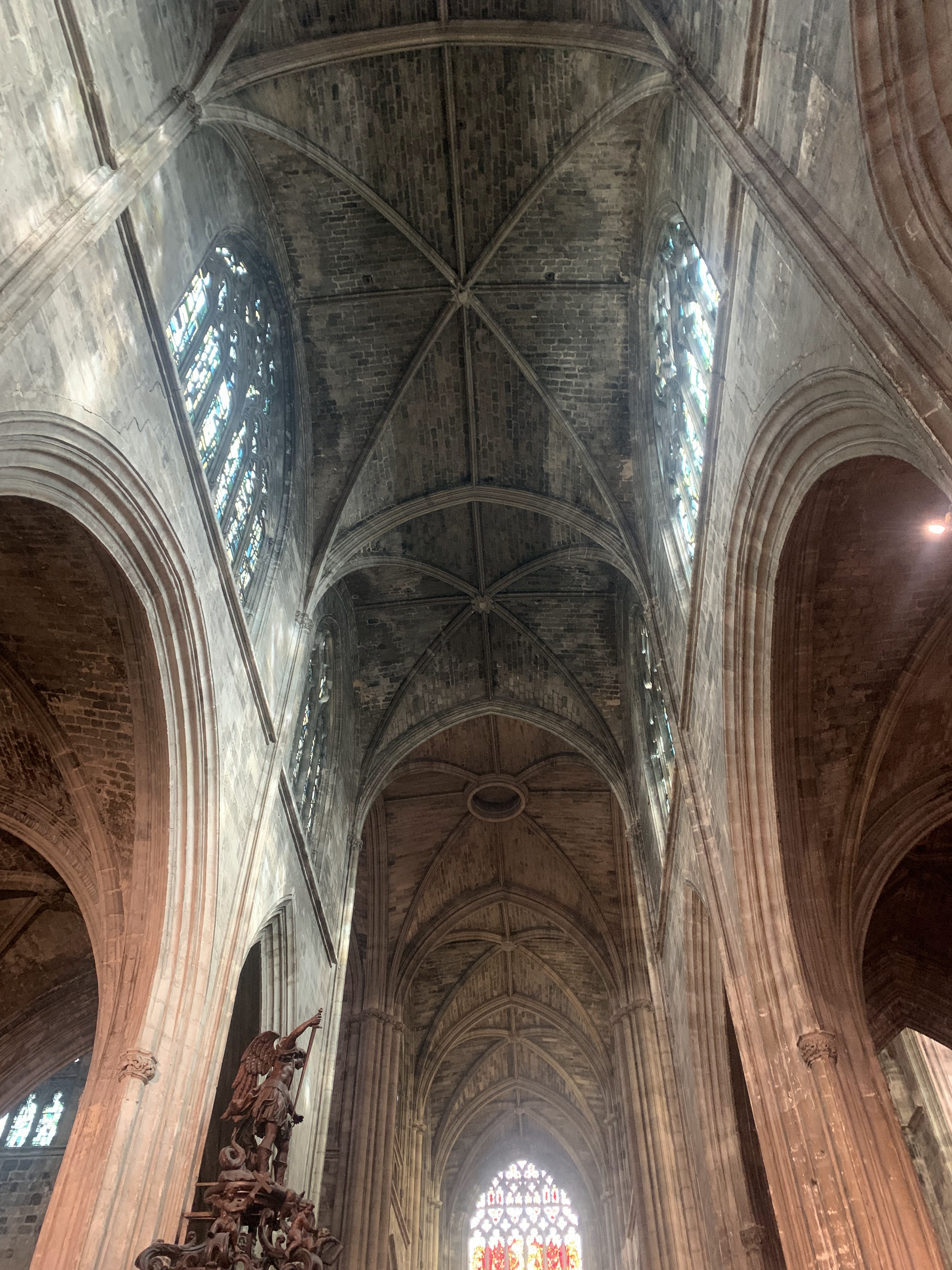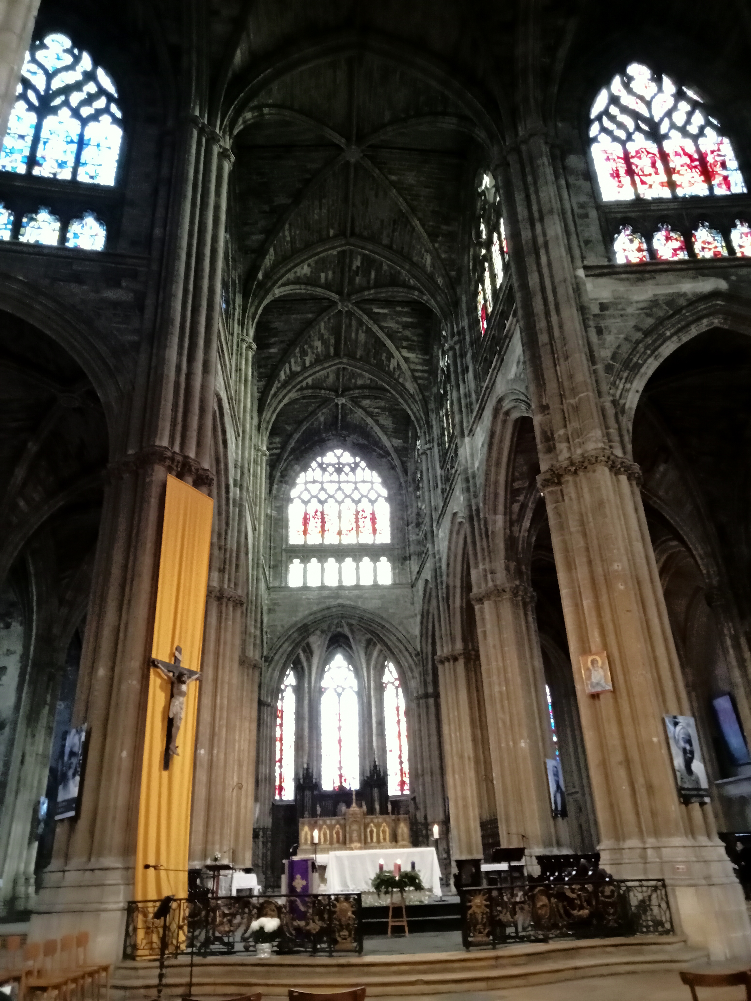 Belle cathédrale : jolis vitraux et hauteur de la voûte impressionnante