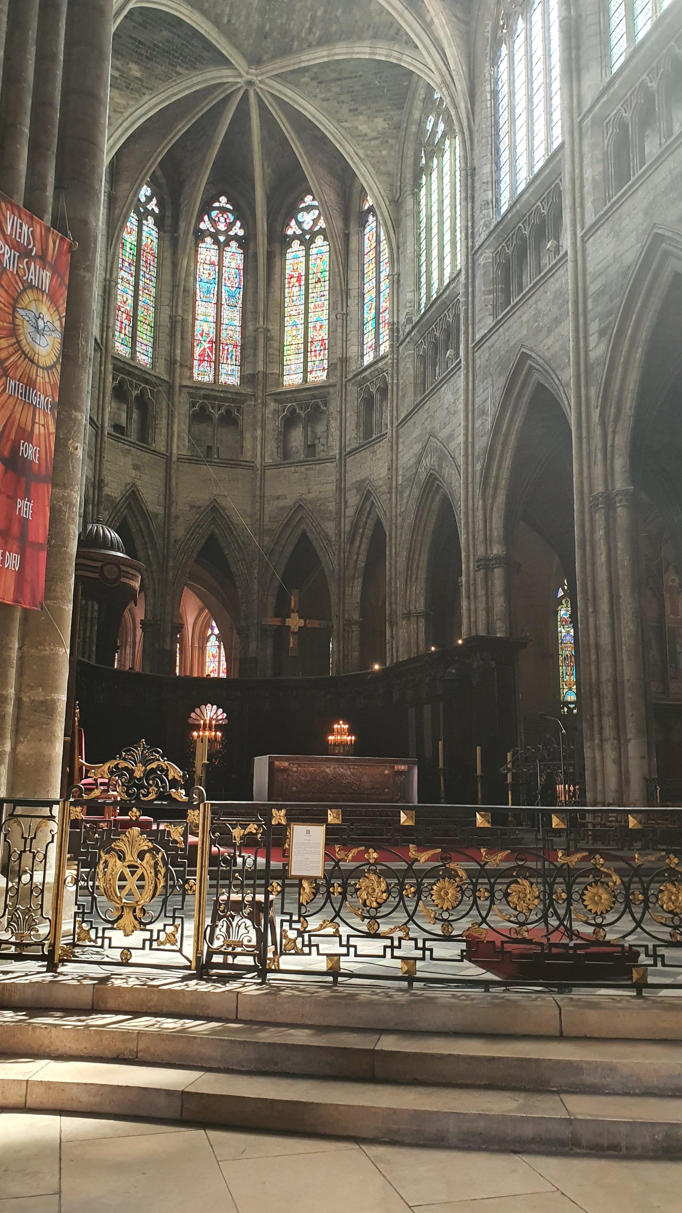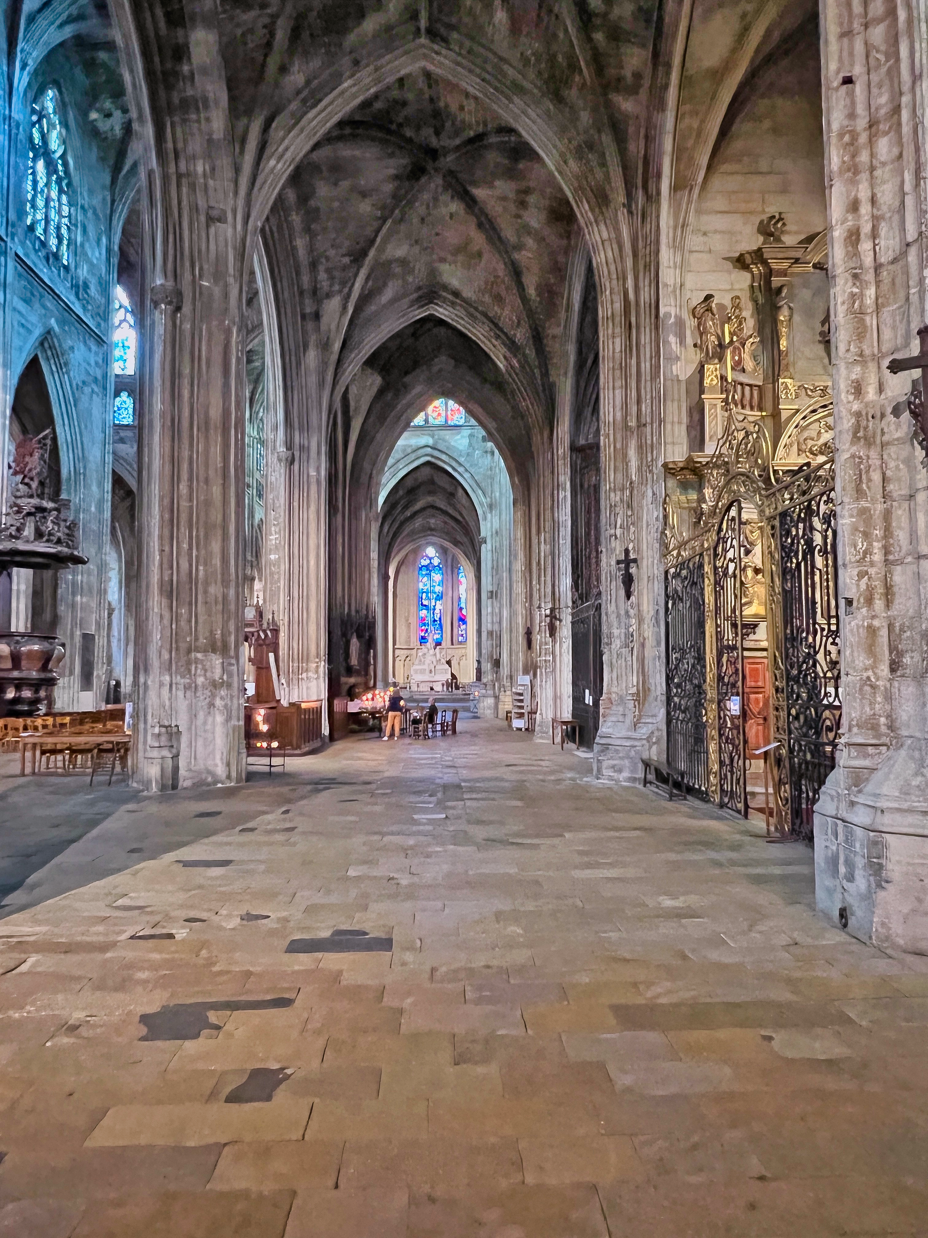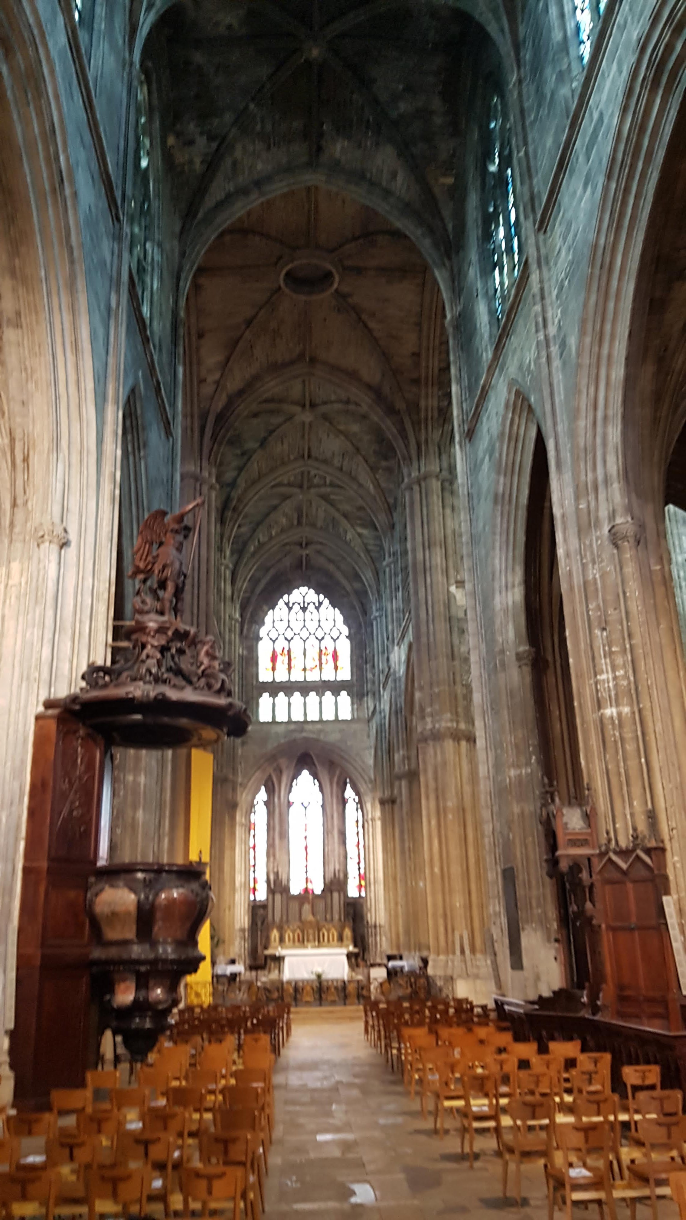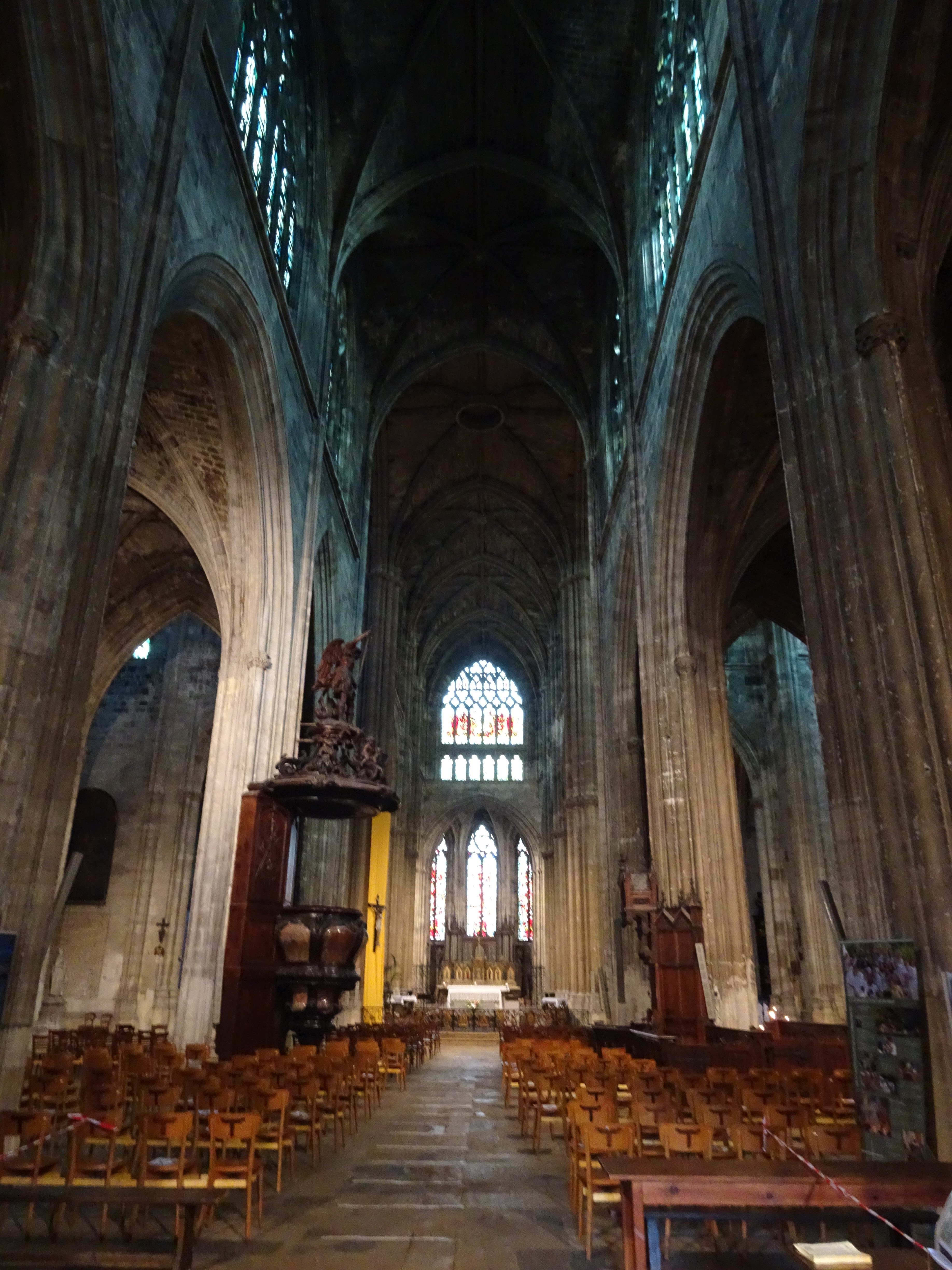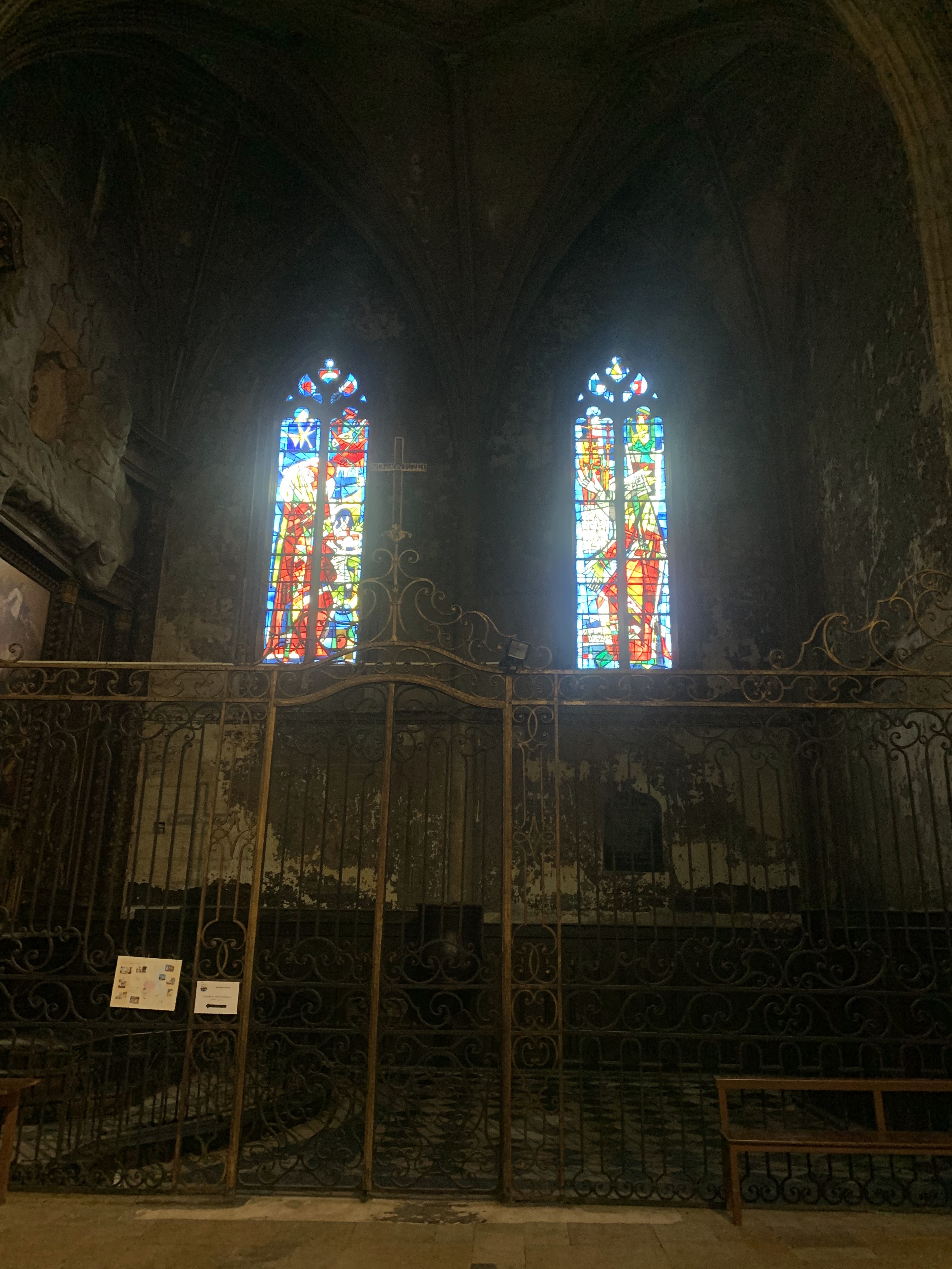 Belle cathédrale : jolis vitraux et hauteur de la voûte impressionnante