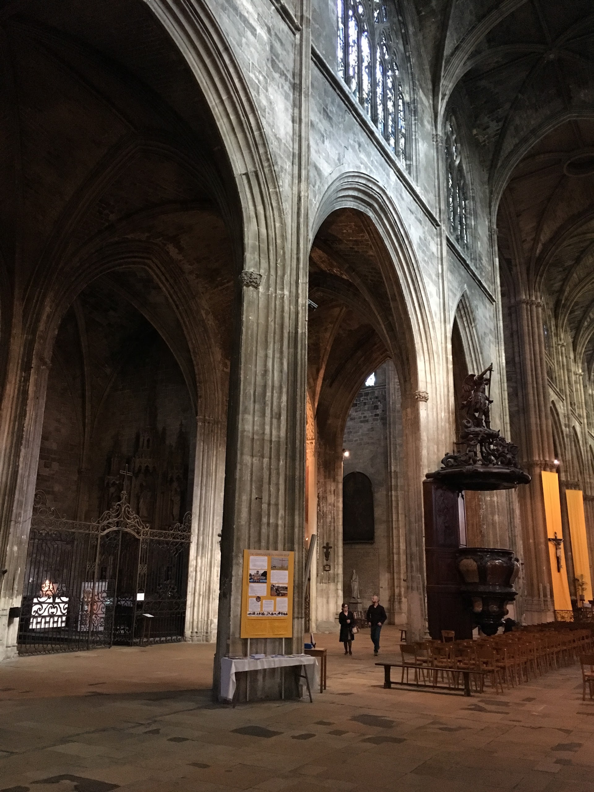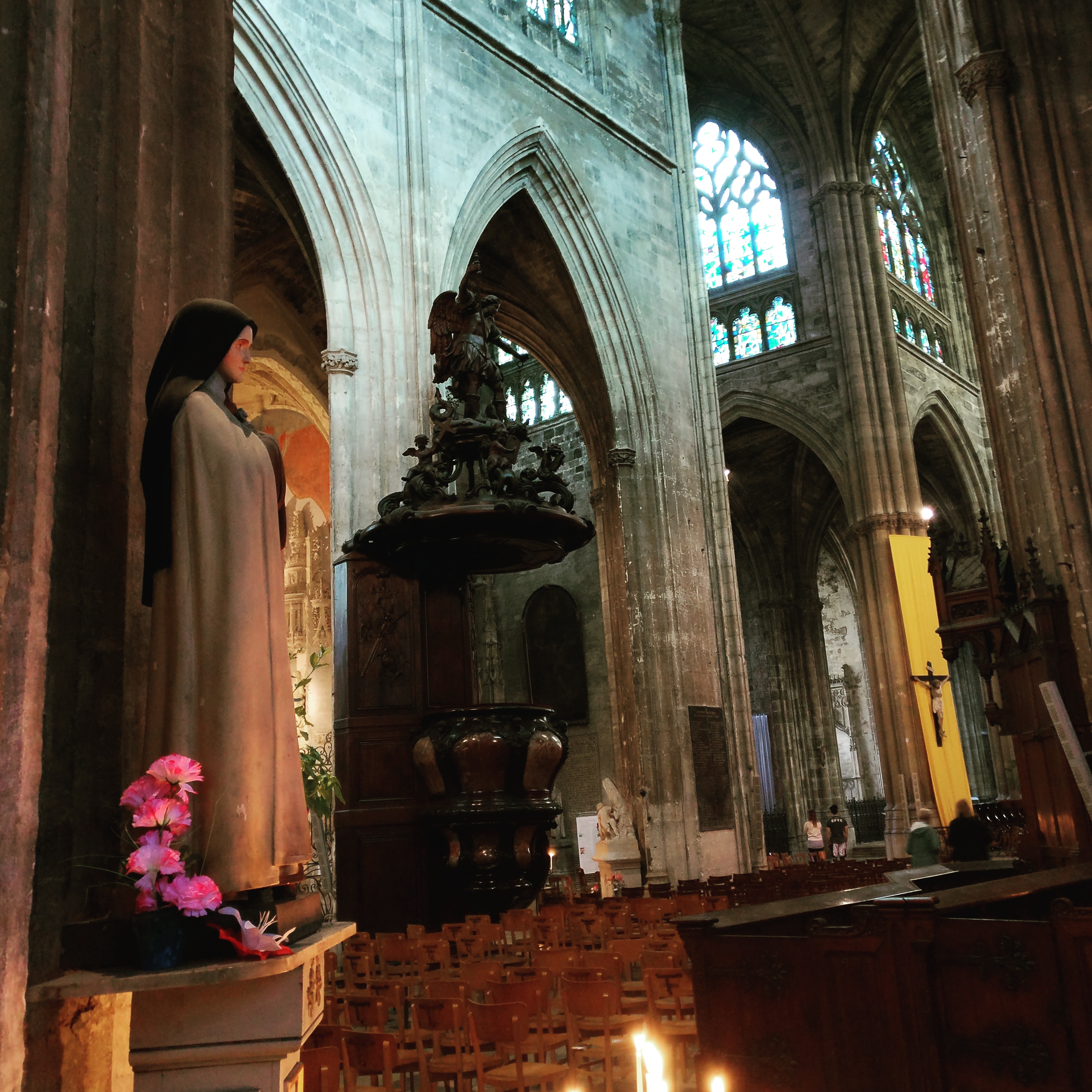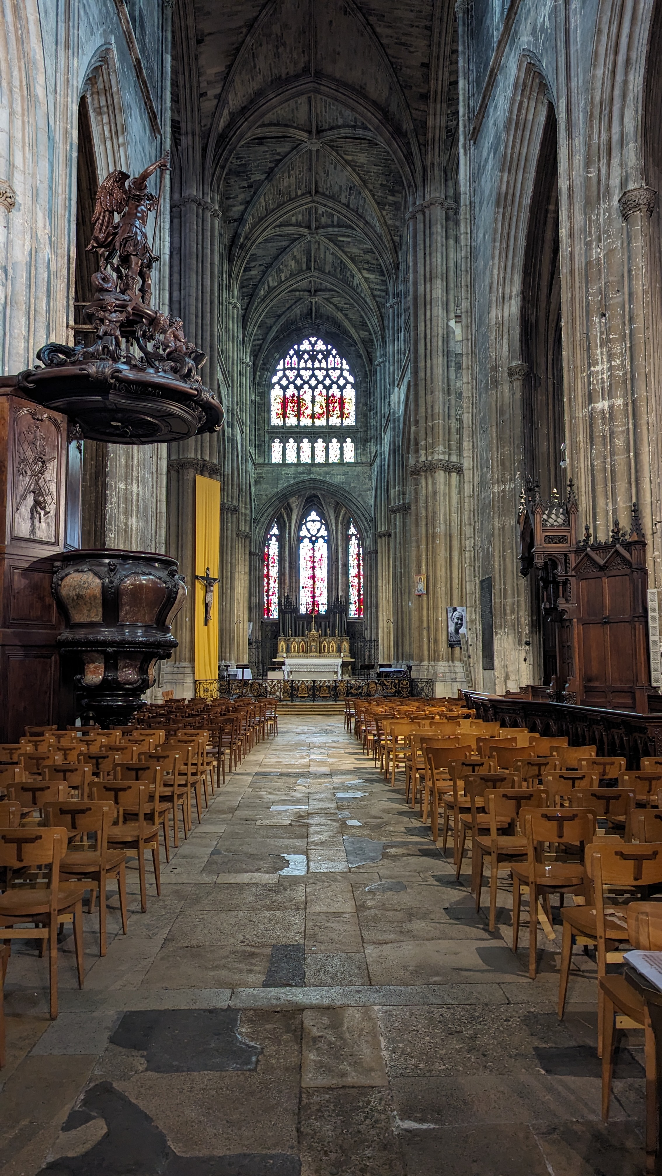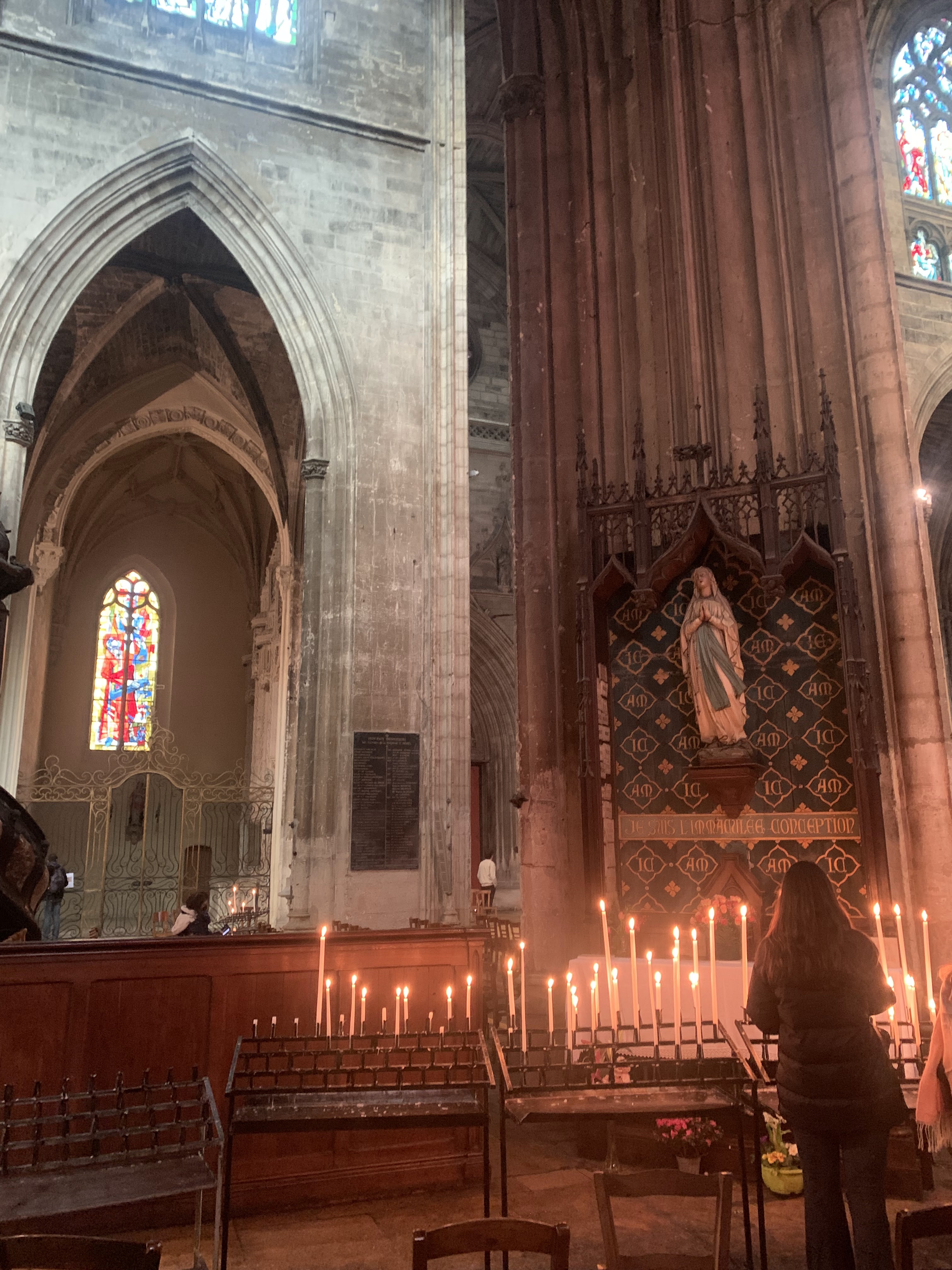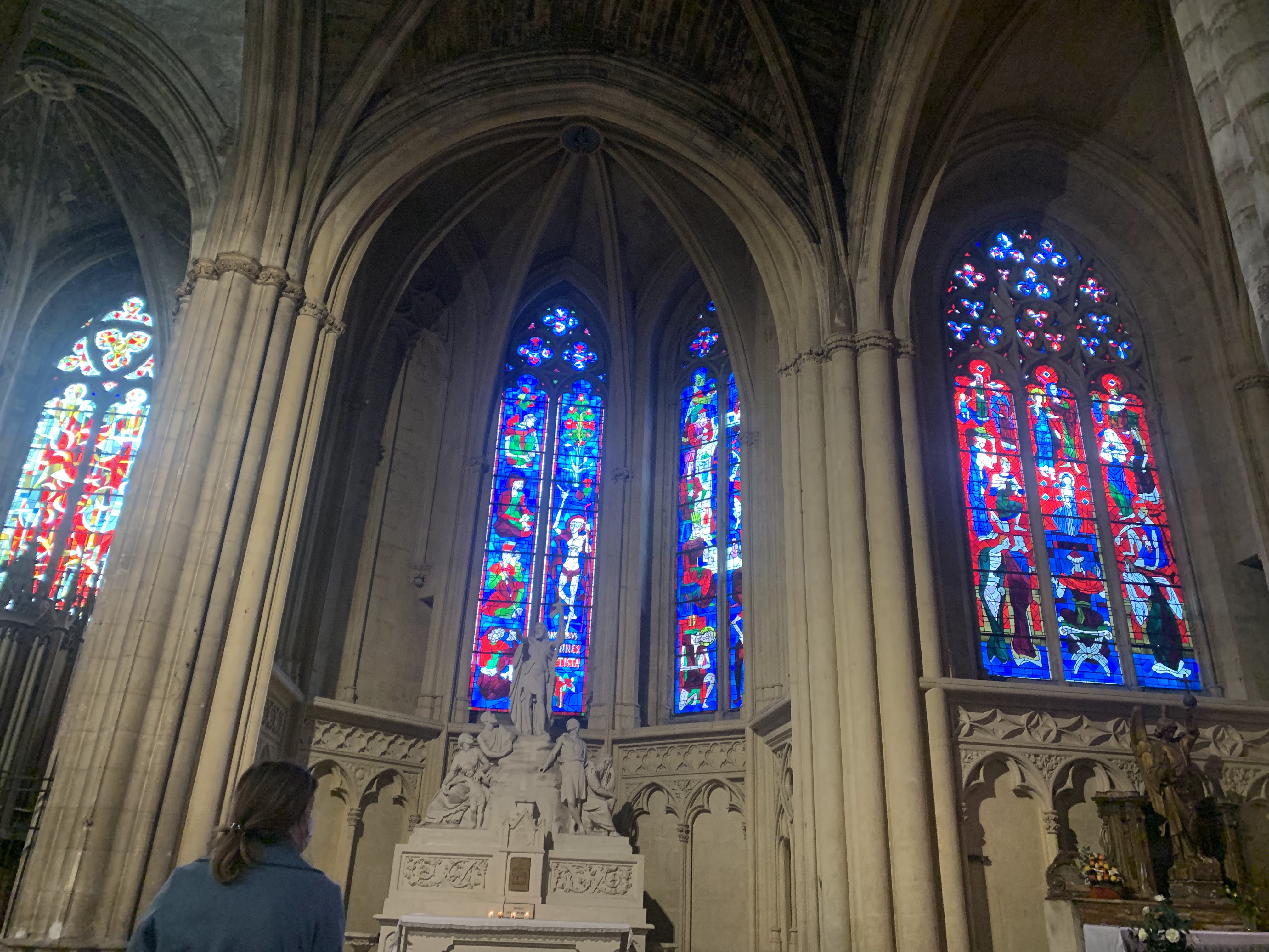 Belle cathédrale : jolis vitraux et hauteur de la voûte impressionnante