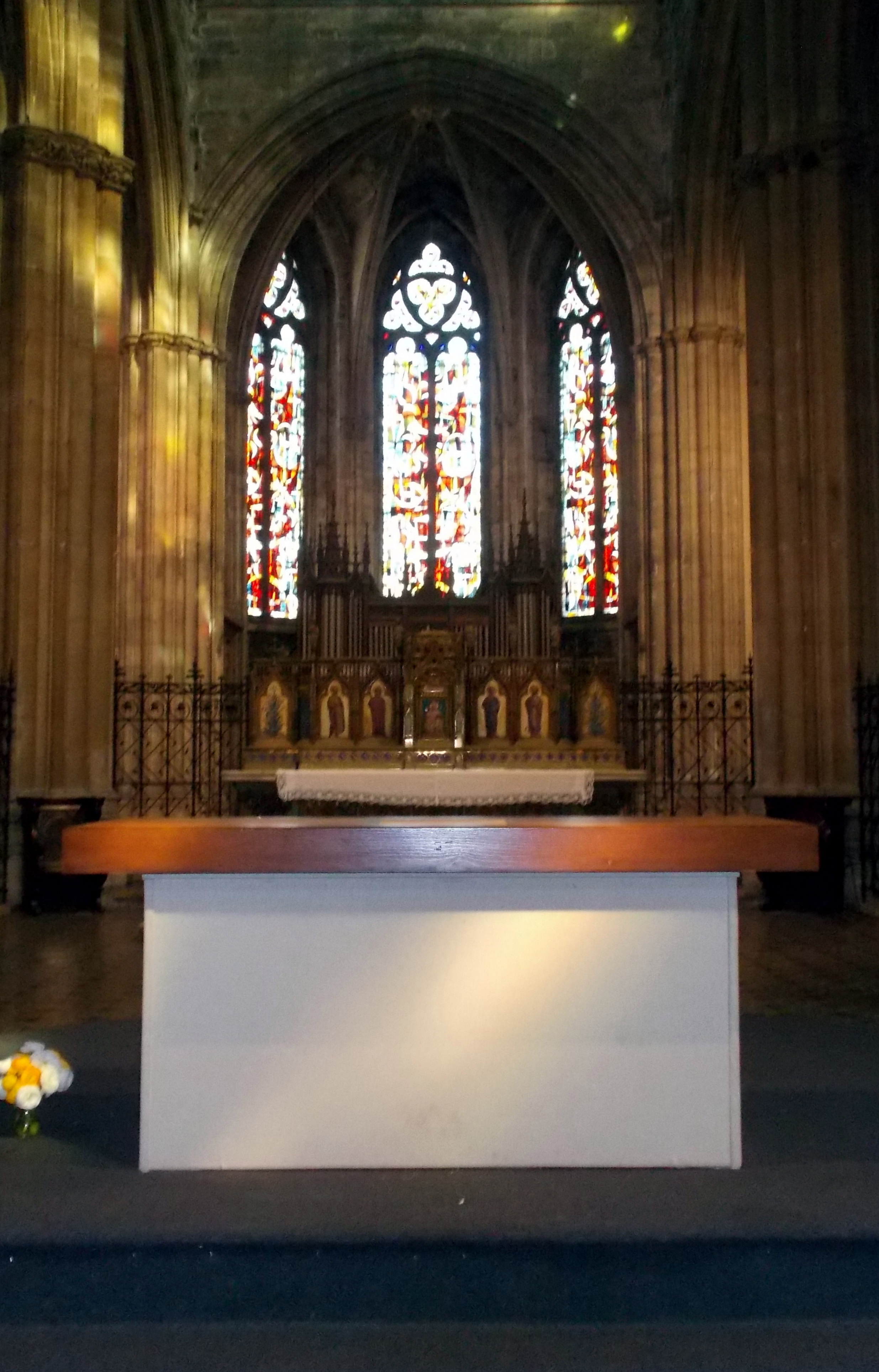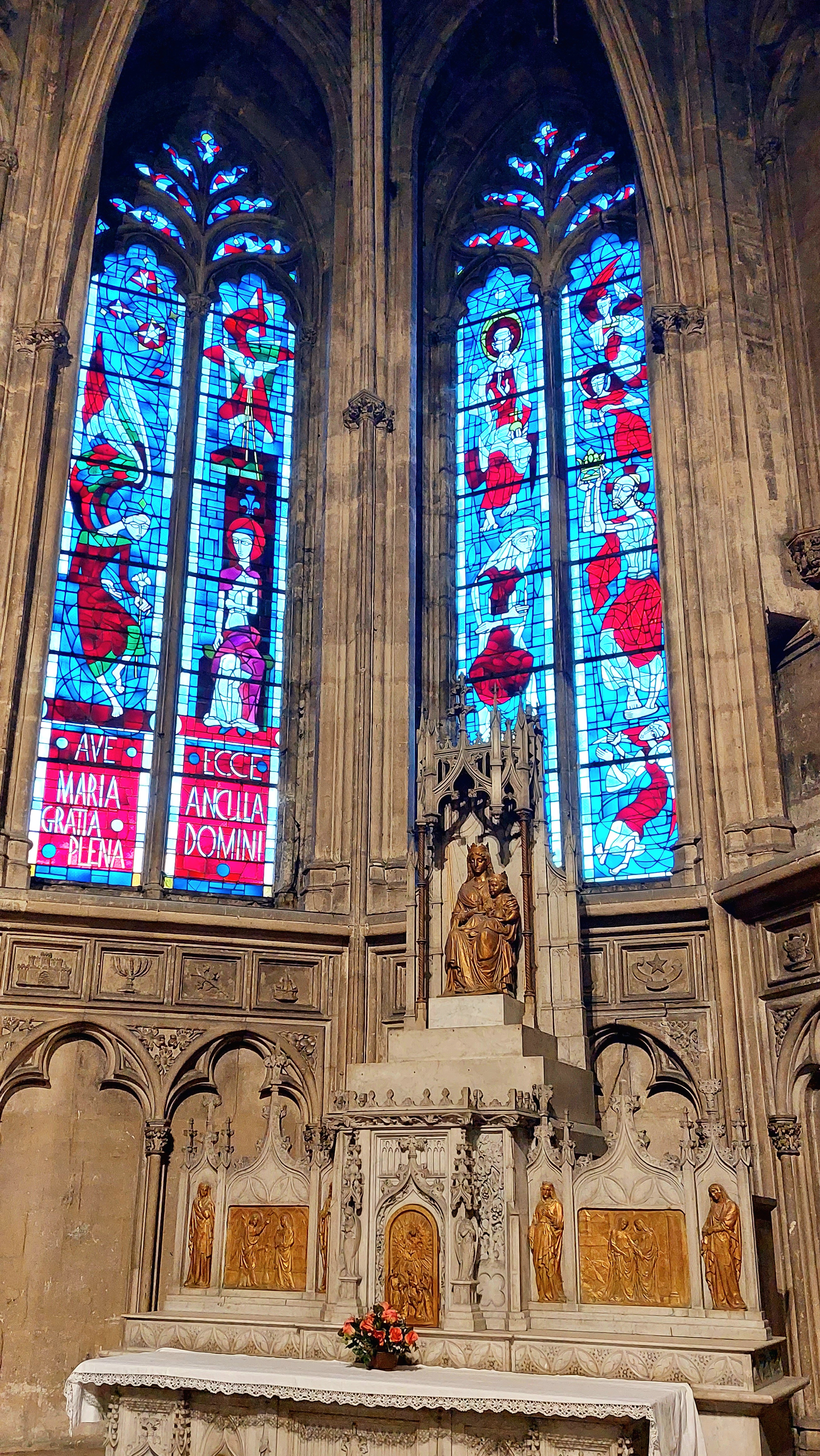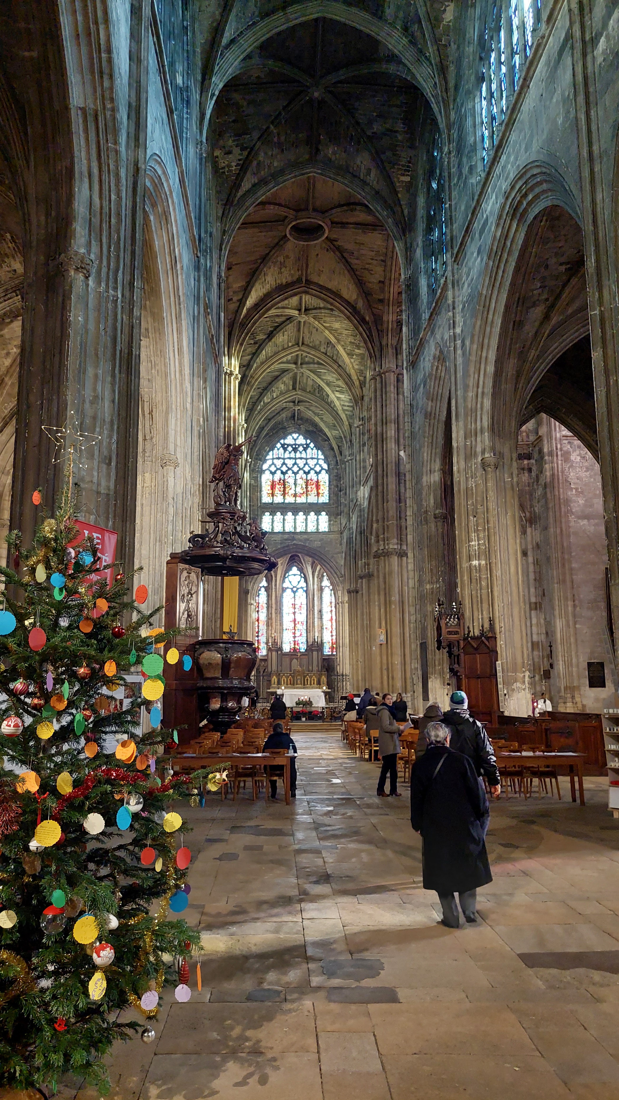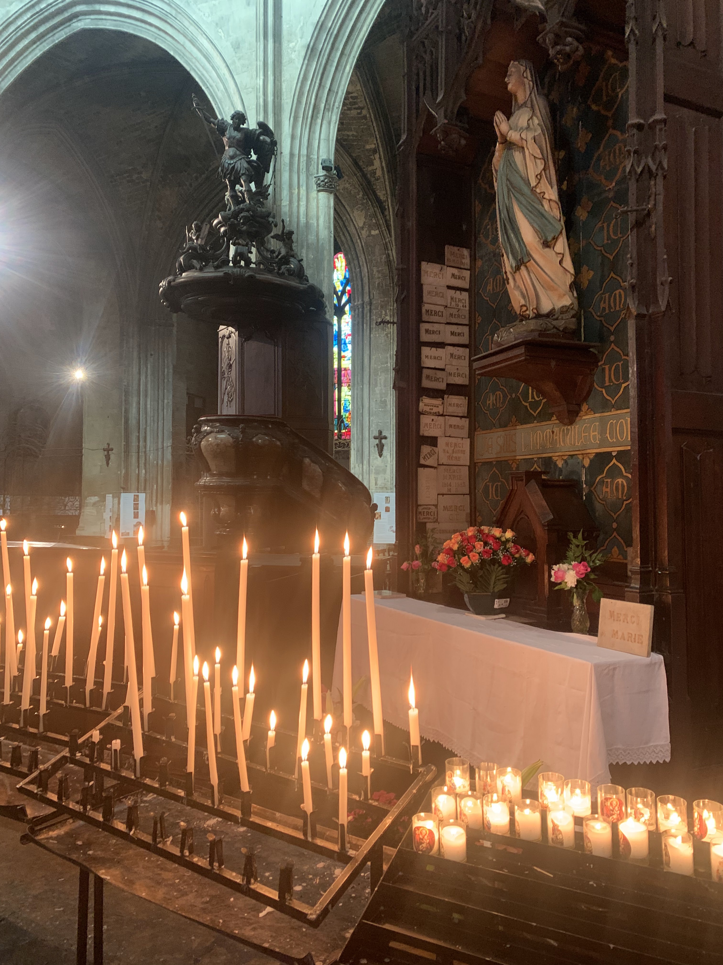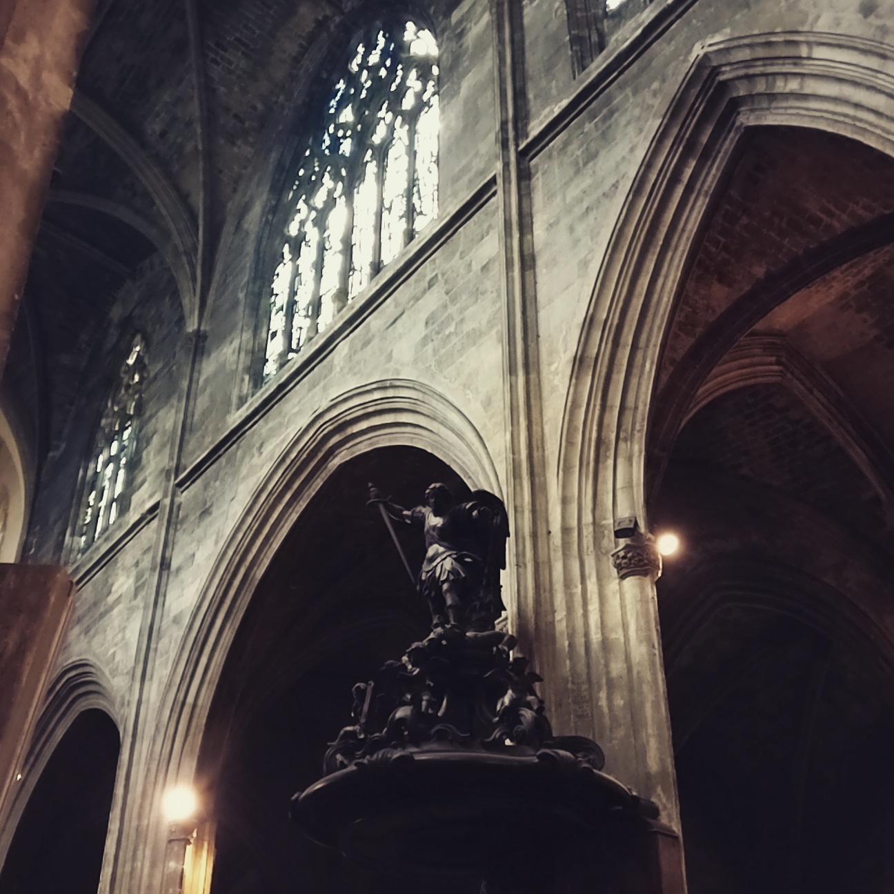 Belle cathédrale : jolis vitraux et hauteur de la voûte impressionnante