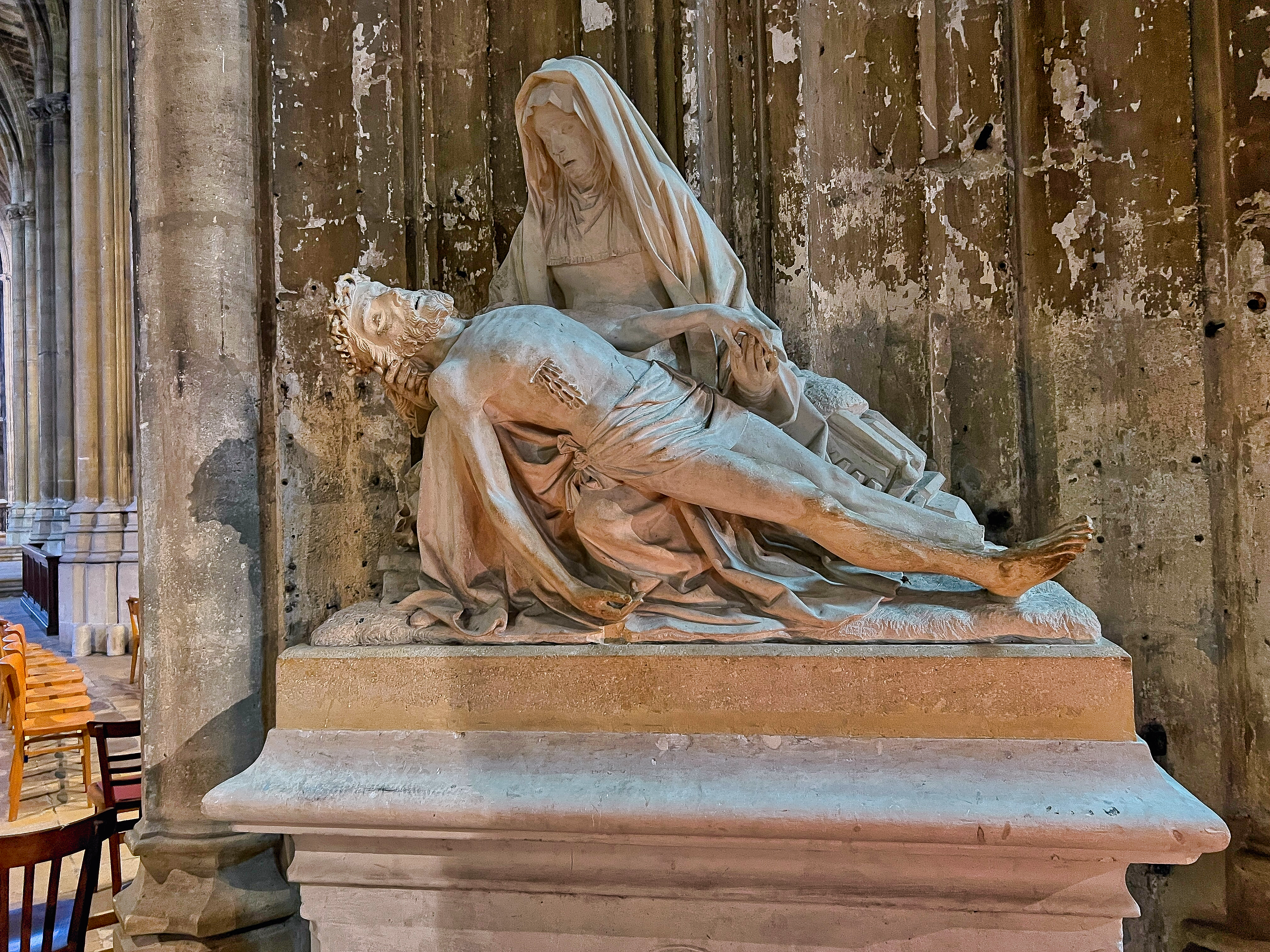 L'architecture d'une beauté époustouflante de la cathédrale et le haut clocher avec une flèche gothique infiniment longue visible de loin. La cathédrale est monumentale, avec de beaux vitraux, avec de vrais bougies, ce qui est déjà rare😊 Une cathédrale gothique et sombre, sans reconstruction ni réparation, ce qui lui confère un charme particulier. Mais le quartier est tout simplement horrible, n'y allez pas le soir, tout autour est très marginal, sale et inconfortable.