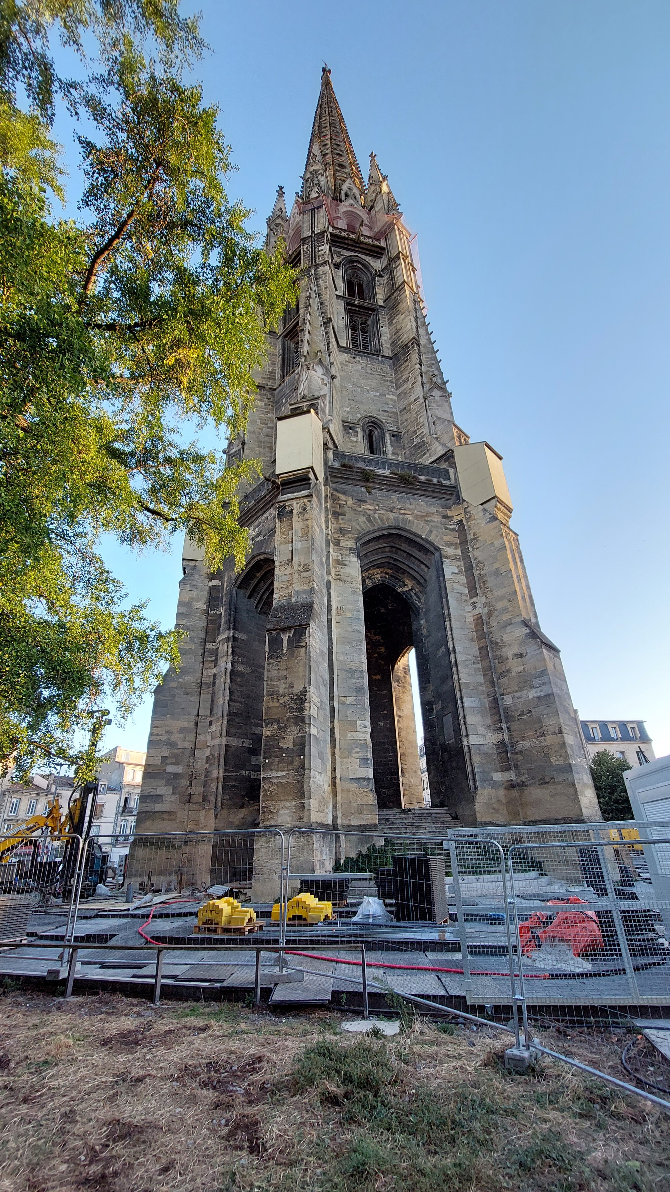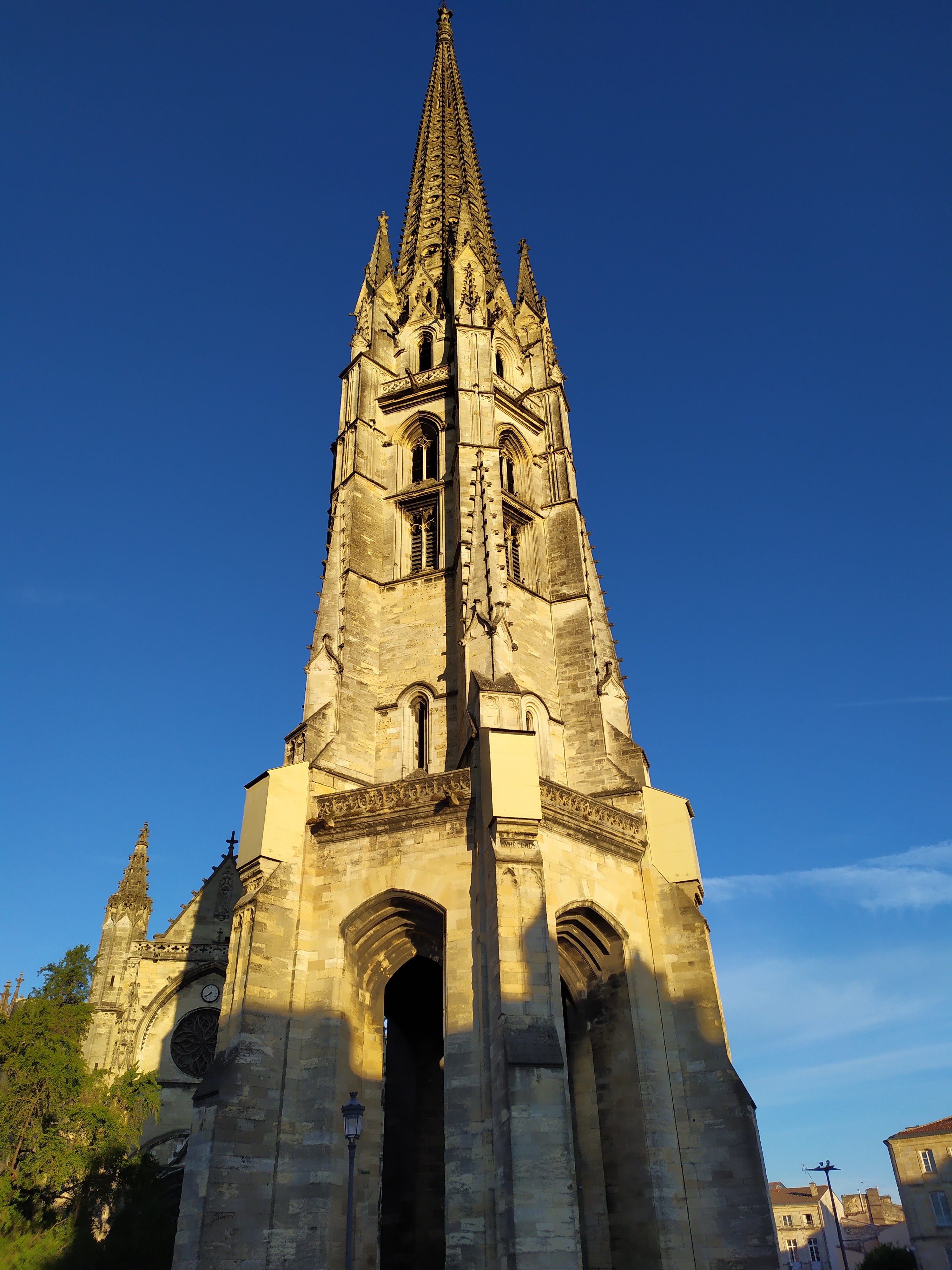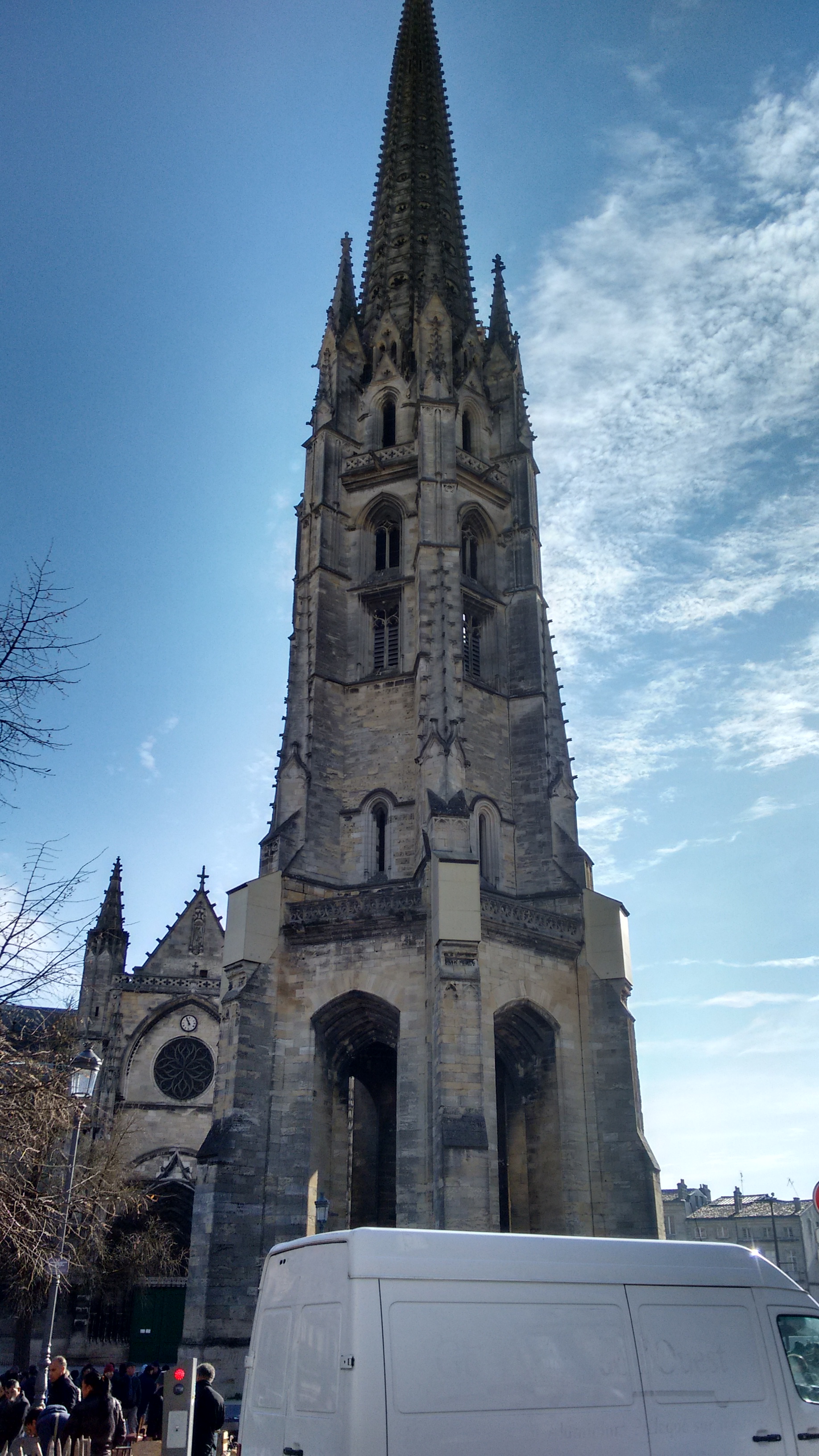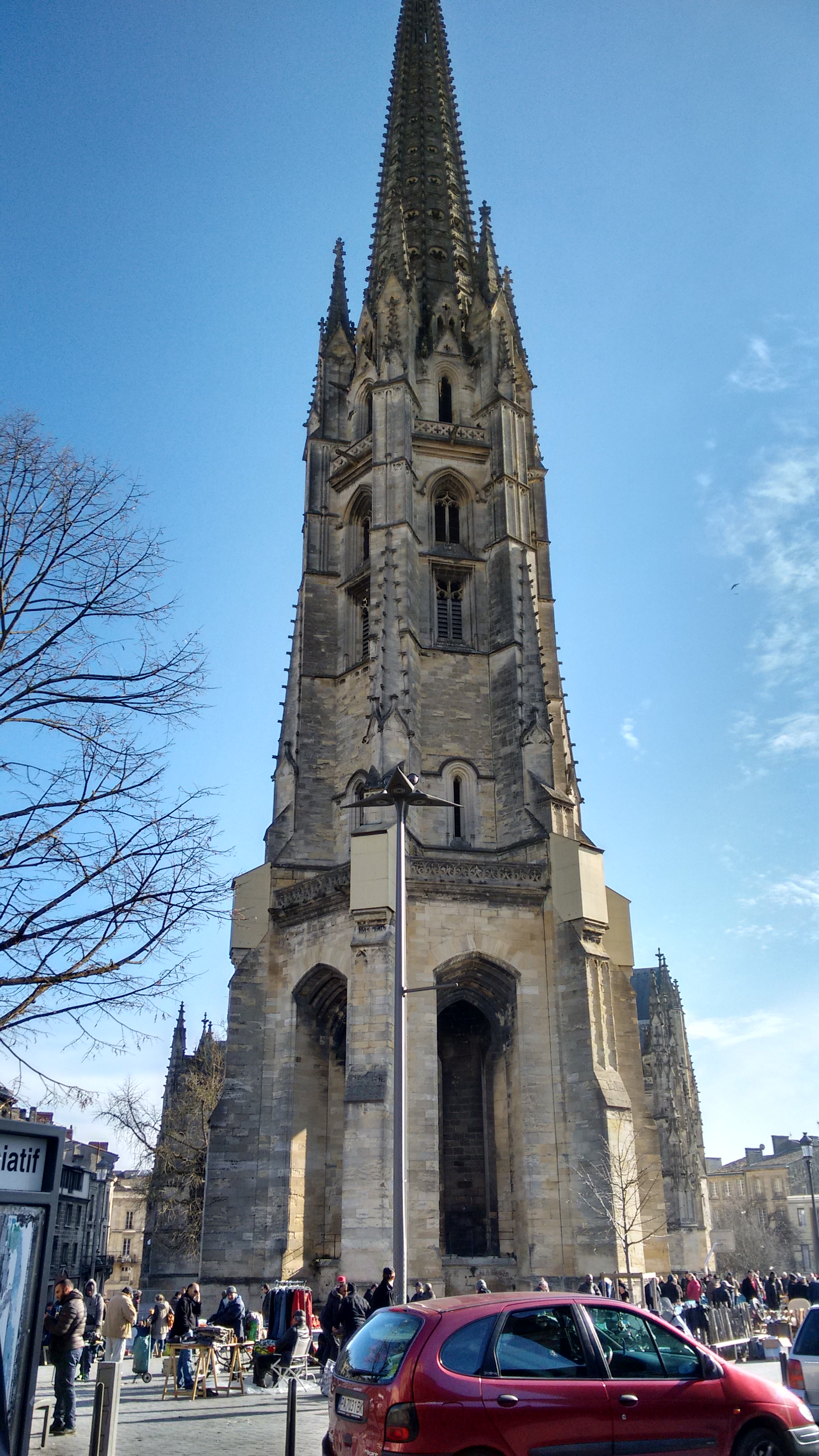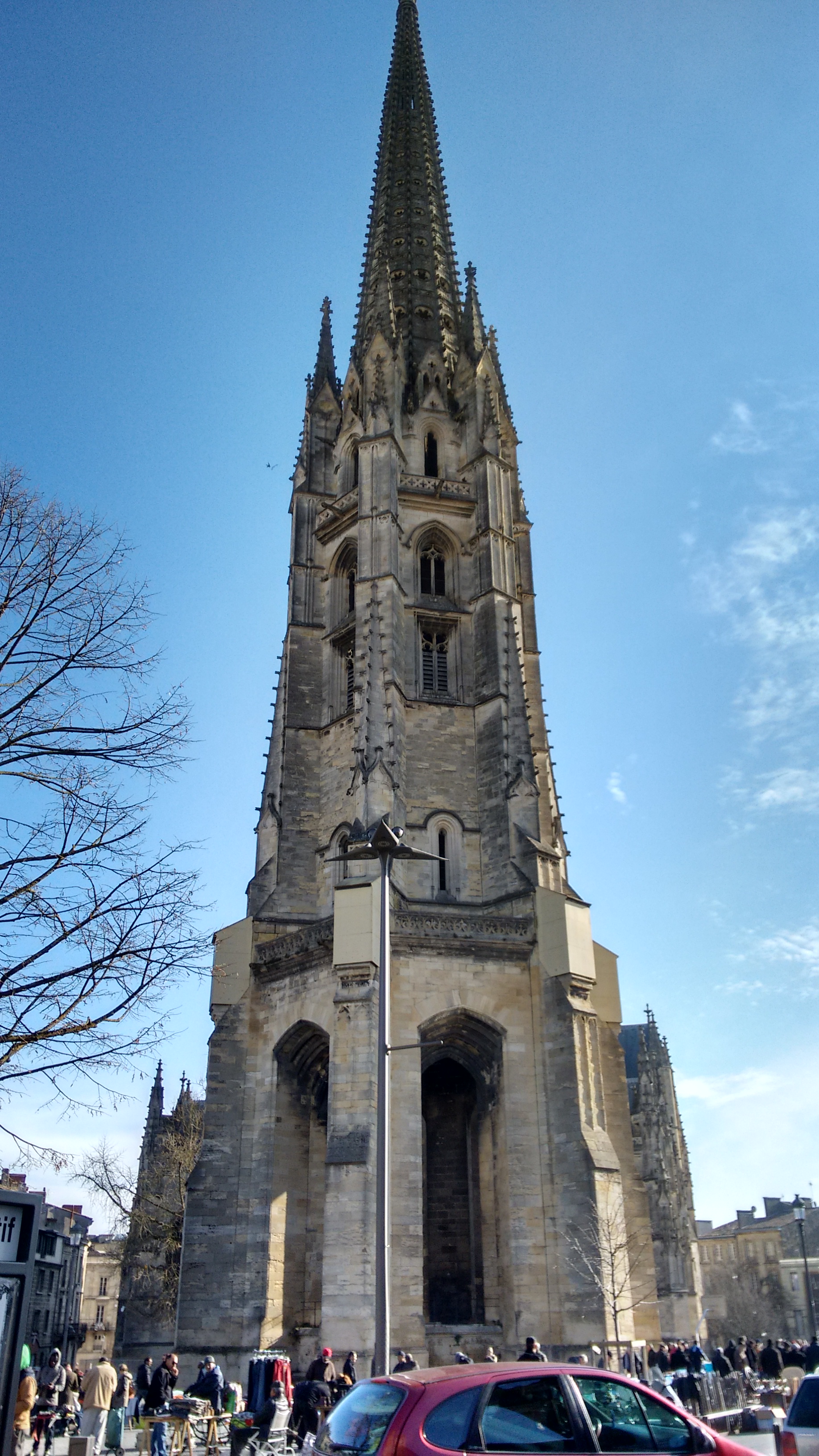 Un des deux clochers de Bordeaux, avec celui de la cathédrale Saint-André, qui ne sont pas solidaires de l'édifice religieux auquel il appartient. Au pied de cette basilique se tient un marché, à thèmes divers, tous les jours sauf le mercredi.