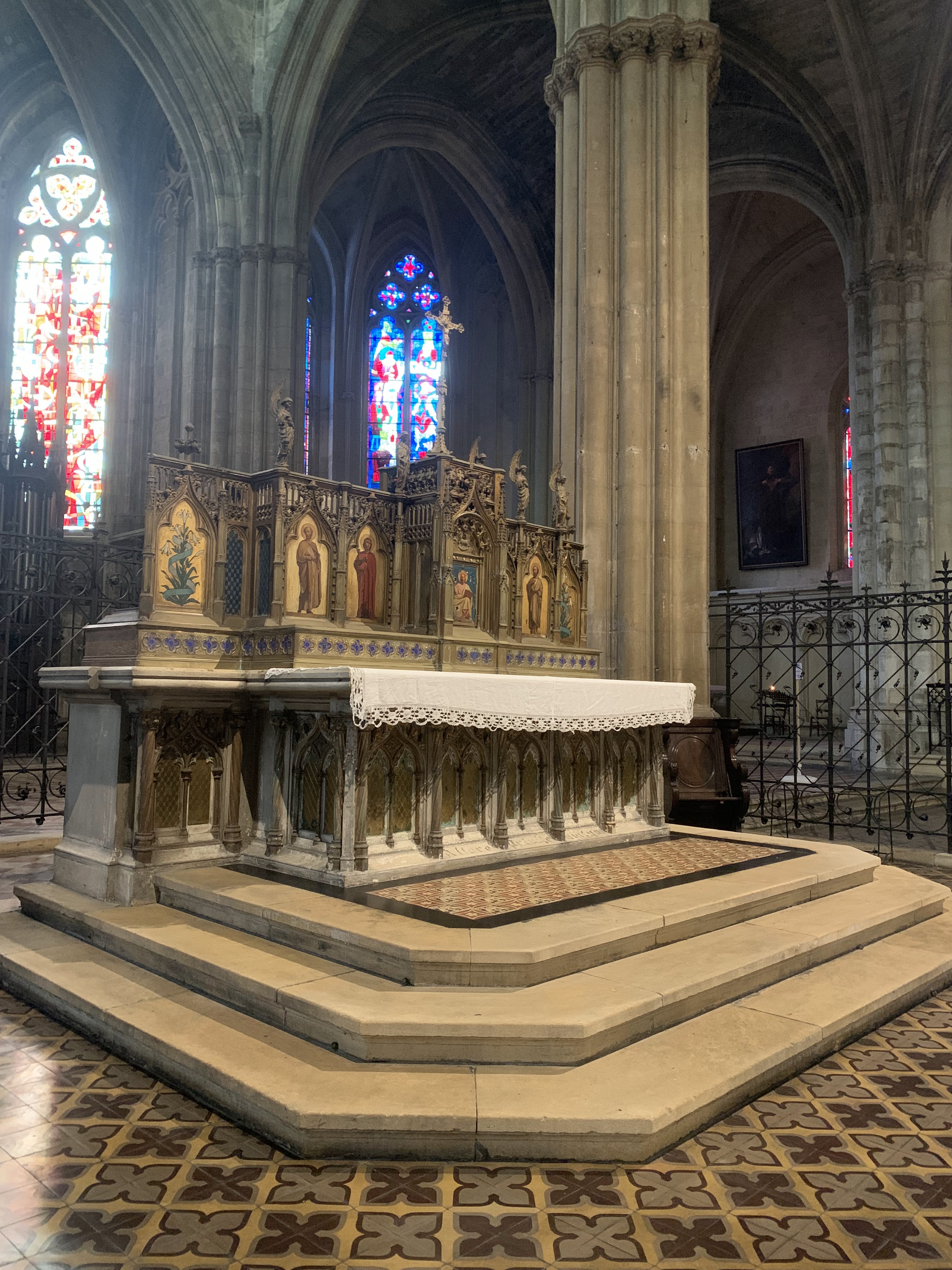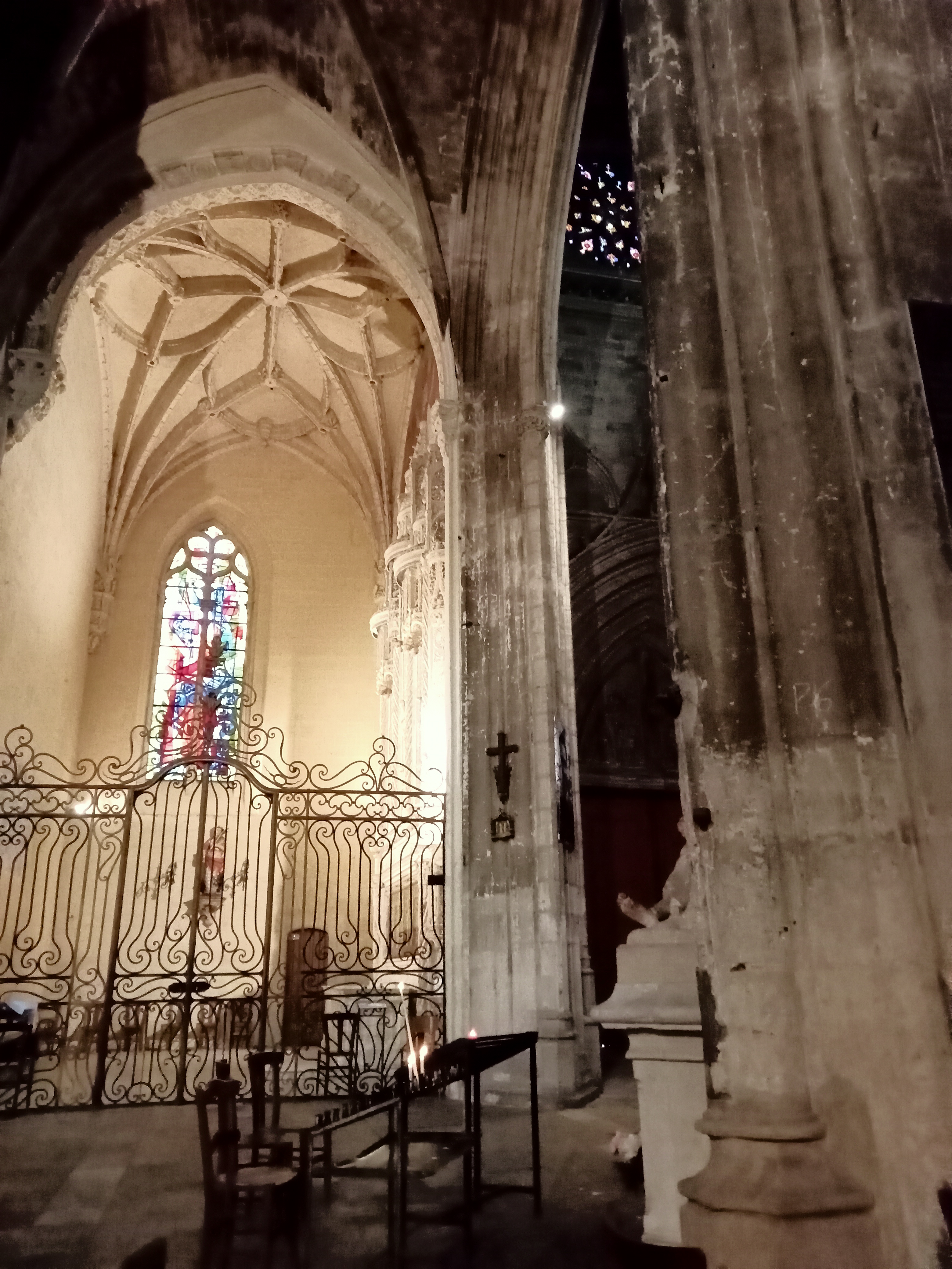 Visite de la cathédrale comme tous les monuments religieux de Bordeaux . Elle relève le niveau de certains édifices que j'ai trouvé décevant a première vue . Grande , éclairée avec de beaux vitraux , elle manque une peu d'ornement mais mérite d'être visitée . Le défaut principal reste le manque de produits dérivés : c'est bête a dire mais cela permet aux gens qui ne sont pas de Bordeaux de repartir avec un petit quelque chose et a la cathédrale de financer une partie de la rénovation.