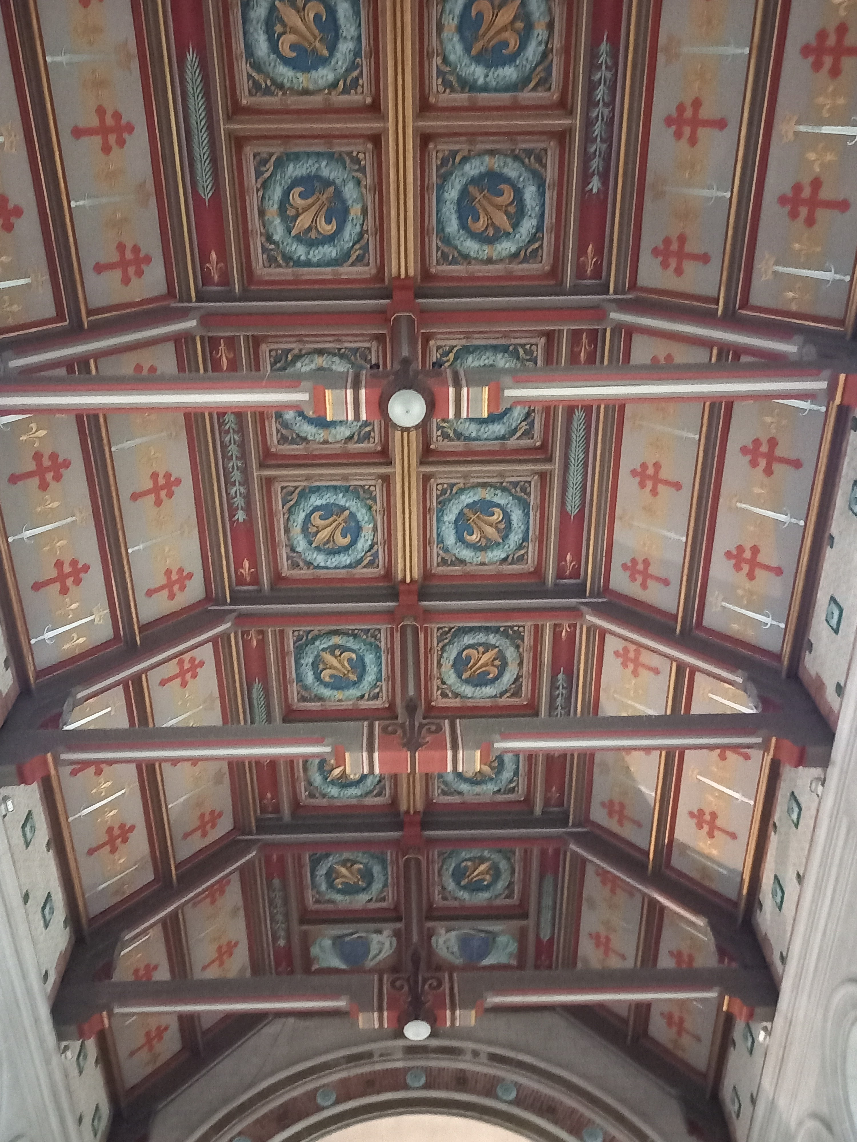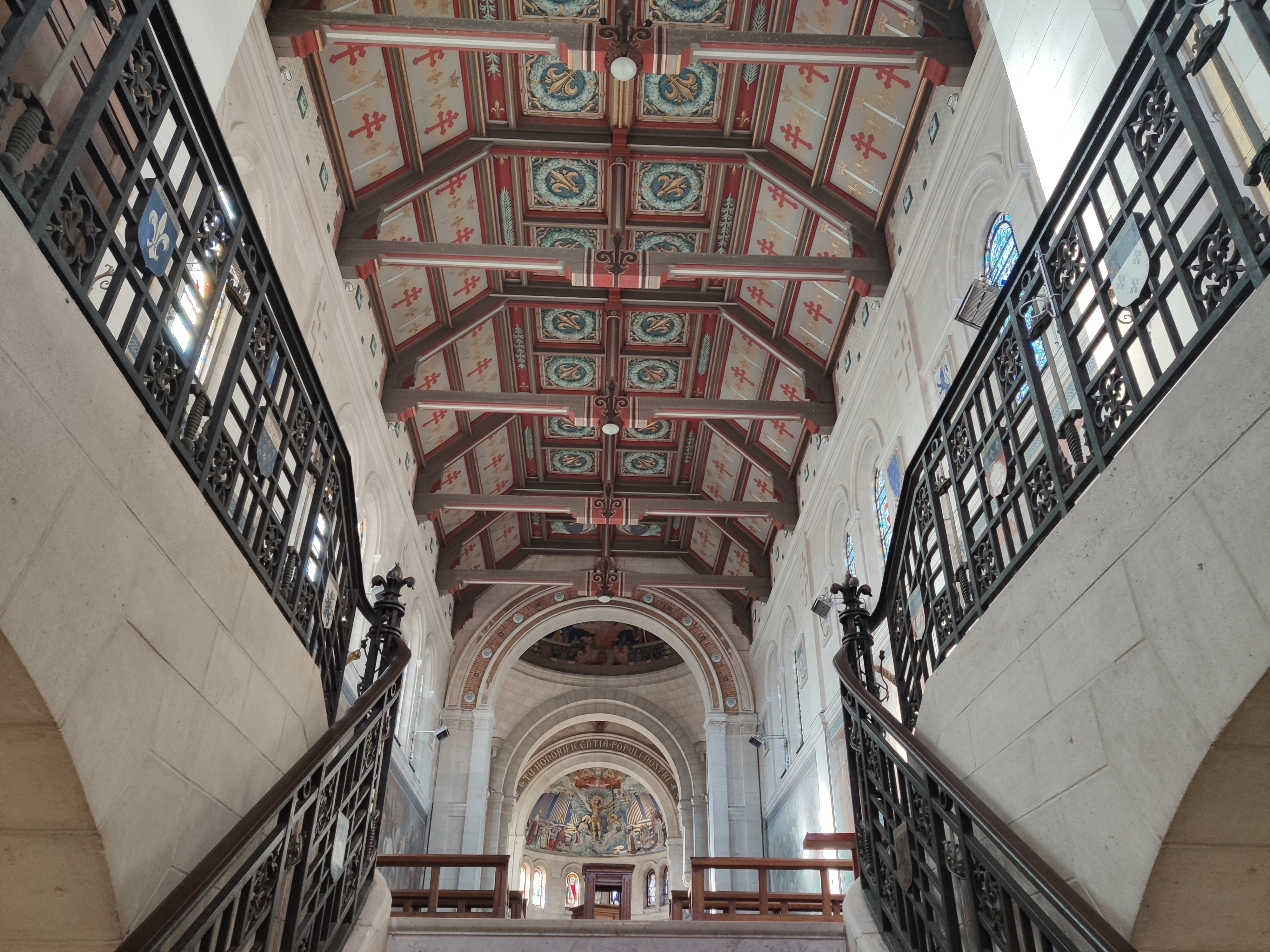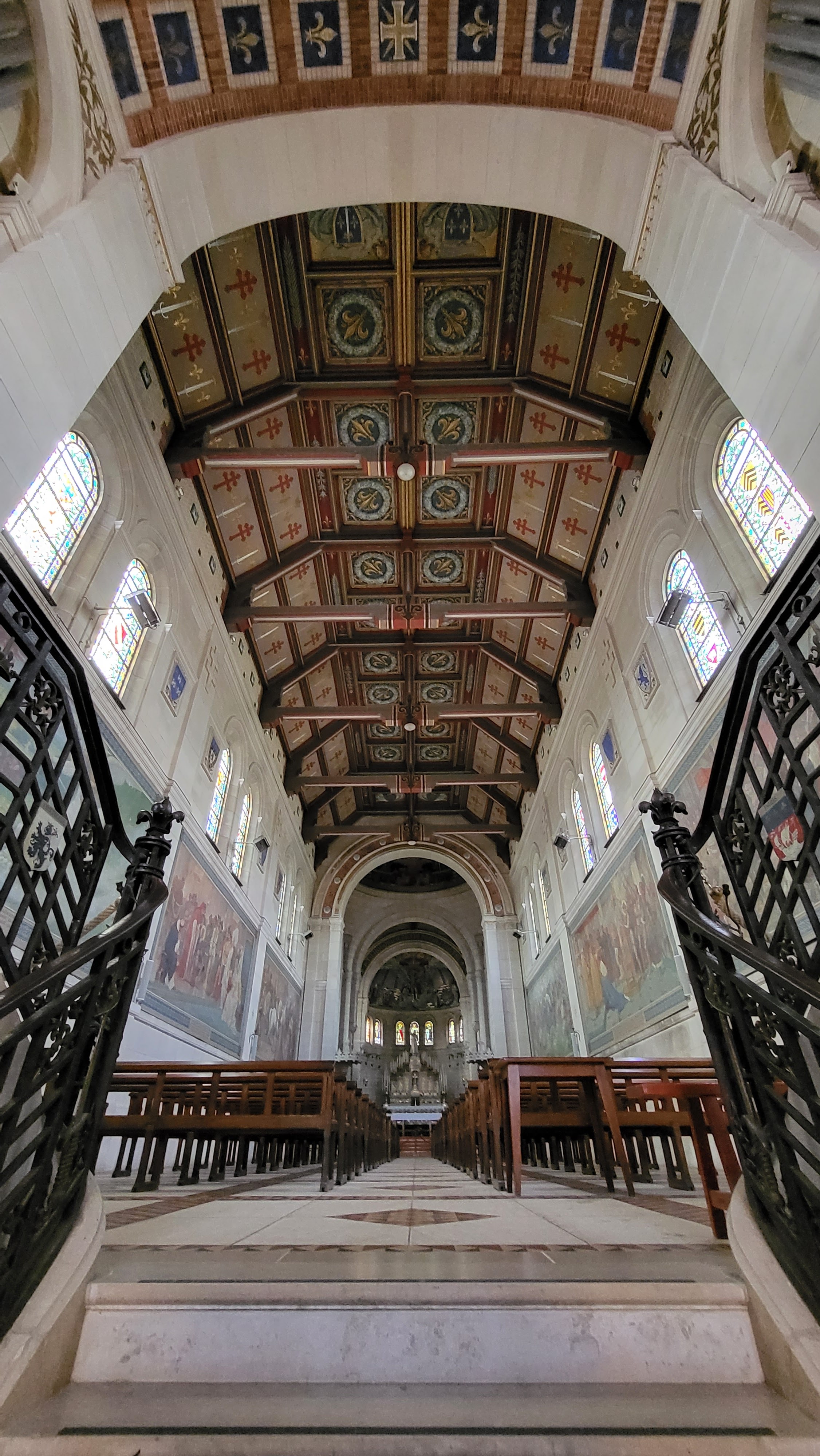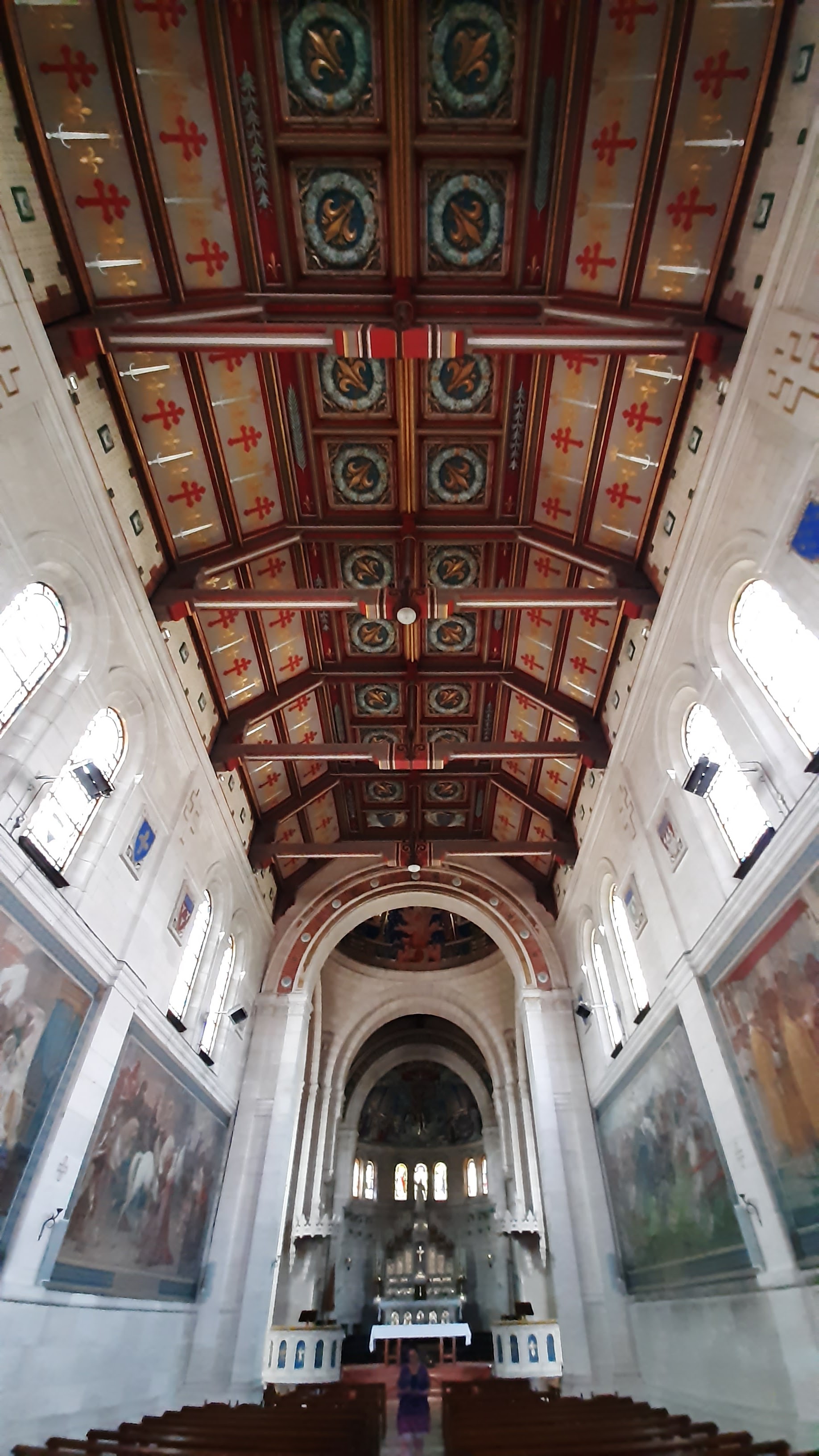Magnifique basilique bien décoré par de jolies peintures. Elle est assez grande de belles poutres impressionnantes. Je recommande ce lieu chargé d histoire..