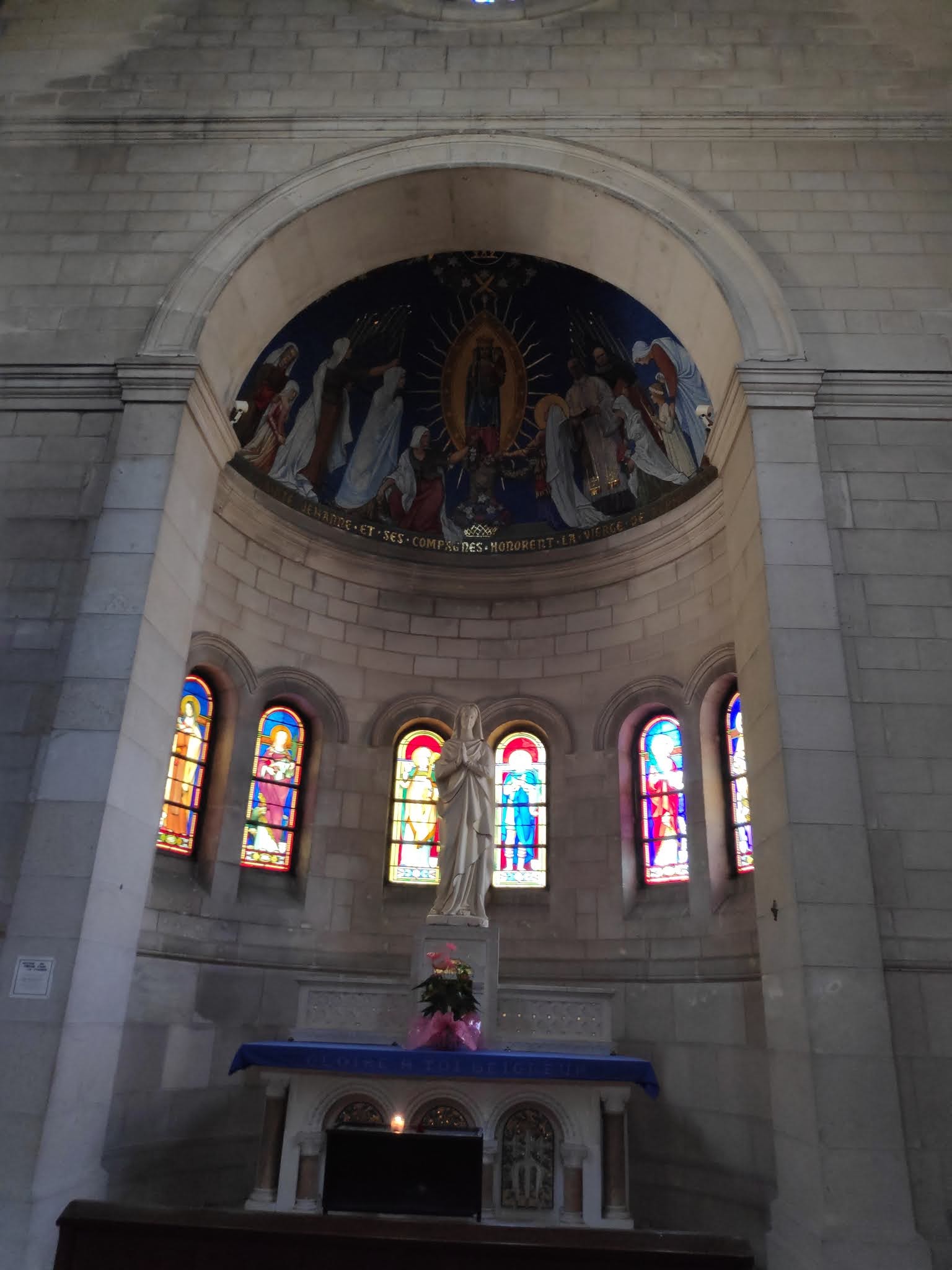 Tant de beauté exterieur et interieure avec une lumière qui vous enveloppe . Les vitraux sont magnifiques. Ce jour là endroit calme et agréable pour se recueillir en toute sérénité.