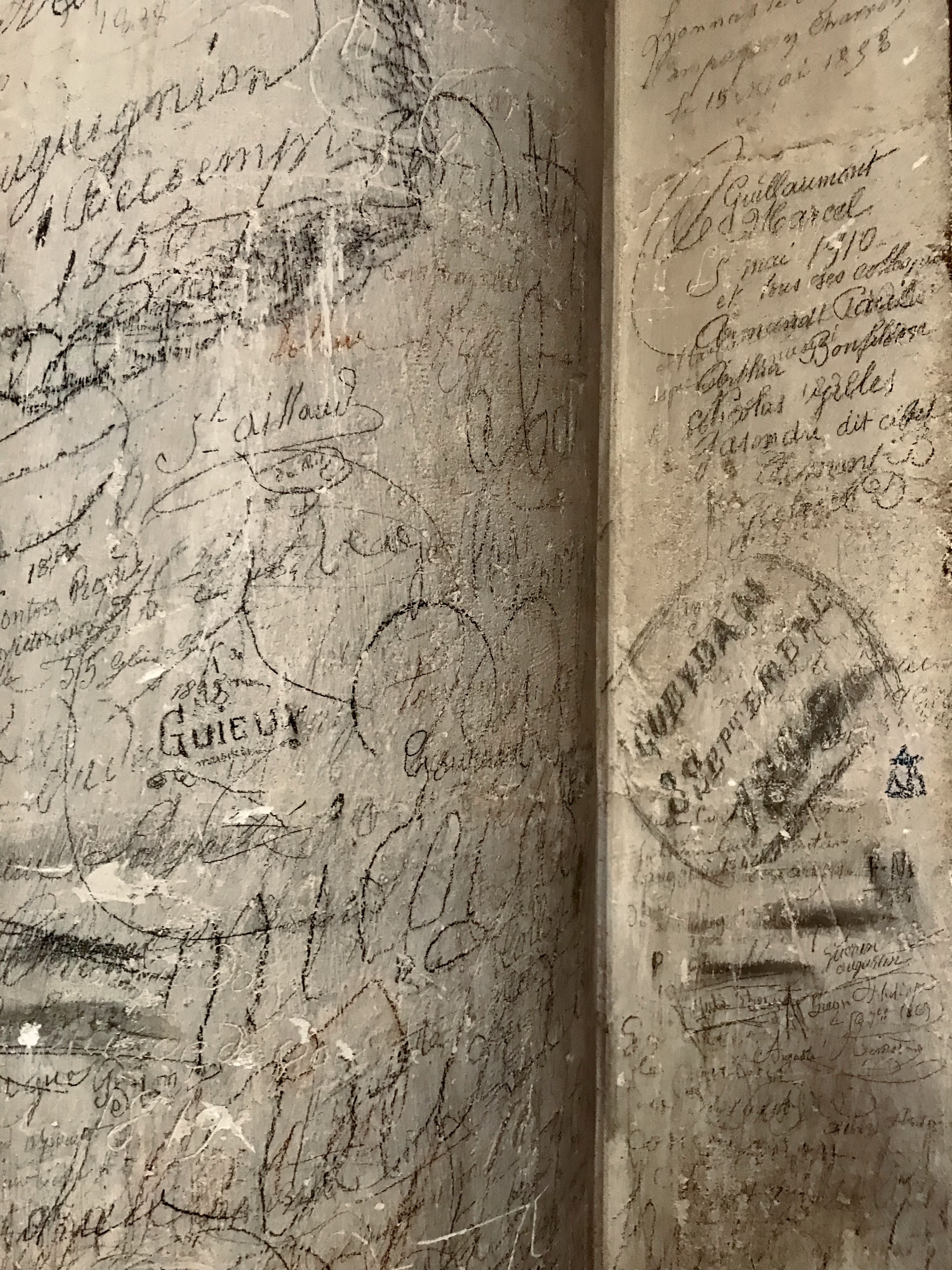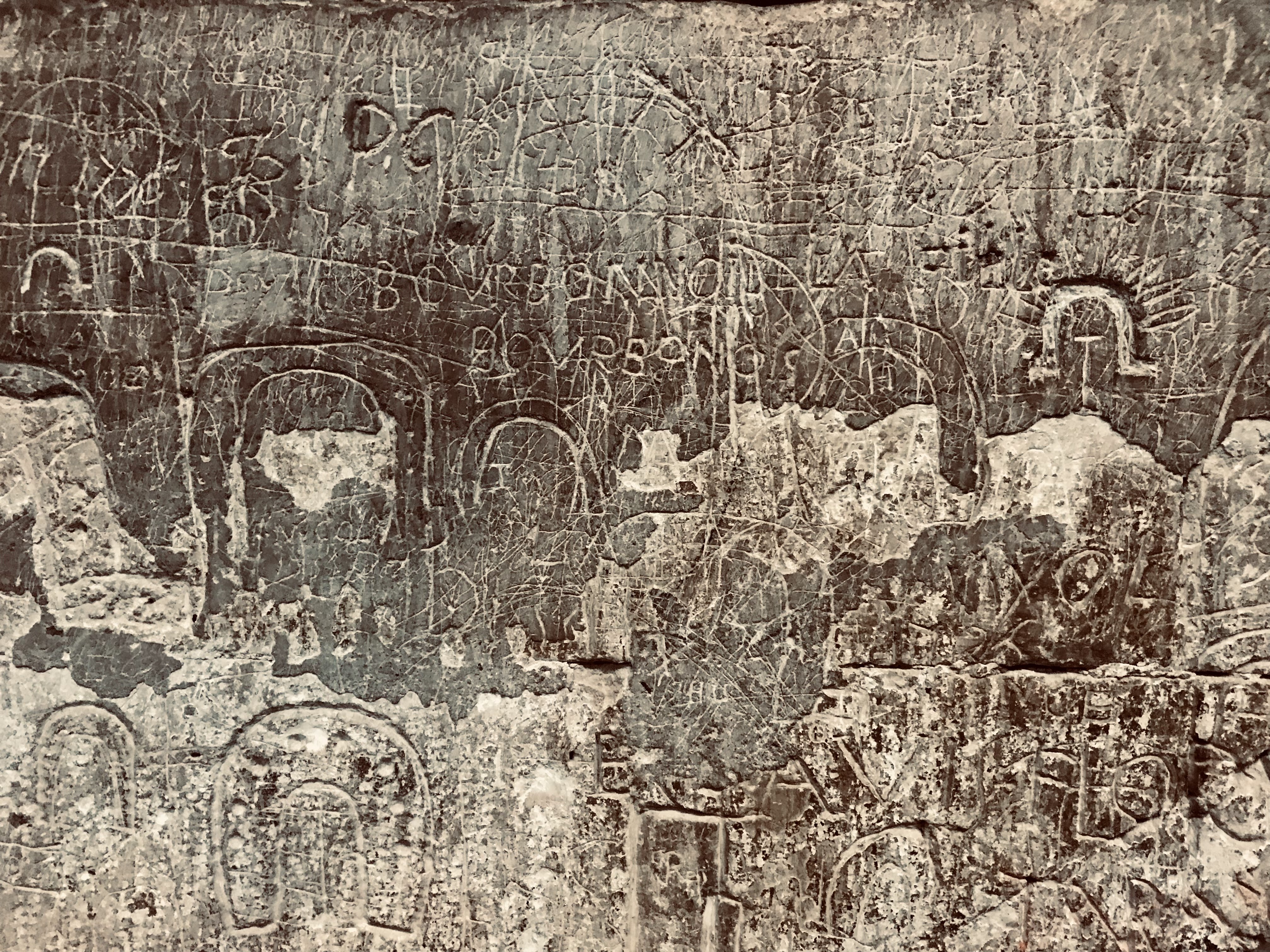 les graffitis sur les colonnes et les murs de ce sanctuaire sont vraiment uniques