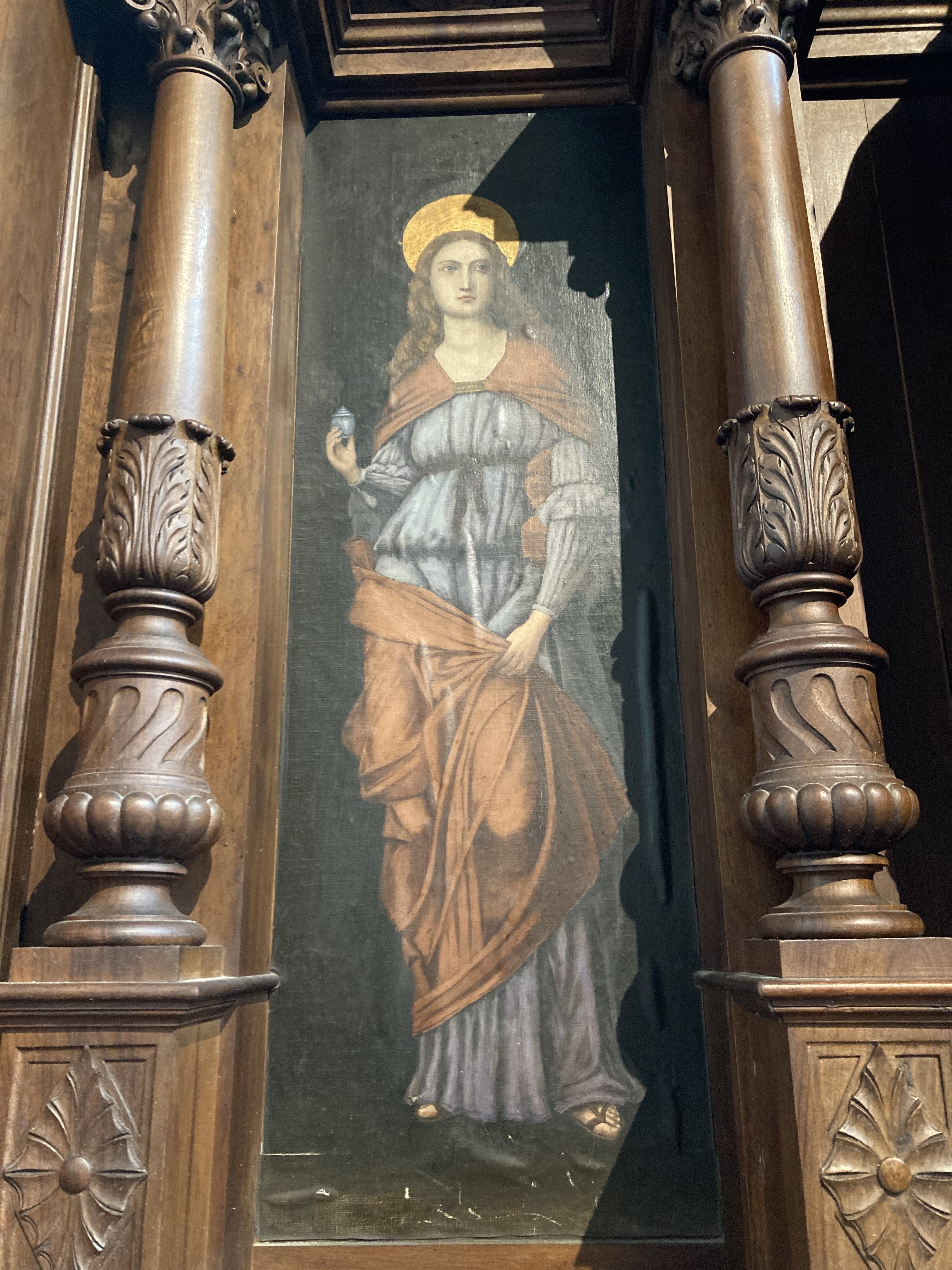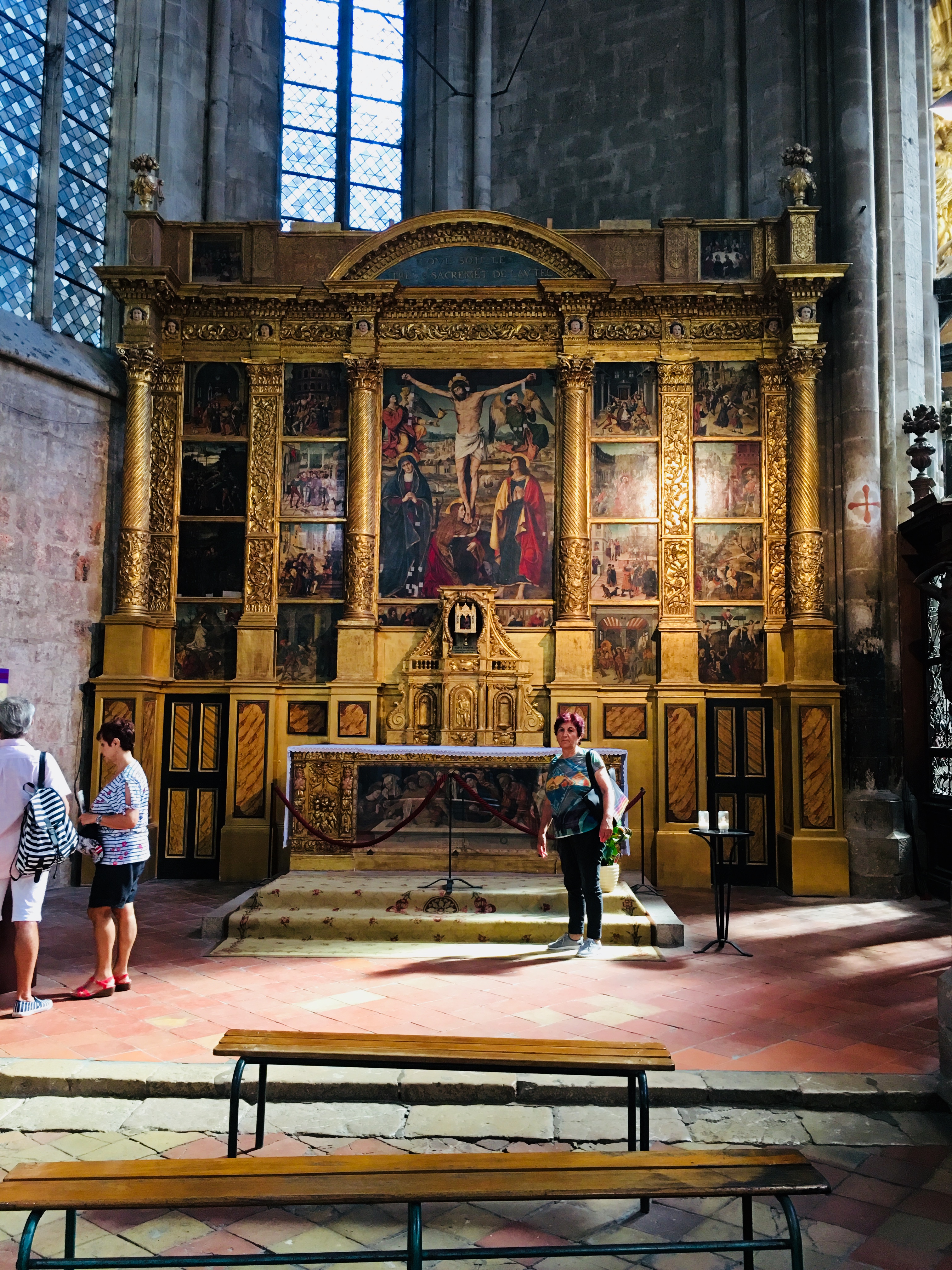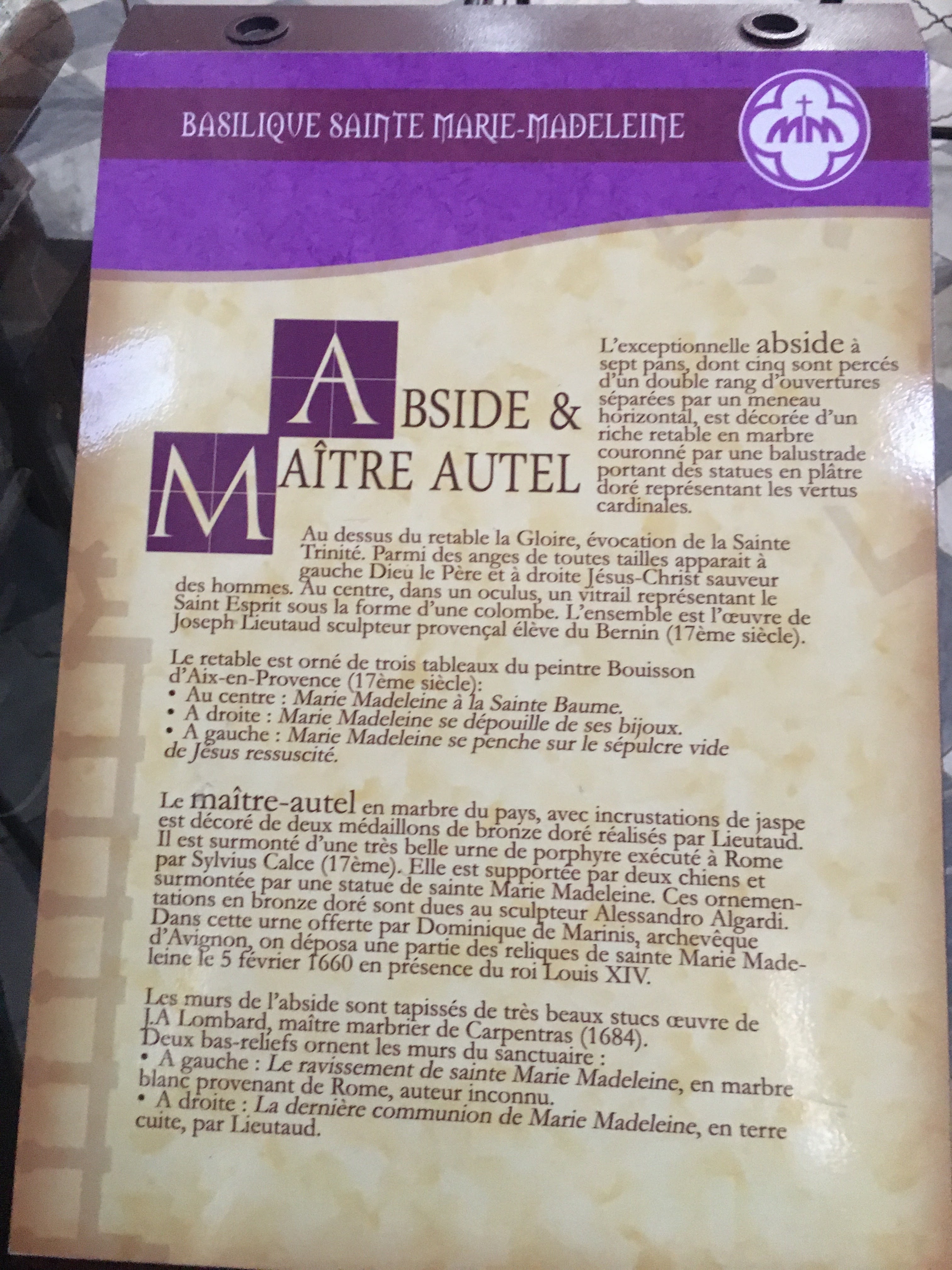 Tout d’abord la lumière qui entre pour illuminer cet imposant édifice. Puis les autels dédiés avec des peintures, comme les retables, qui datent de plusieurs siècles. Et l’orgue que nous avons eu la chance d’écouter un moment. Et enfin la crypte avec les reliques de Marie Madeleine. Un grand moment de sérénité m’a envahie.