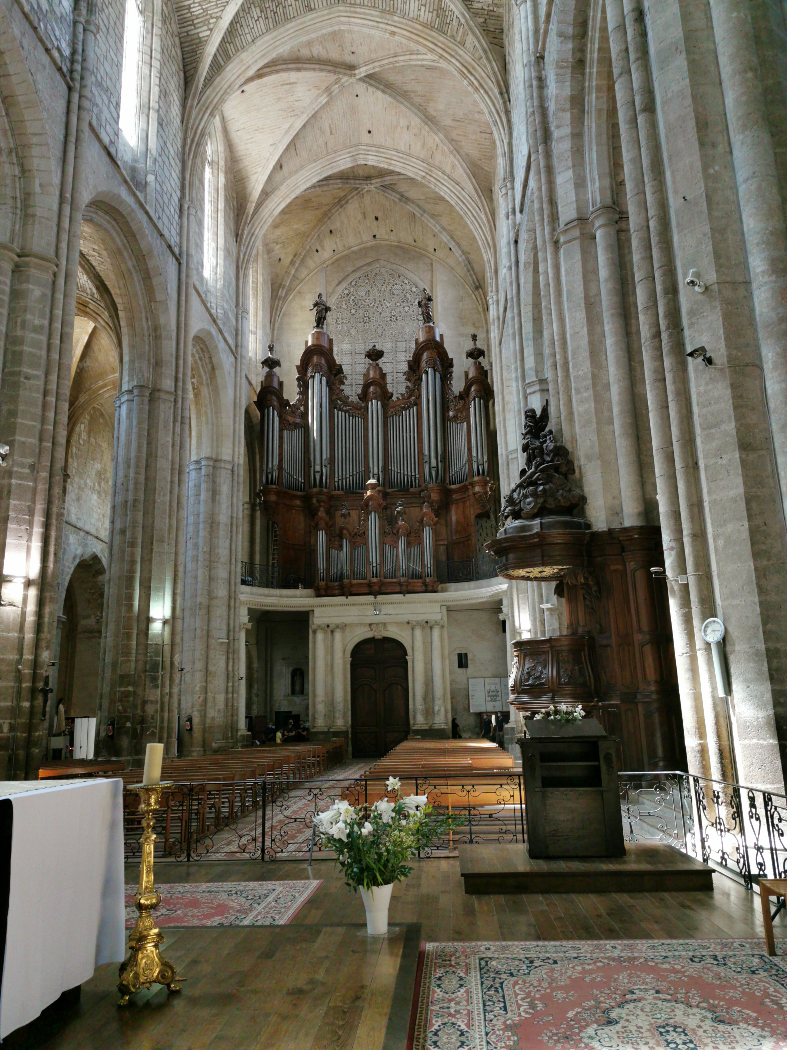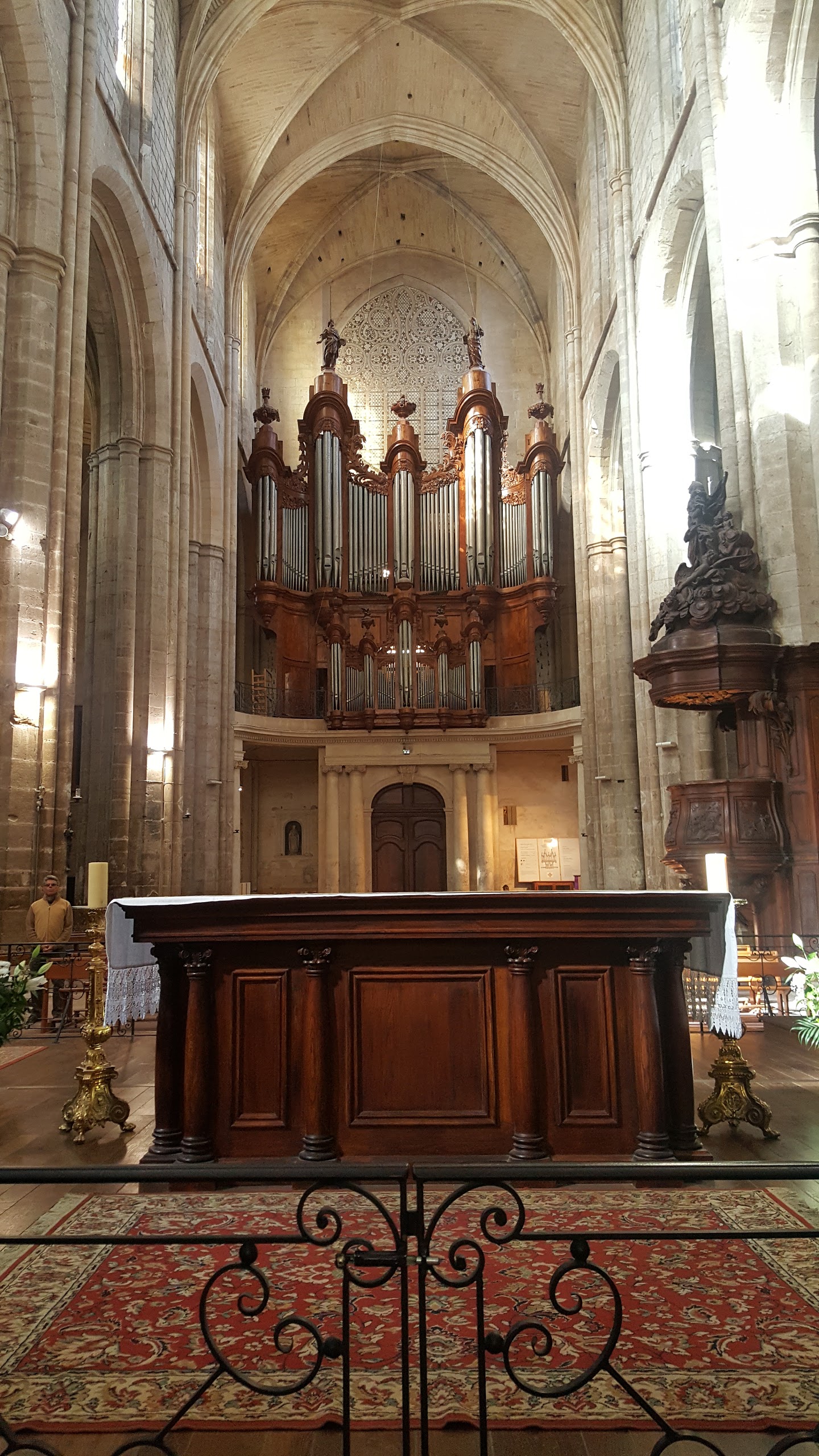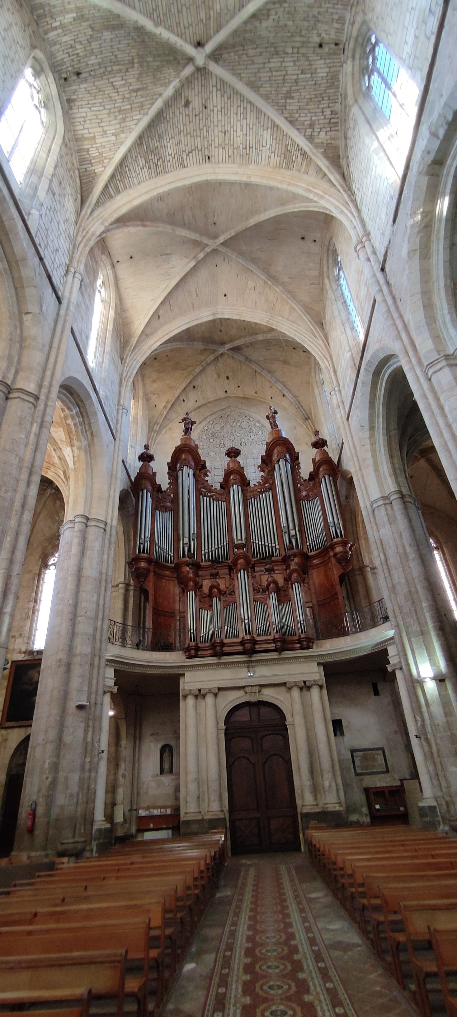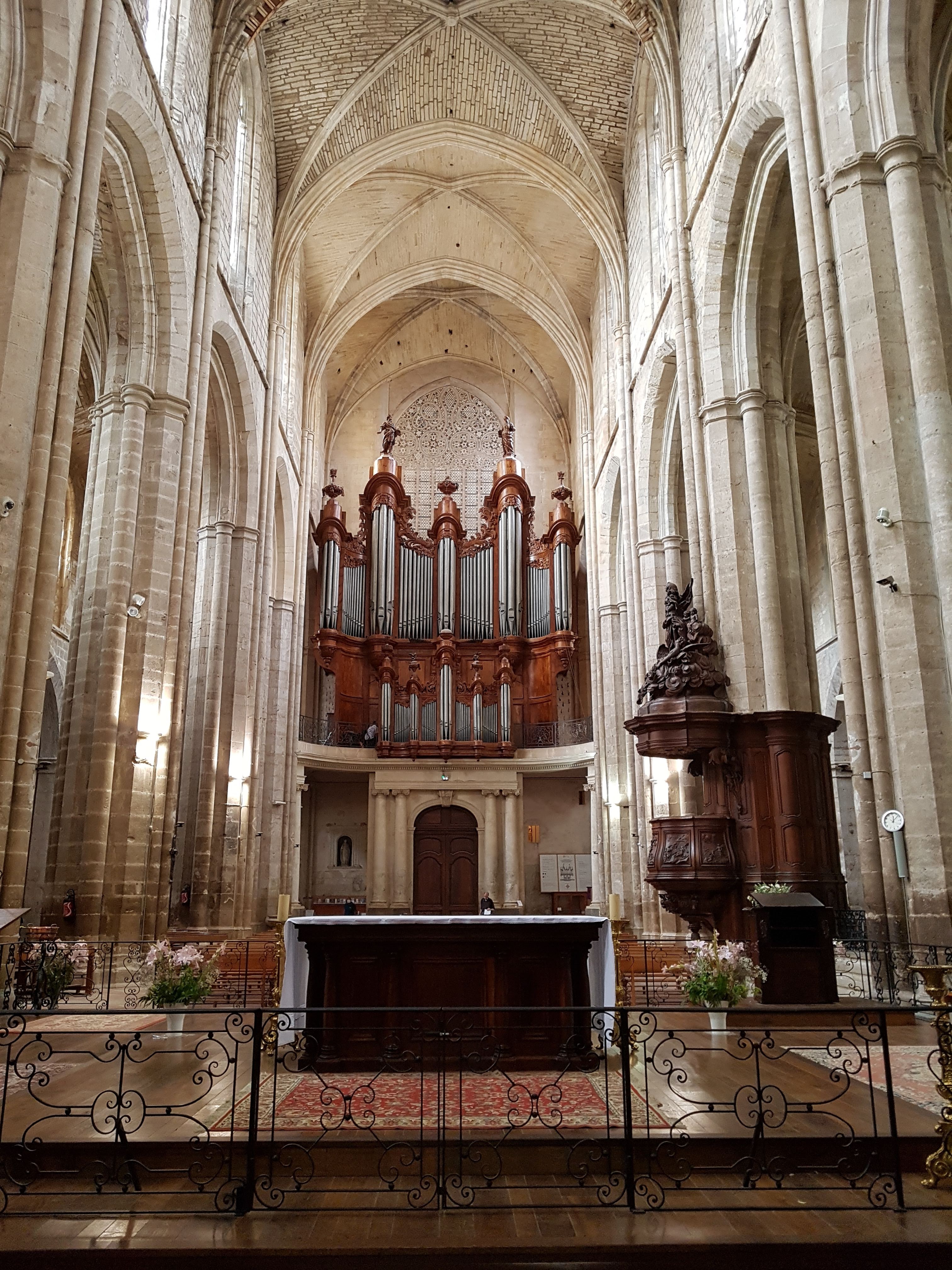 Terrible dépouillement de ce bâtiment qui devait être un des plus riches de France avant que les révolutionnaires s'approprient ses biens. Seul reste en place l'orgue magnifique et on se plaît à imaginer des messes à l'époque dans cette immense nef.