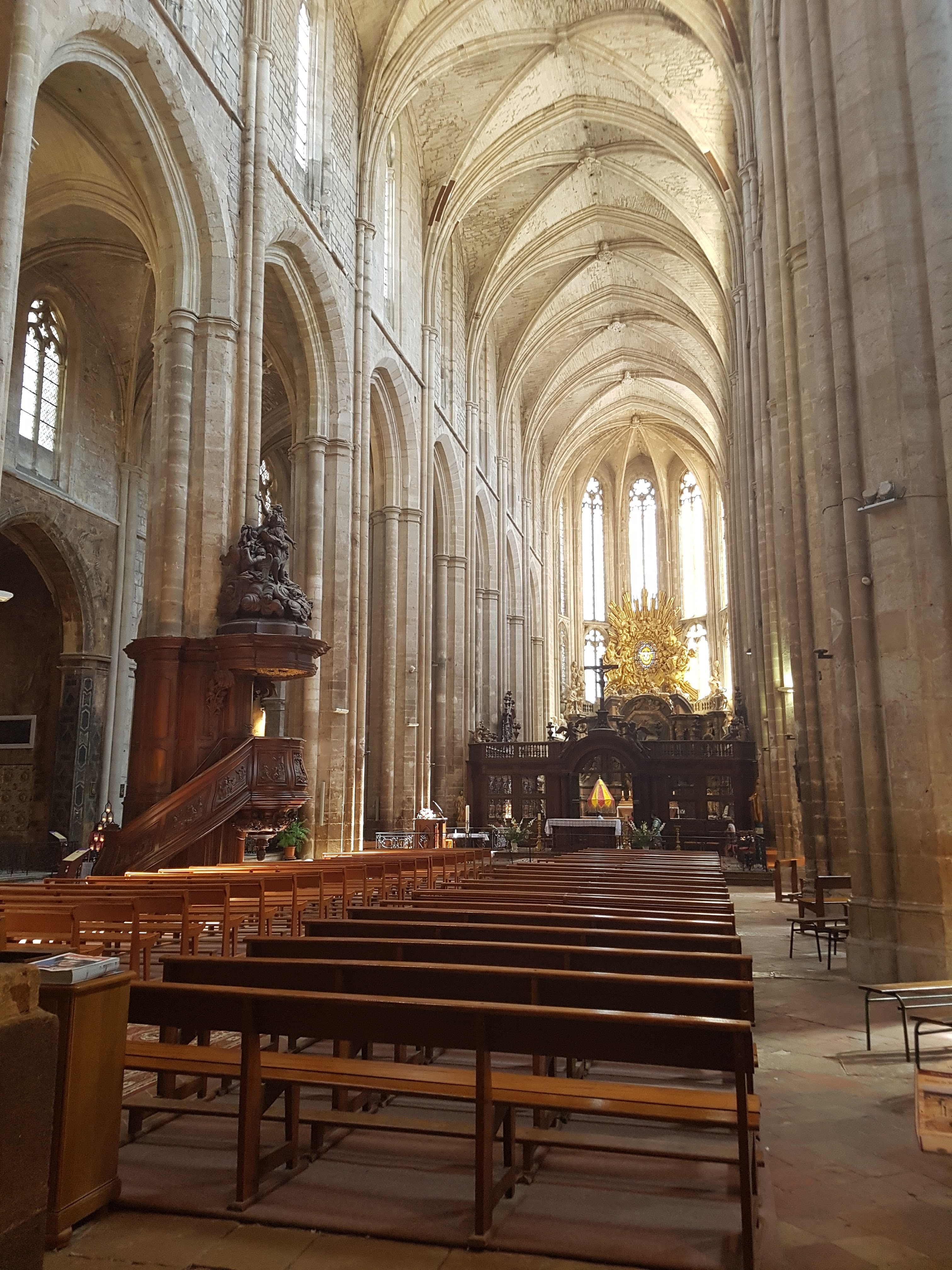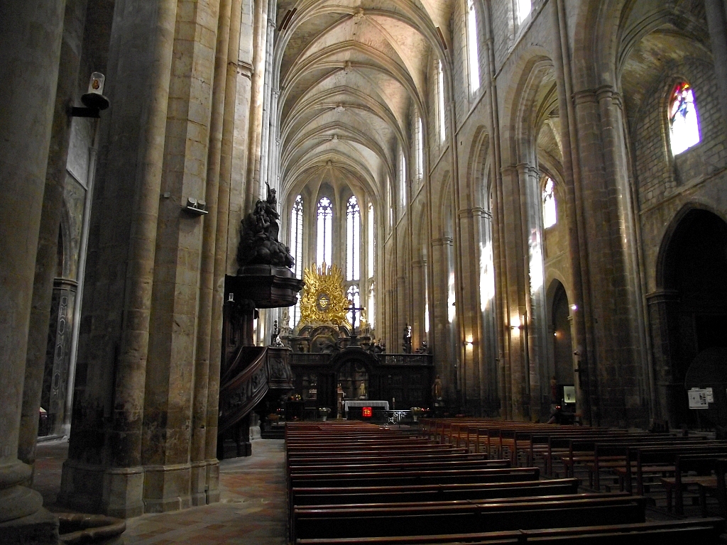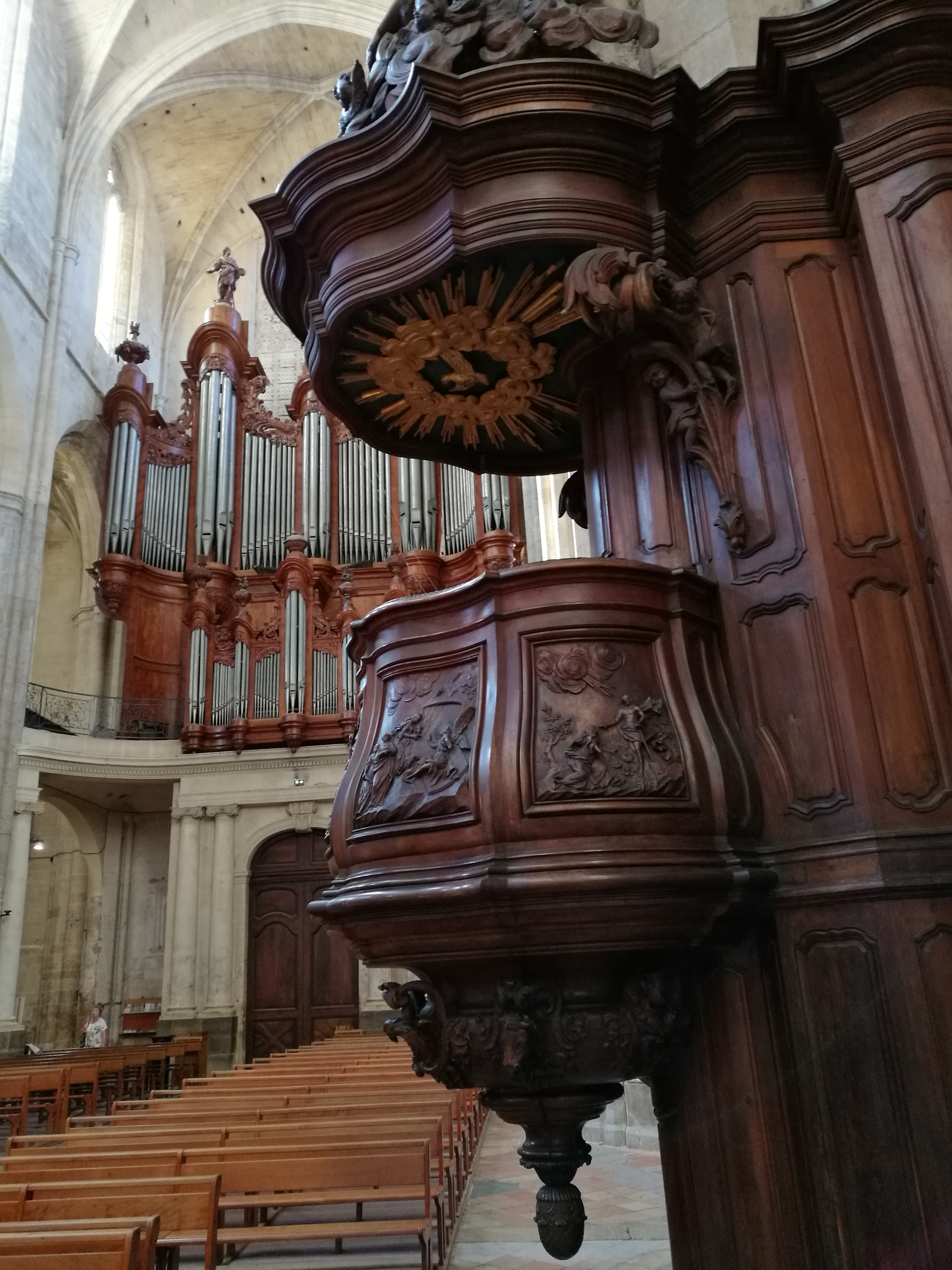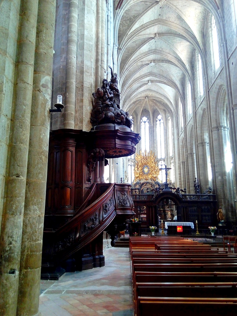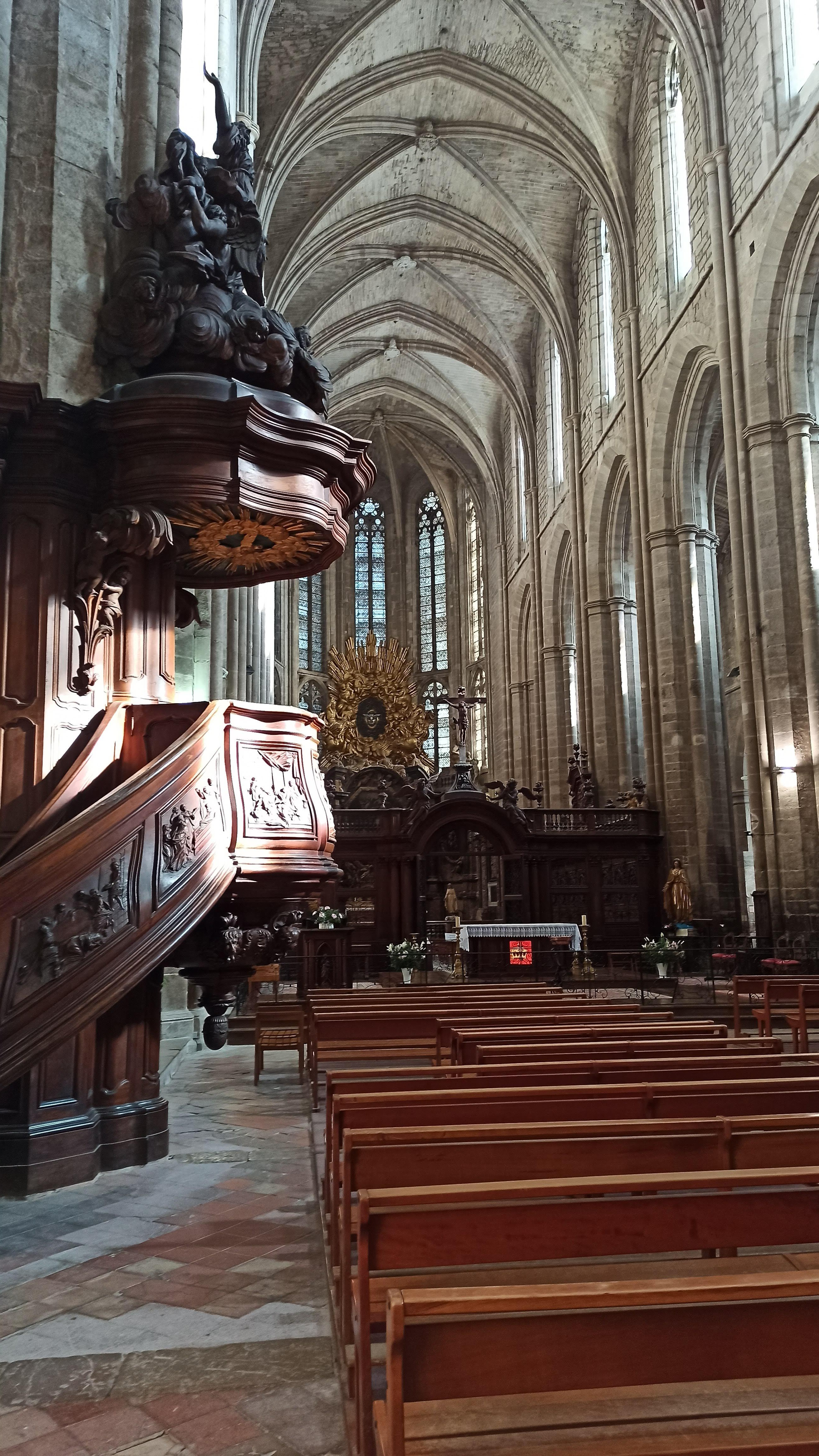 Terrible dépouillement de ce bâtiment qui devait être un des plus riches de France avant que les révolutionnaires s'approprient ses biens. Seul reste en place l'orgue magnifique et on se plaît à imaginer des messes à l'époque dans cette immense nef.