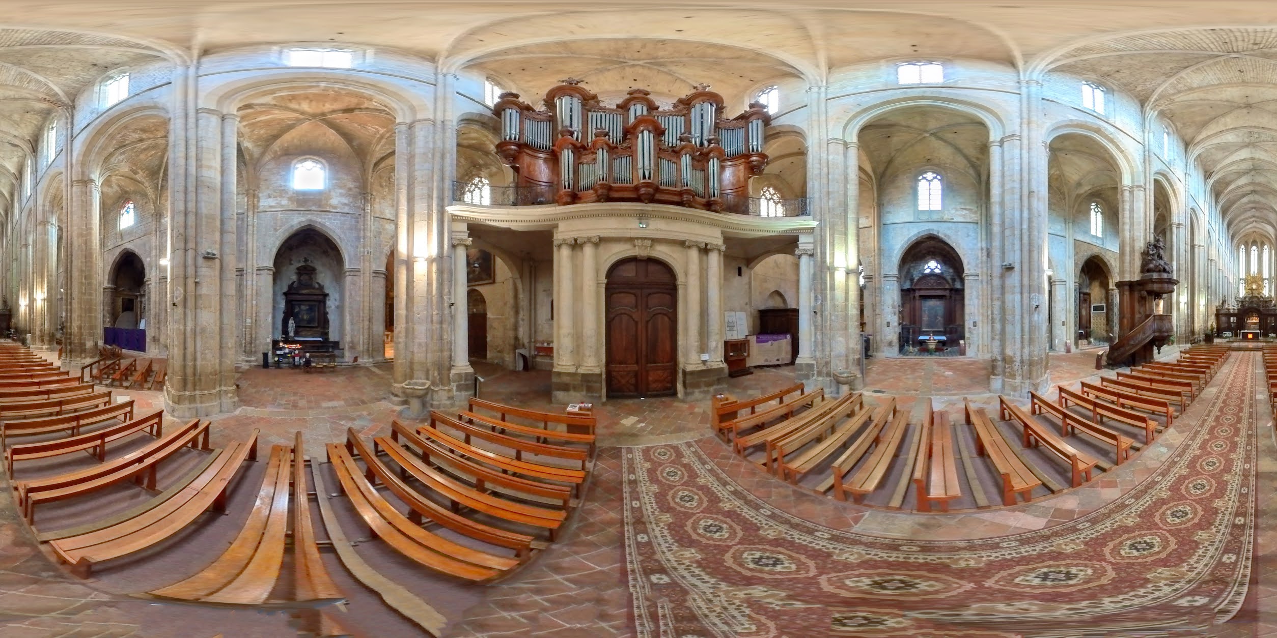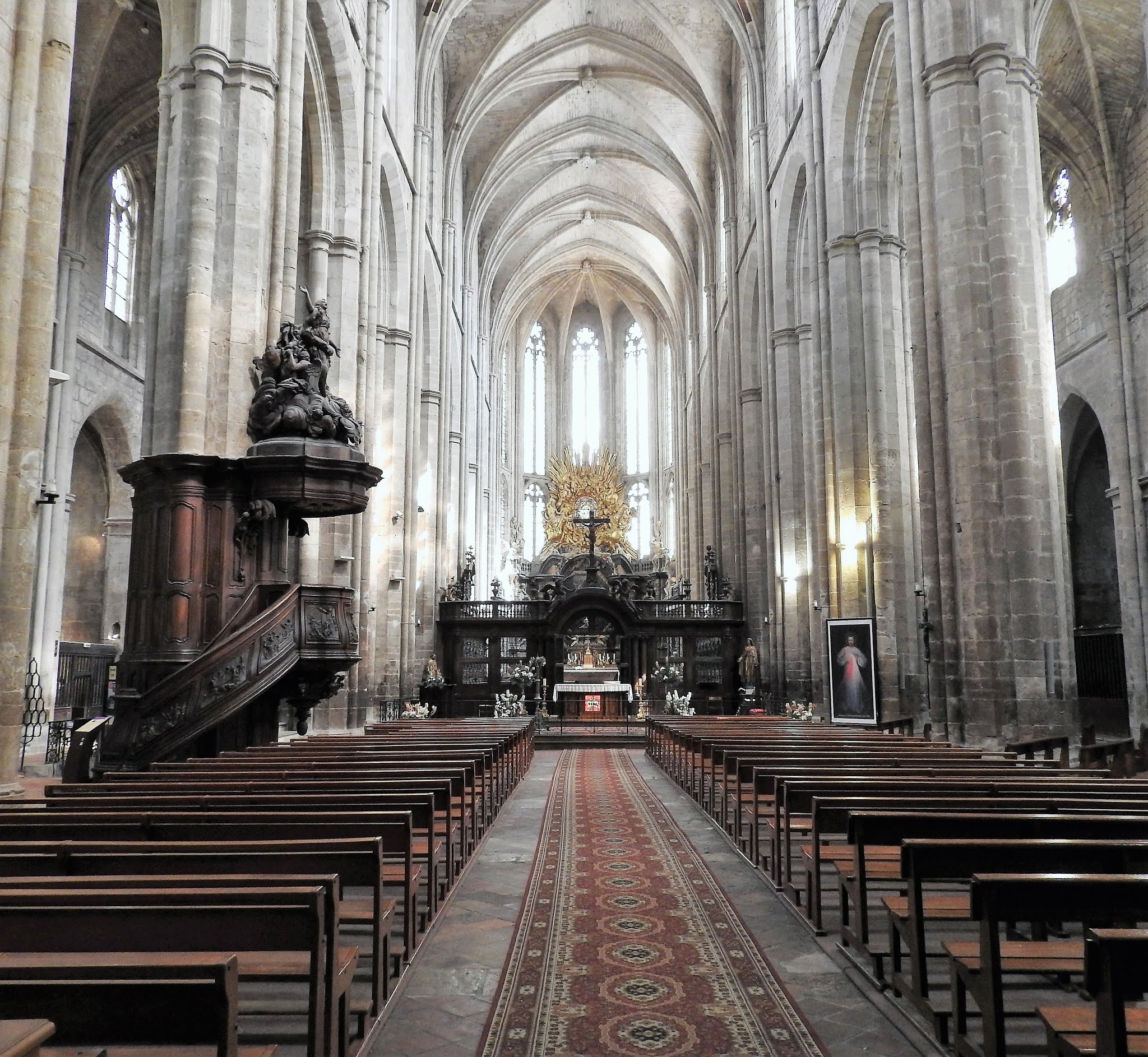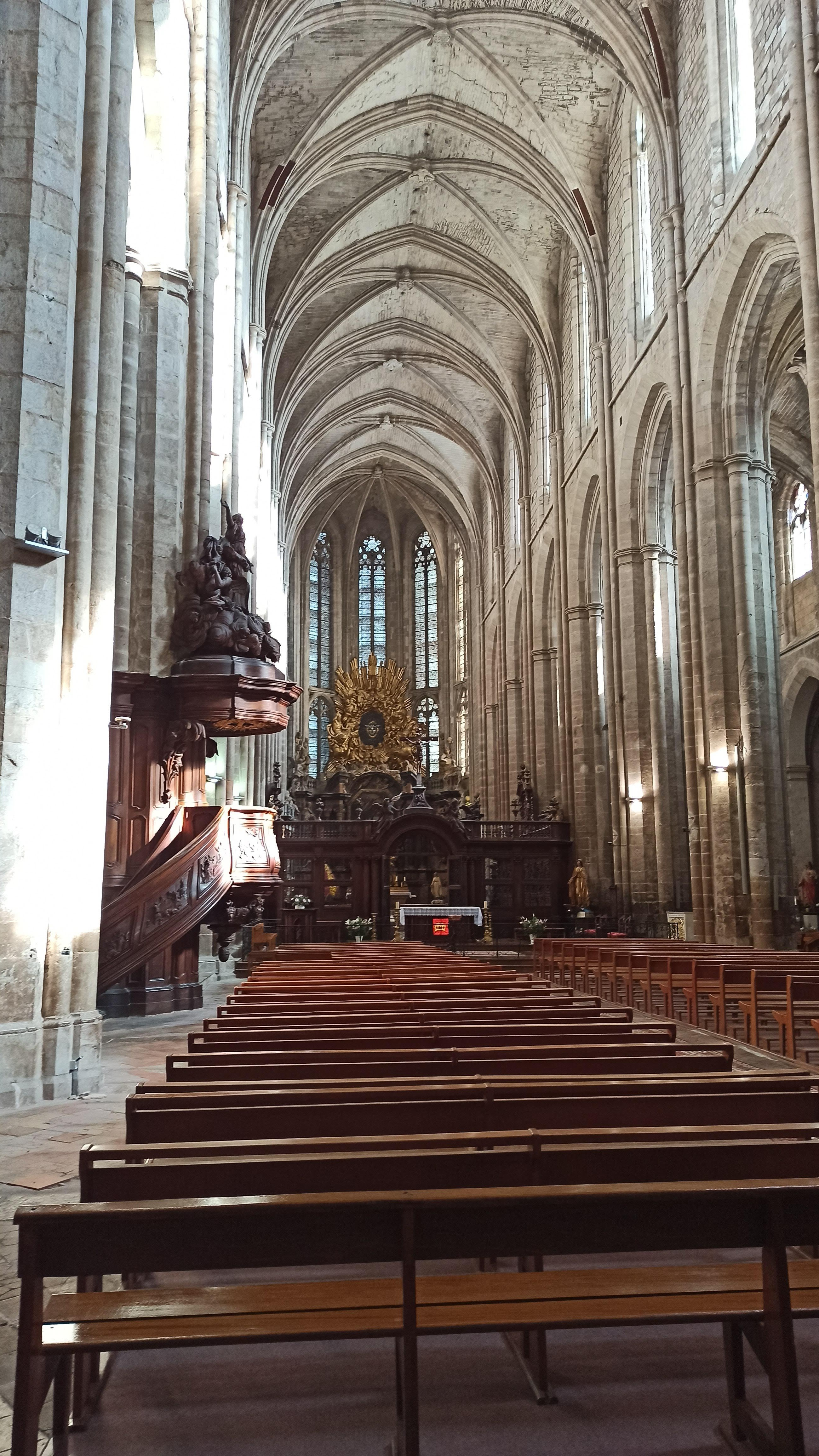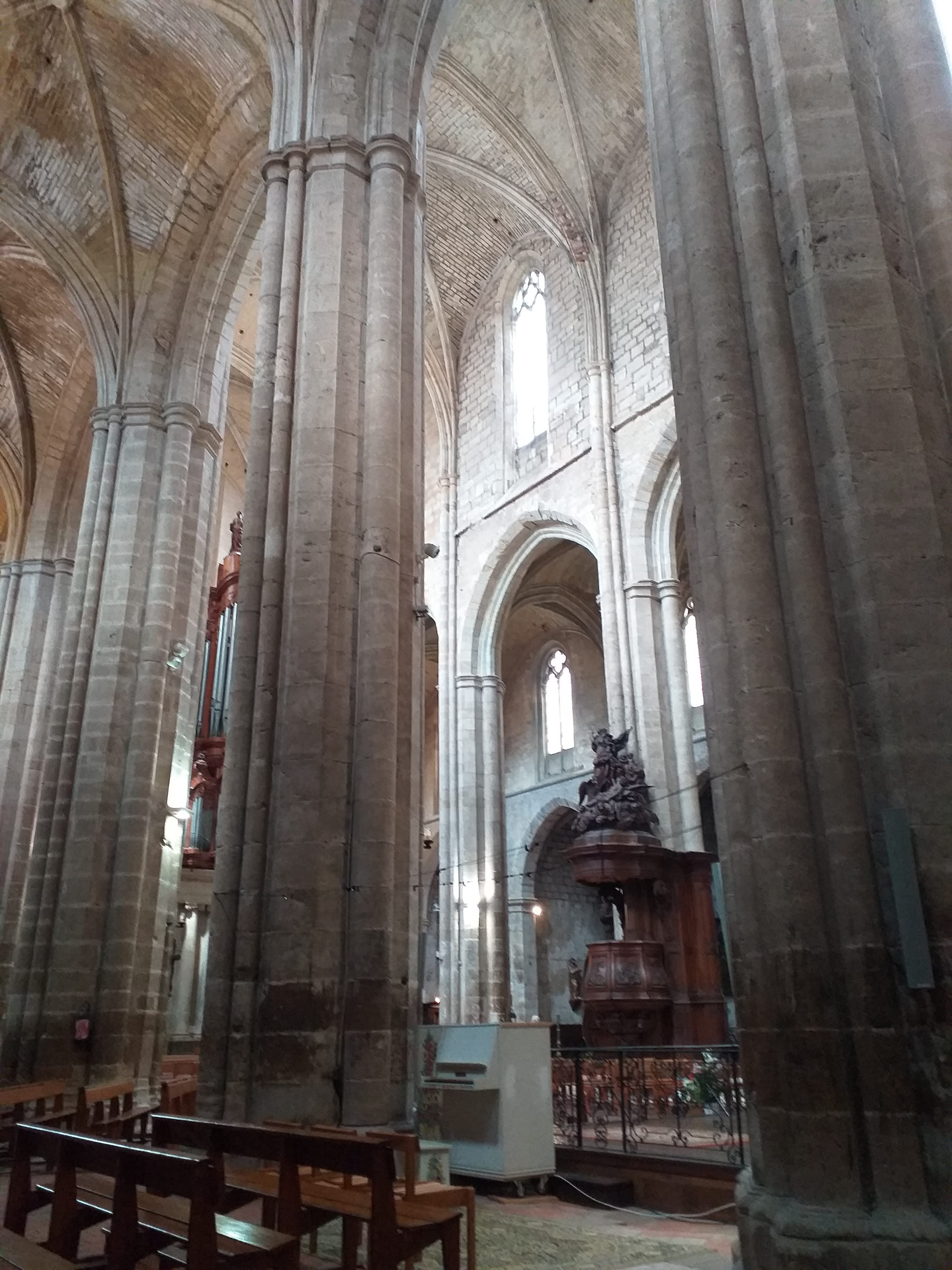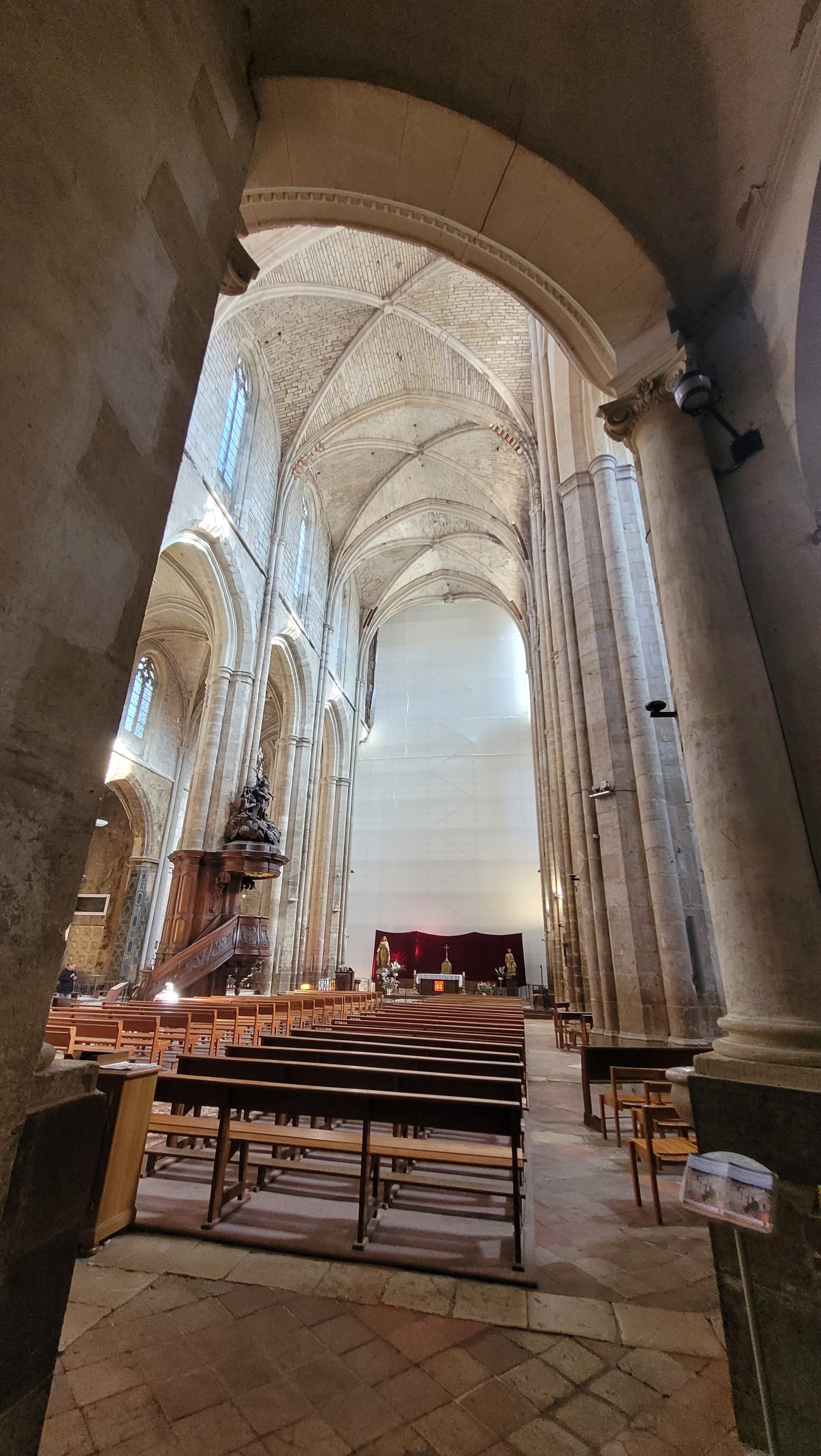 Terrible dépouillement de ce bâtiment qui devait être un des plus riches de France avant que les révolutionnaires s'approprient ses biens. Seul reste en place l'orgue magnifique et on se plaît à imaginer des messes à l'époque dans cette immense nef.