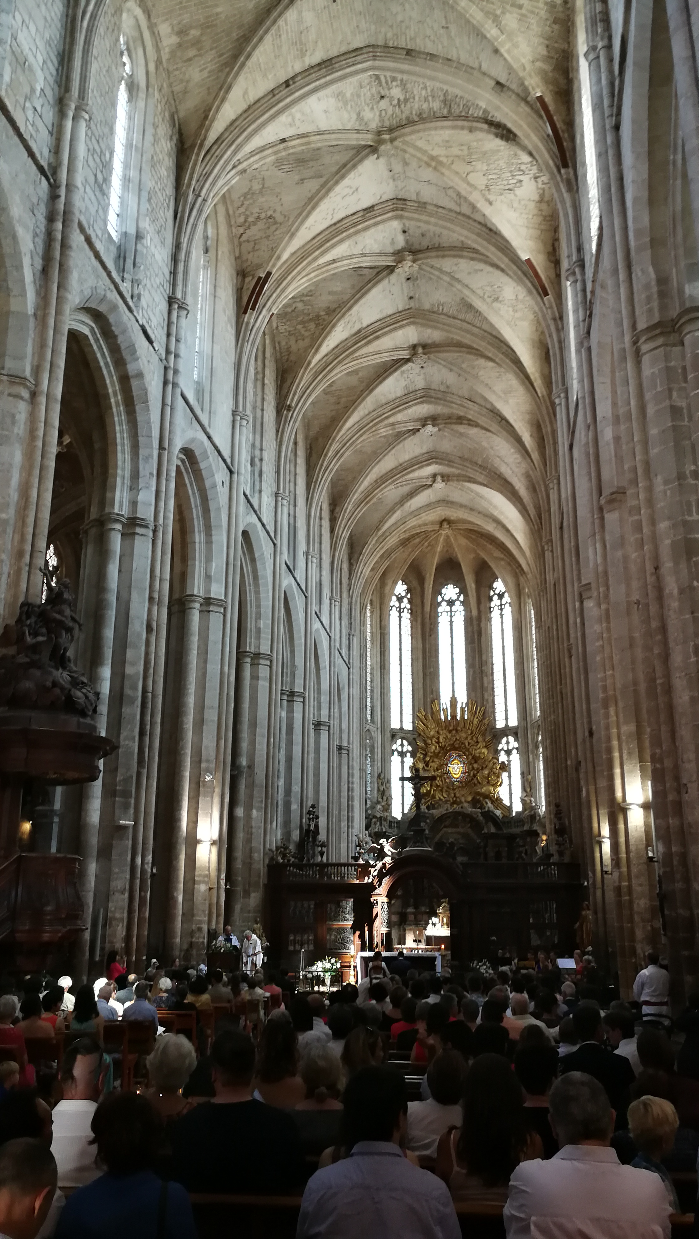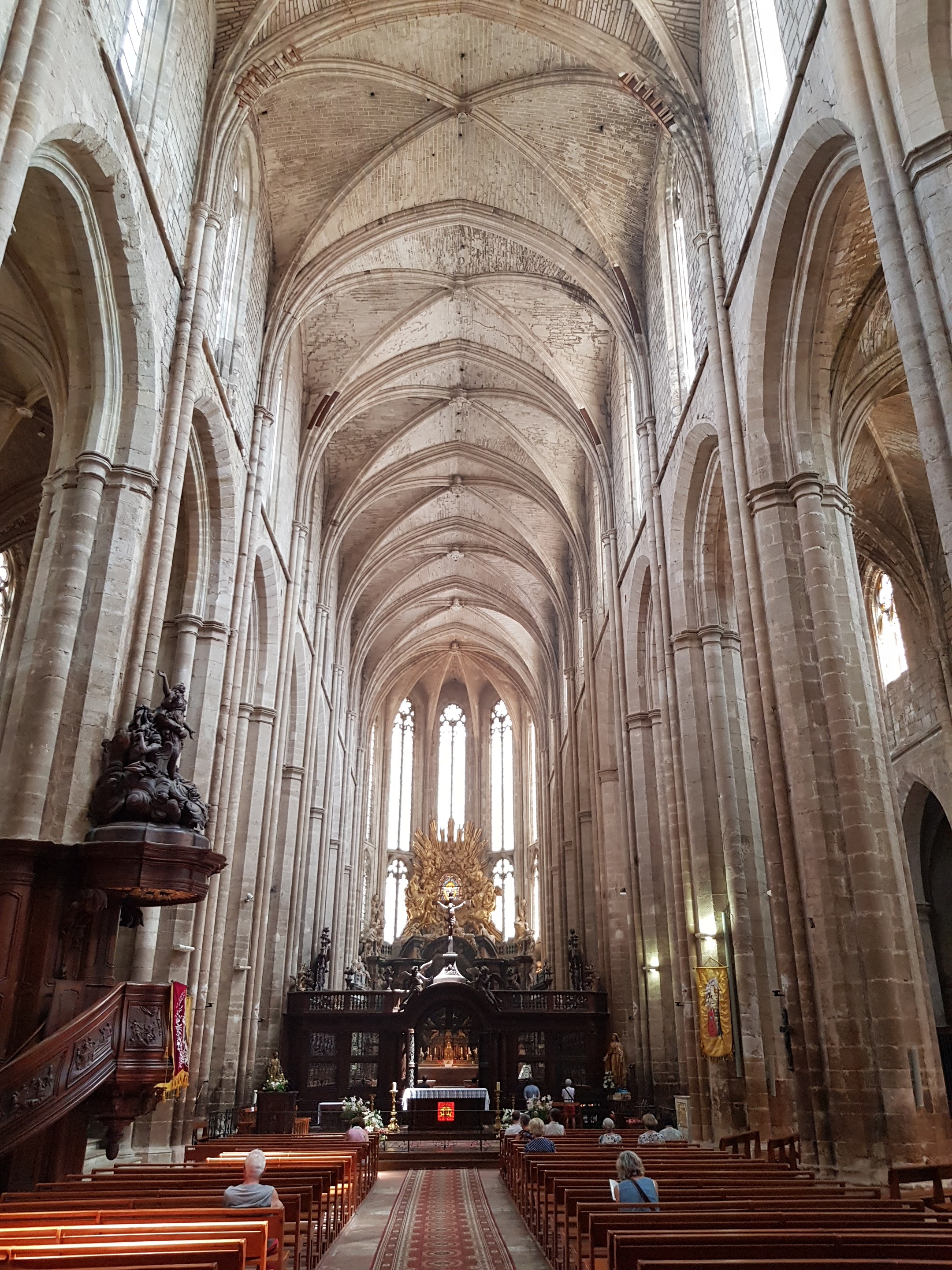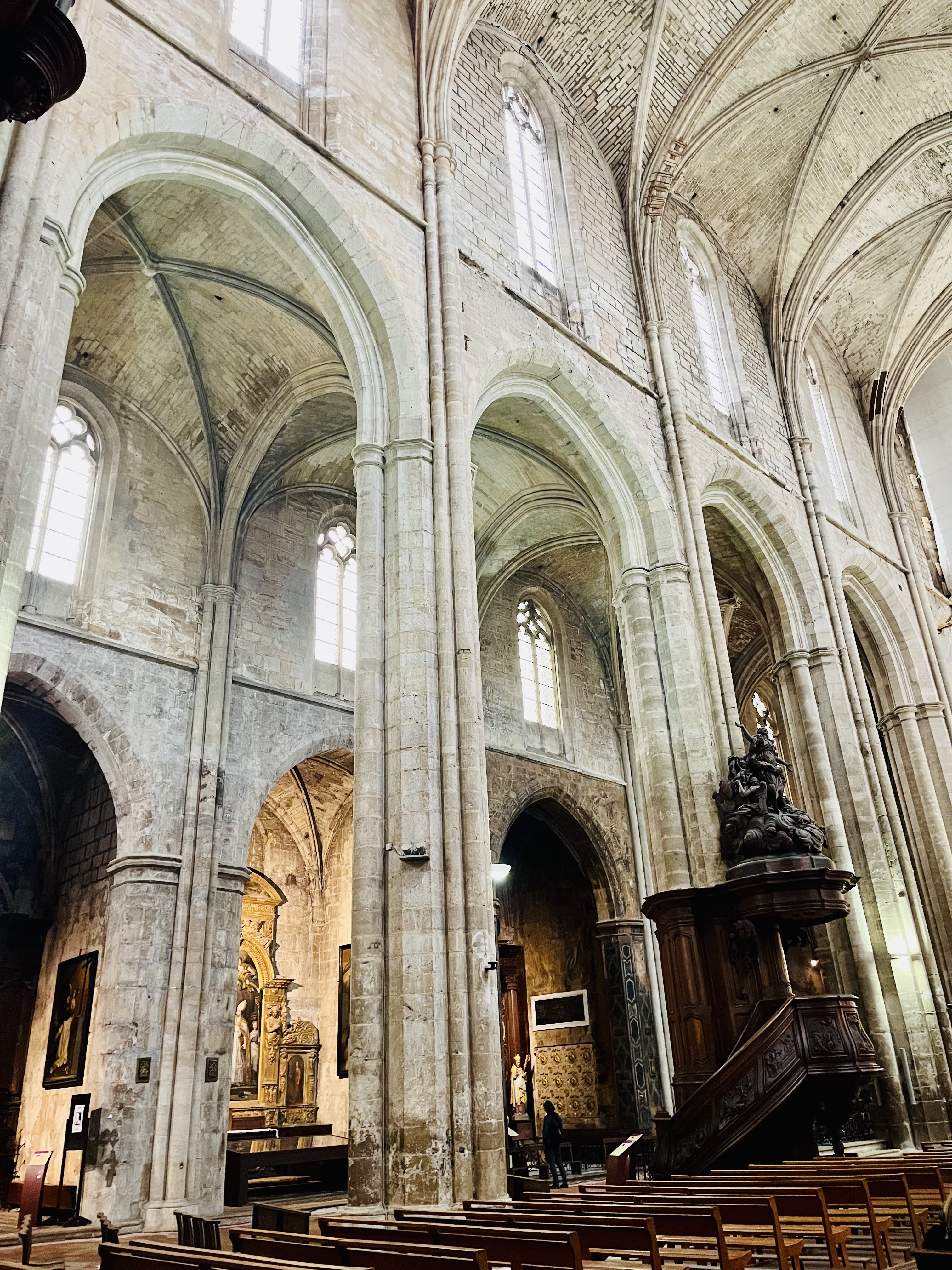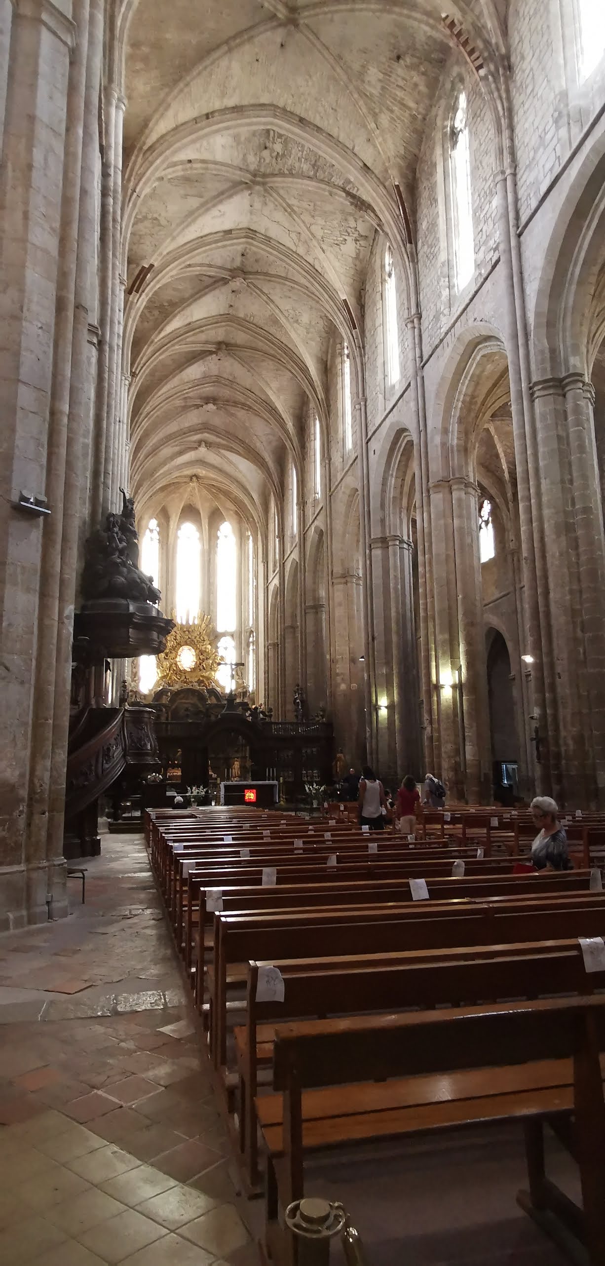 Terrible dépouillement de ce bâtiment qui devait être un des plus riches de France avant que les révolutionnaires s'approprient ses biens. Seul reste en place l'orgue magnifique et on se plaît à imaginer des messes à l'époque dans cette immense nef.