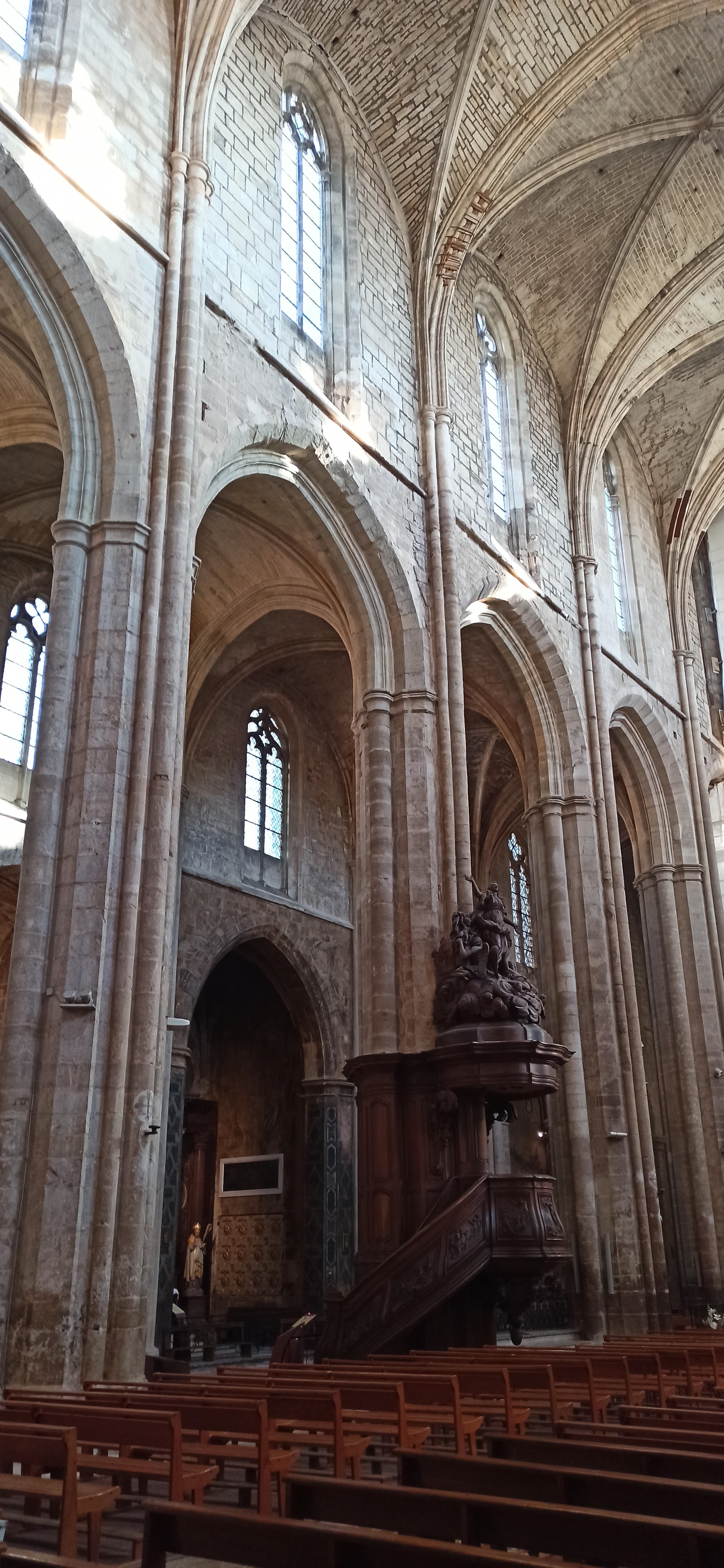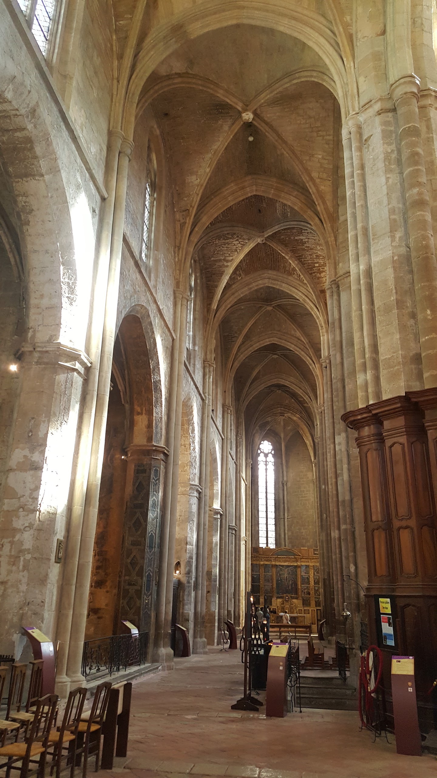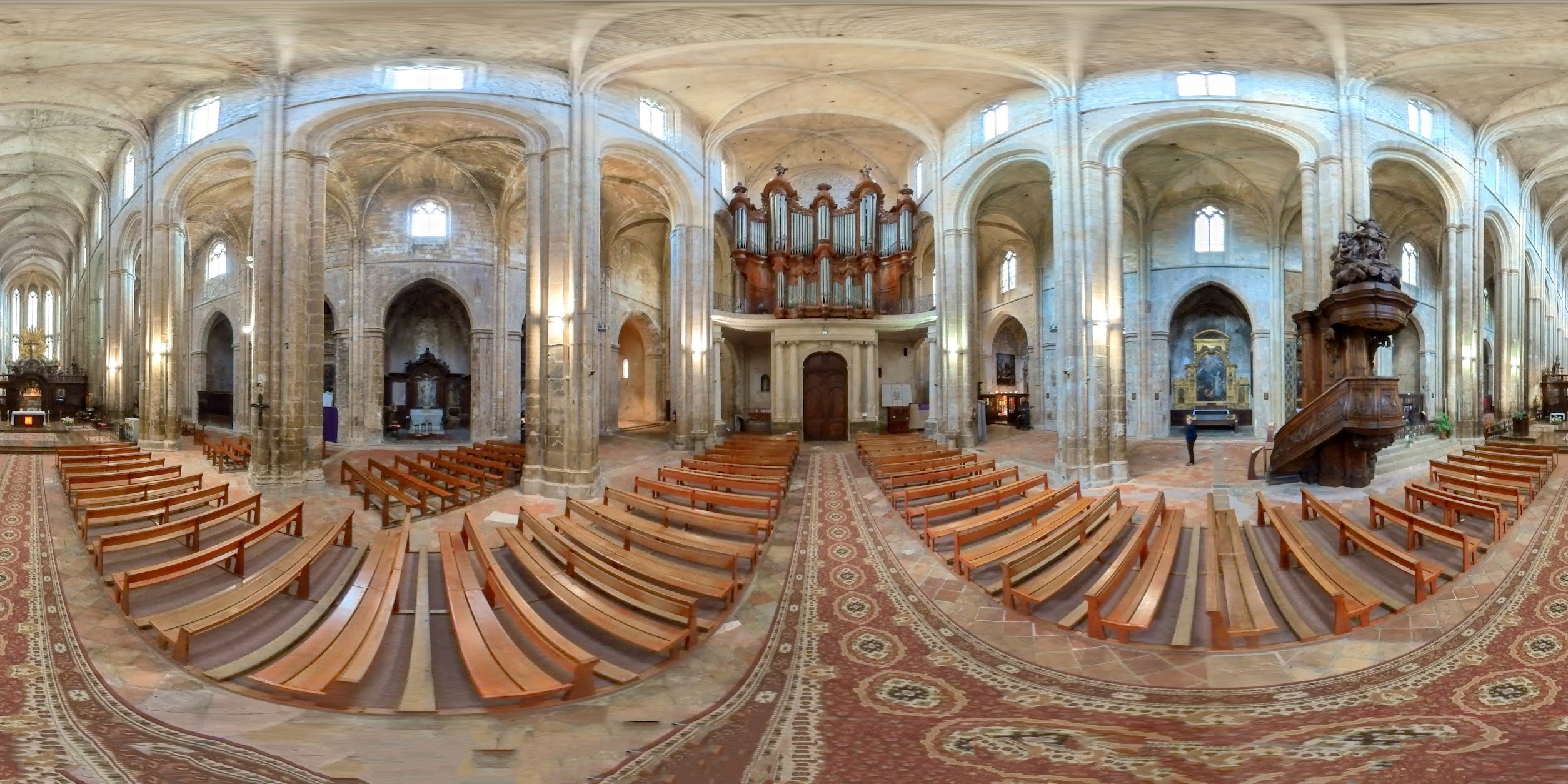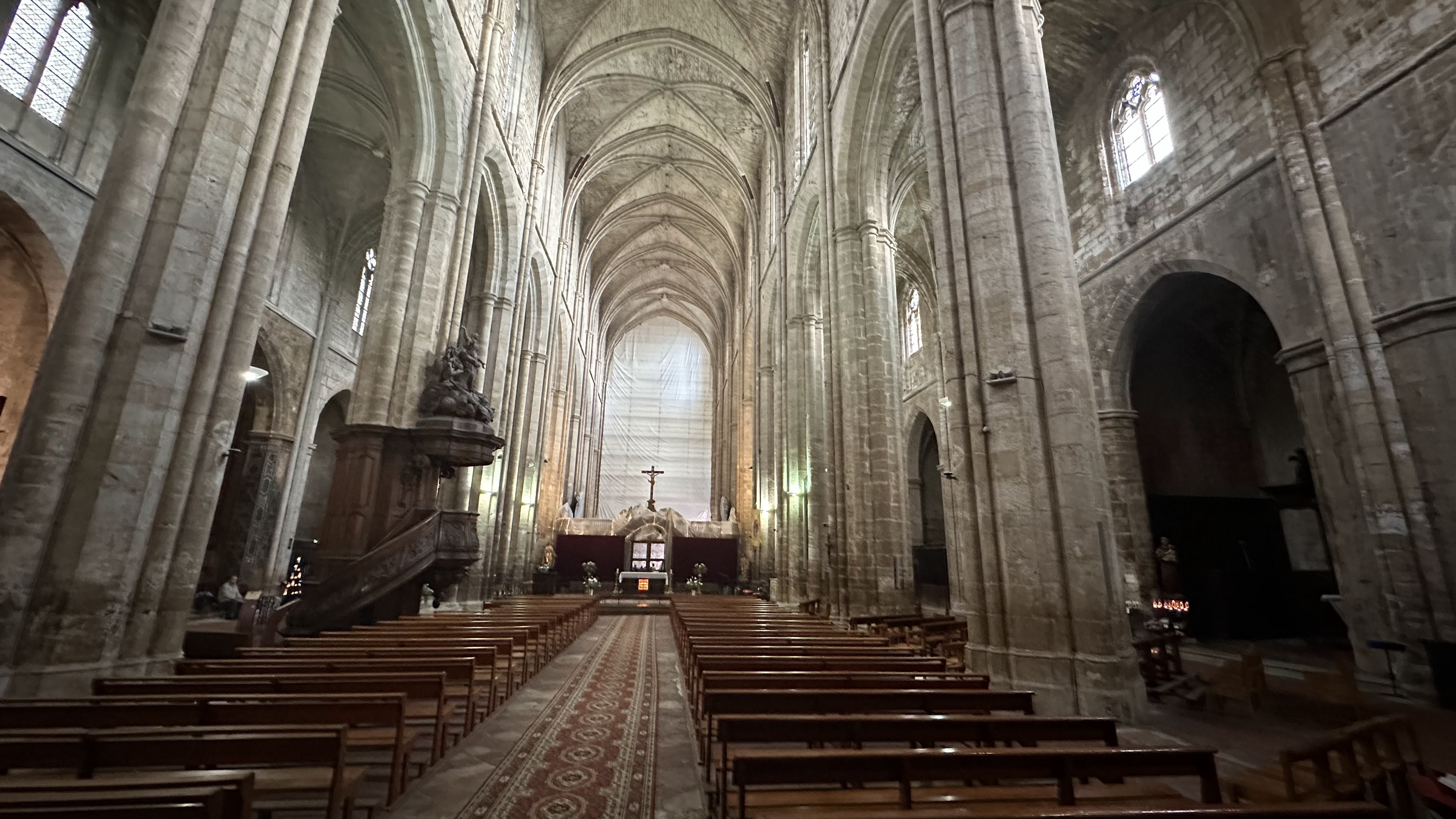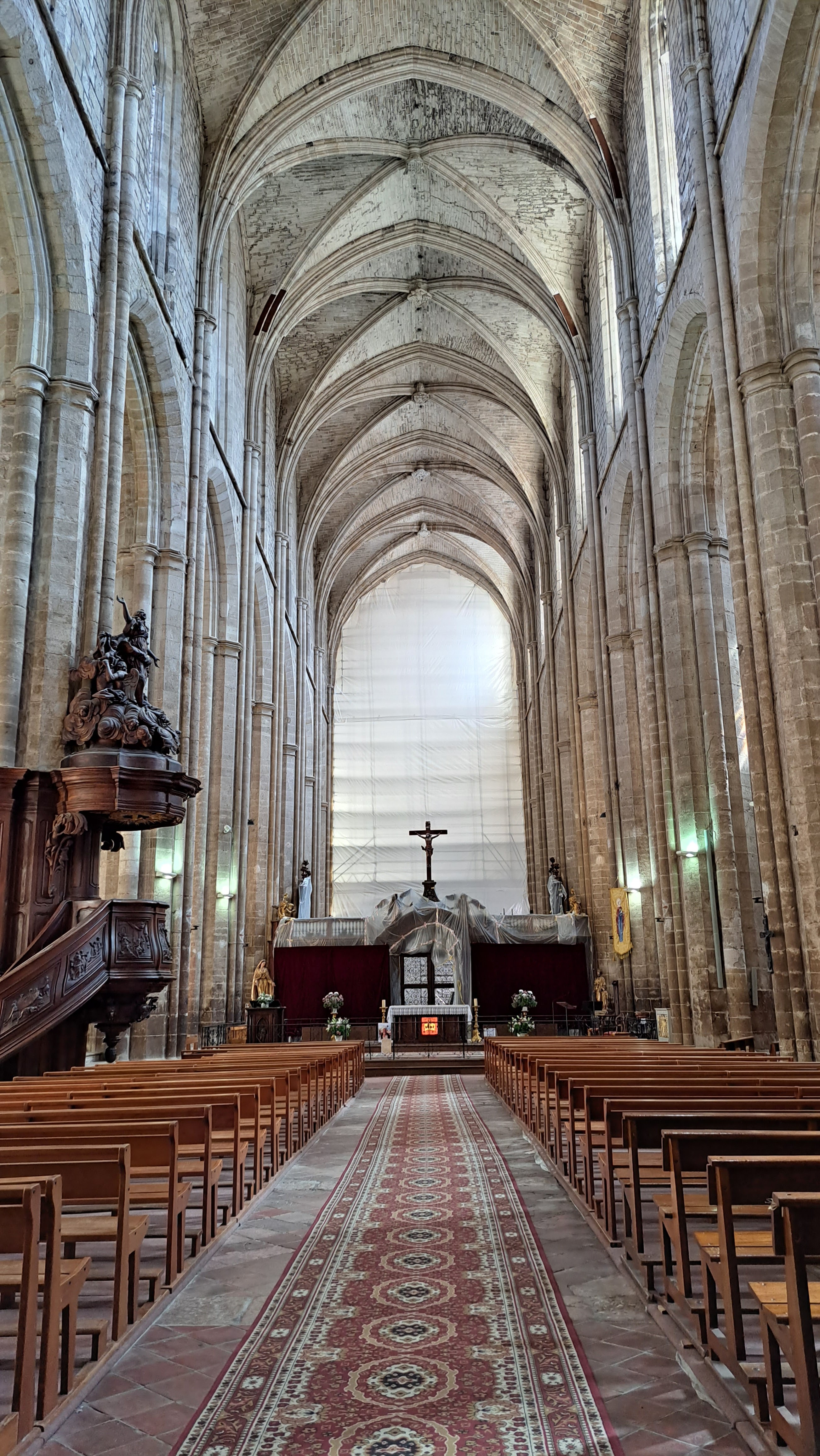 Terrible dépouillement de ce bâtiment qui devait être un des plus riches de France avant que les révolutionnaires s'approprient ses biens. Seul reste en place l'orgue magnifique et on se plaît à imaginer des messes à l'époque dans cette immense nef.