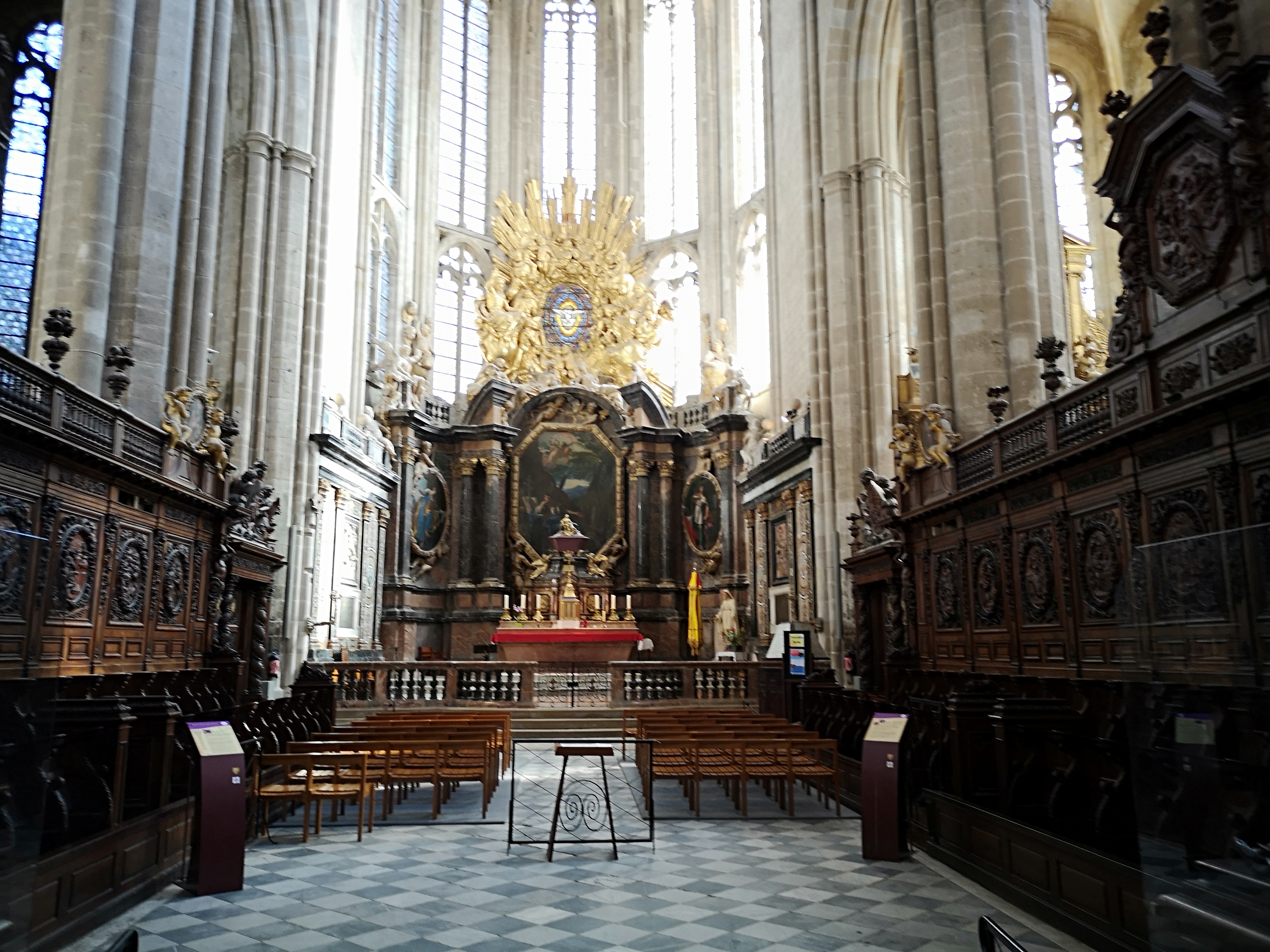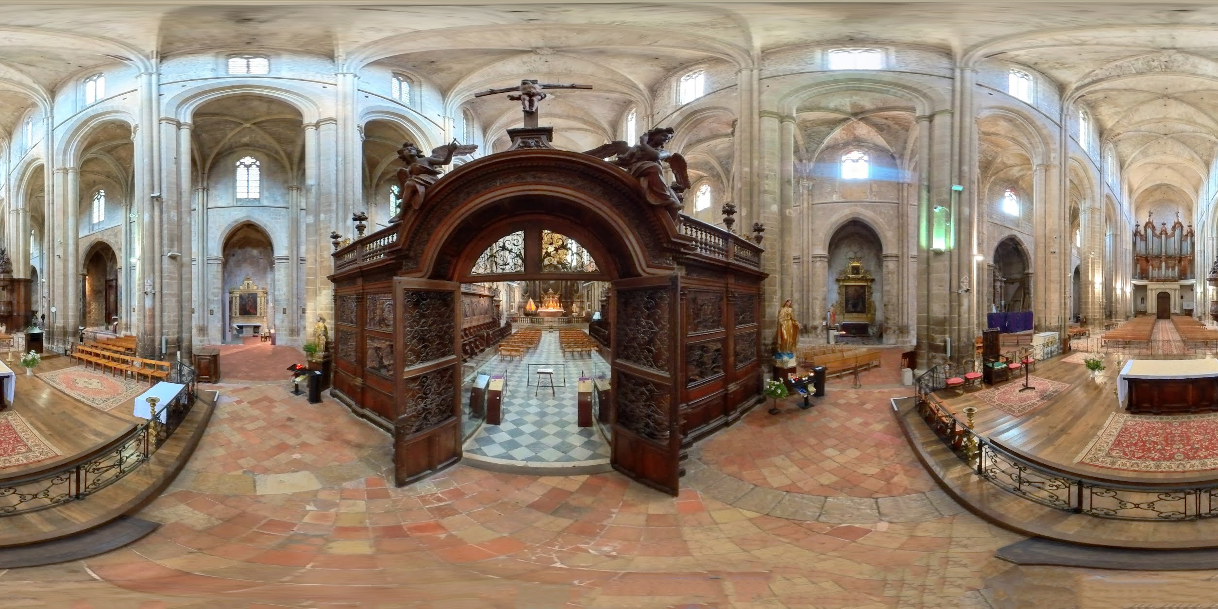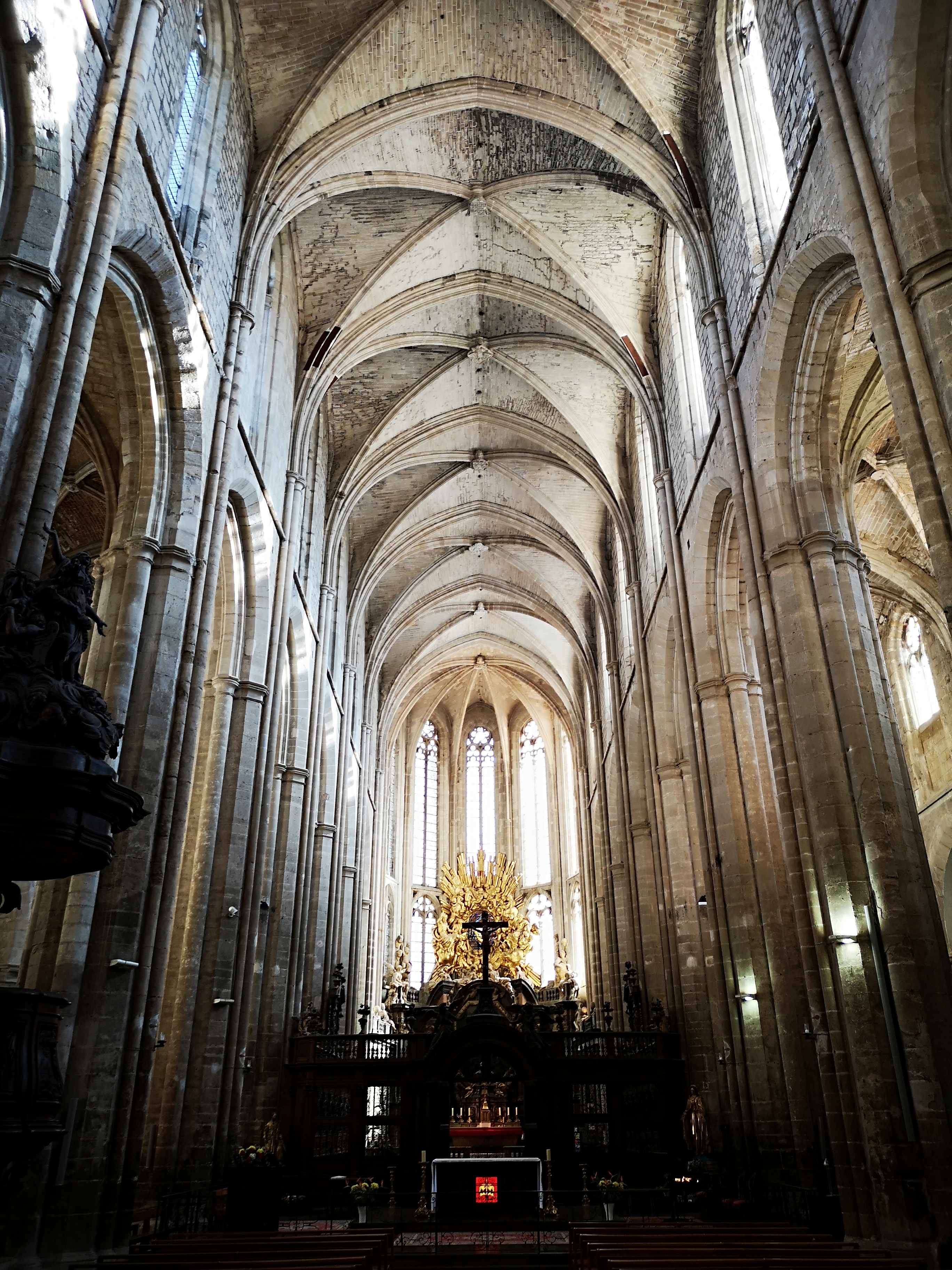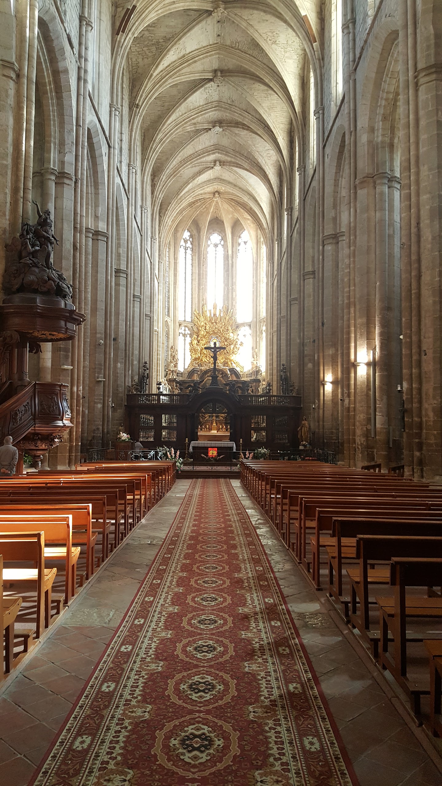 Terrible dépouillement de ce bâtiment qui devait être un des plus riches de France avant que les révolutionnaires s'approprient ses biens. Seul reste en place l'orgue magnifique et on se plaît à imaginer des messes à l'époque dans cette immense nef.
