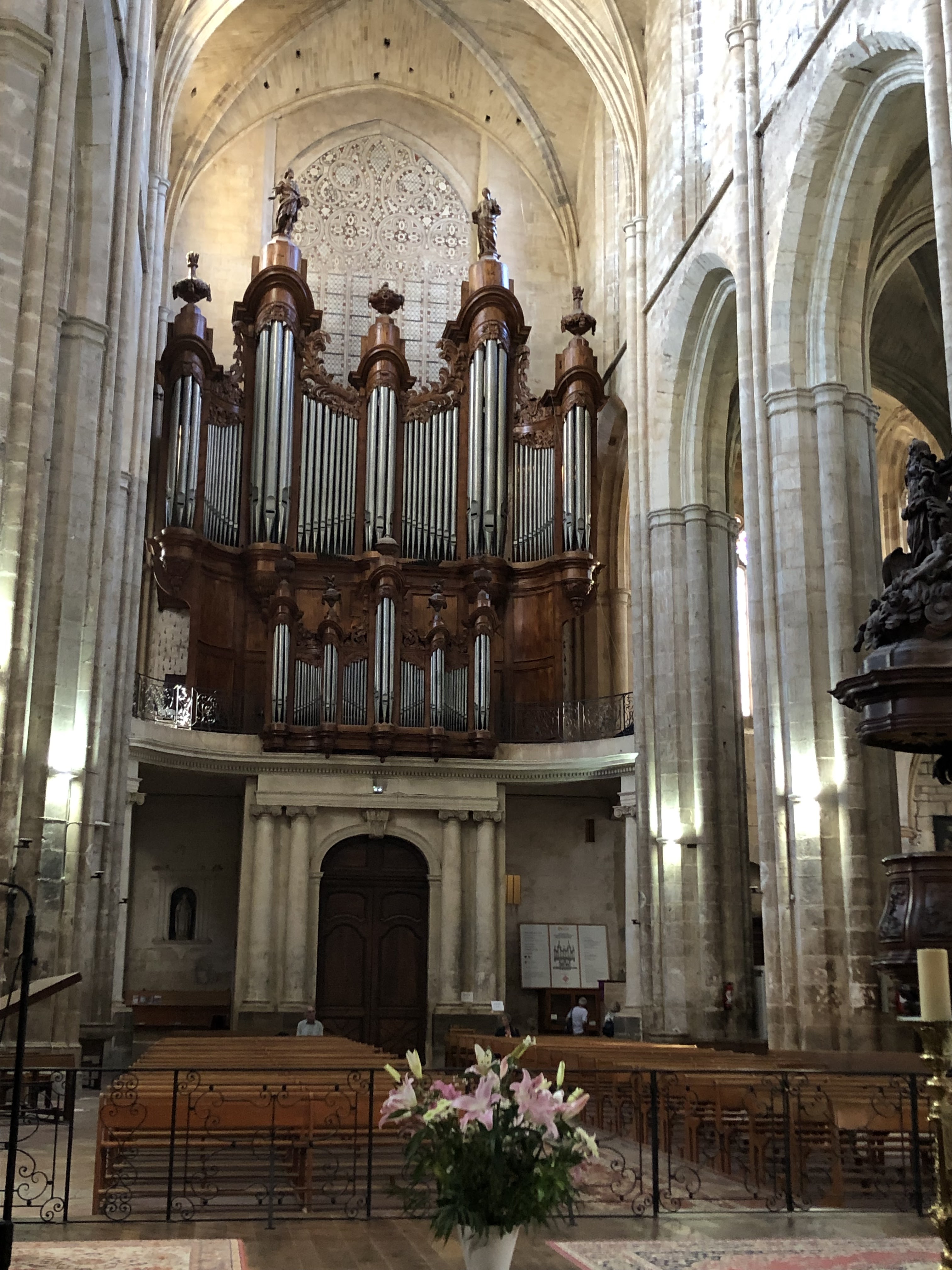 La basilique ste Marie Madeleine à St Maximin la Ste Baume, débutée en 1295 et achevée en 1532 est un monument impressionnant et incontournable. Le plus important édifice religieux de style gothique bâti en Provence, après la découverte des reliques de Ste Marie Madeleine. En pleine rénovation, nous n'avons malheureusement pas pu la visiter entièrement mais cela valait toutefois le détour. Chaire en noyé sculpté magnifique et le grand orgue, un bijou, l'un des très rares grands instruments d'Europe à avoir conservé l'intégralité de ses 2 960 tuyaux d'origine.
