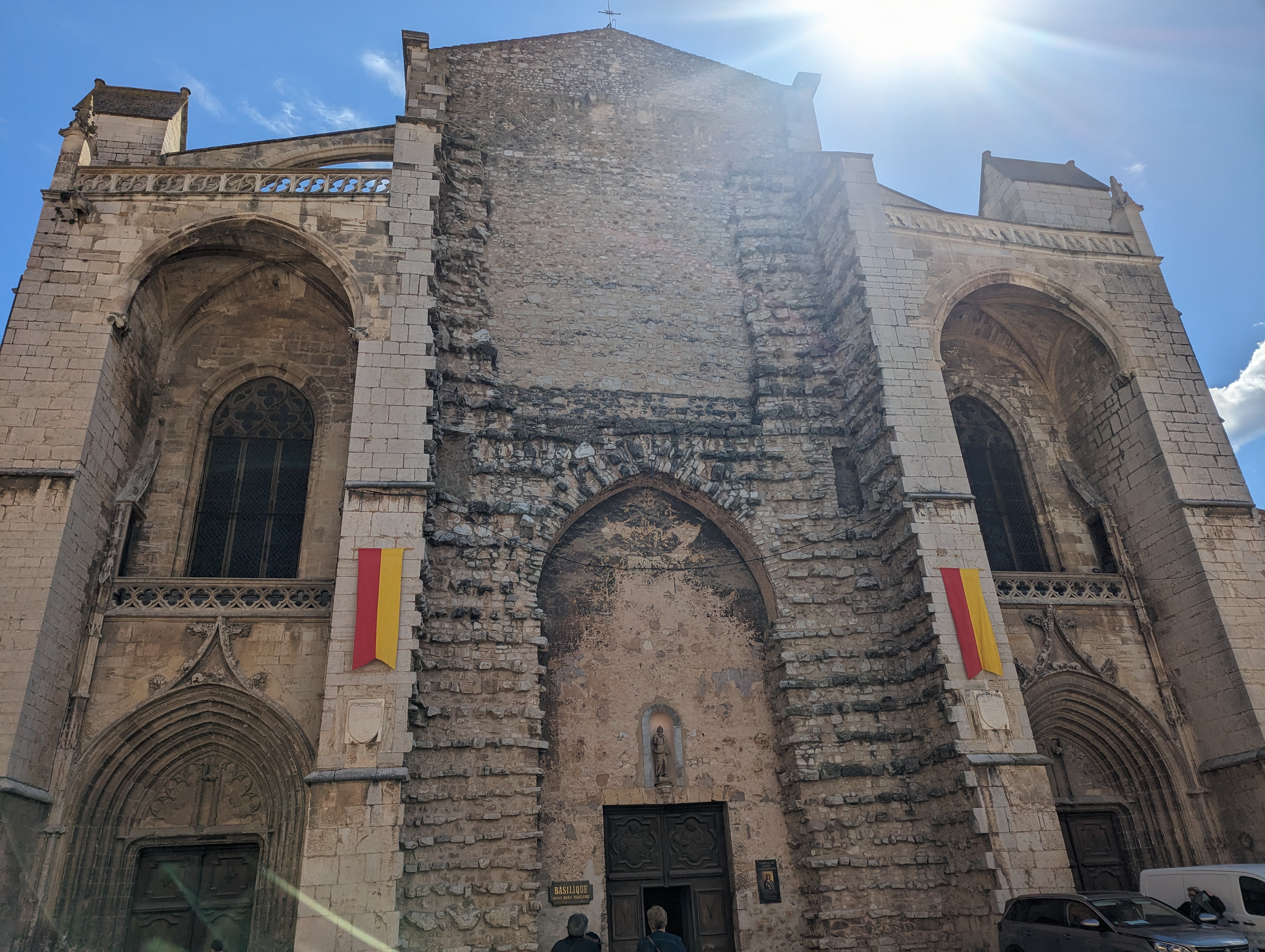 Magnifique basilique. Dans la crypte on aperçoit les reliques de ste Marie Madeleine. La façade principale n'a jamais été terminée. Haut lieu de spiritualité. Parkings à distance. De nombreux commerces en centre ville historique semblaient fermés ? Travaux de chaussée en cours.... Cette ville charmante, mériterait un rayonnement plus important.