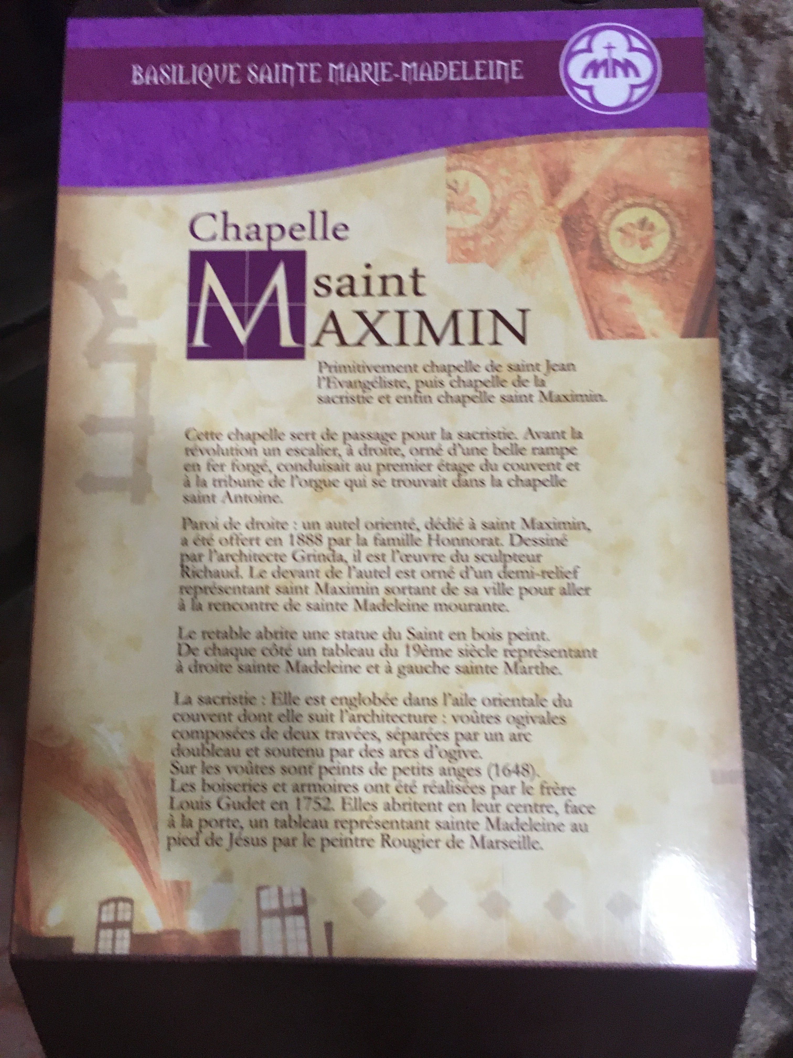 Bonjour, en cette veille de Noël, en visite à St Maximin pour visiter la basilique qui est un lieu magnifique et beaucoup de belles choses à voir. C'est vers 1297 que les choses importantes commencèrent à bouger dans ces endroit. Les récits et commentaires sur les plaques en bronze, sont d' époque et si bien décrit que franchement c'est à visiter. À voir absolument. F. F