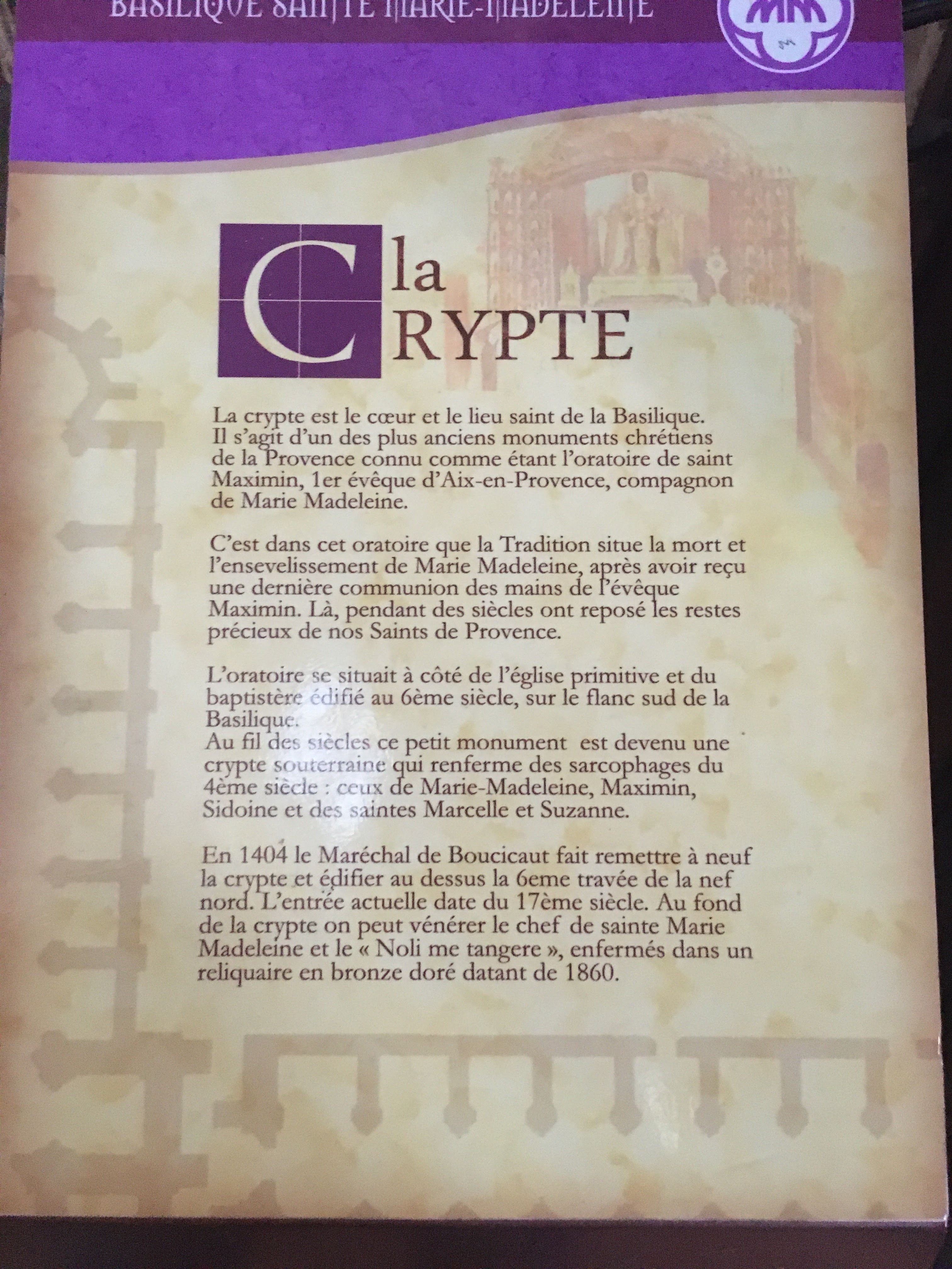 C'était un lieu spécial, mais historique et religieux avec les reliques de Marie-Madeleine. La basilique a été restaurée en septembre 2023. La crypte est accessible.