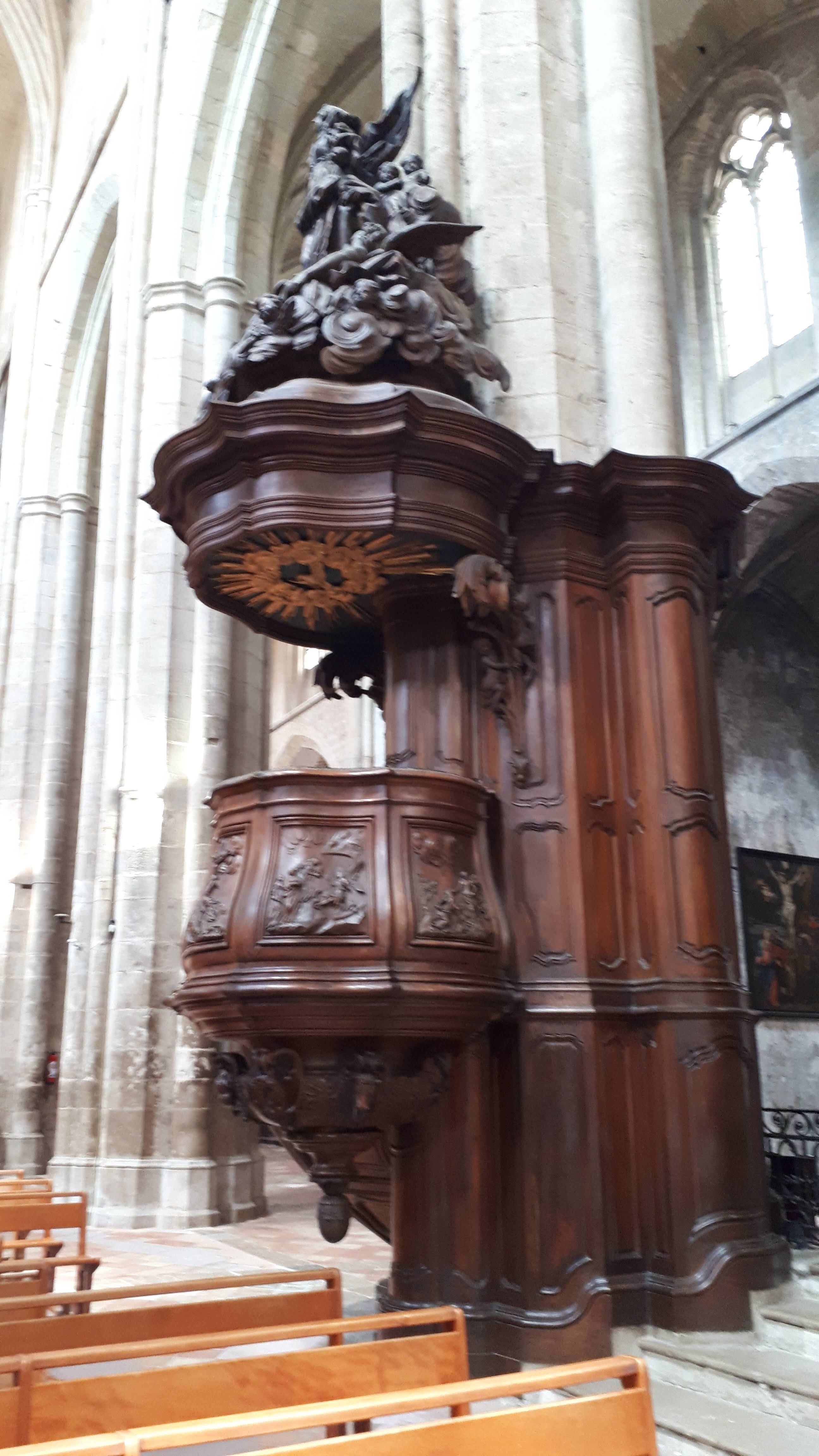 Un joyau, splendides boiseries et mobiliersculpté ,buffet d'orgues, nombreuses toiles ,mais souvent en mauvais état,comme les superbes autels en bois doré et polychrome etc ,mais le clou est la crypte dont la magie et le temps sont dans l'ombre de Marie Madeleine ,ce lieu ne peut laisser que méditation......