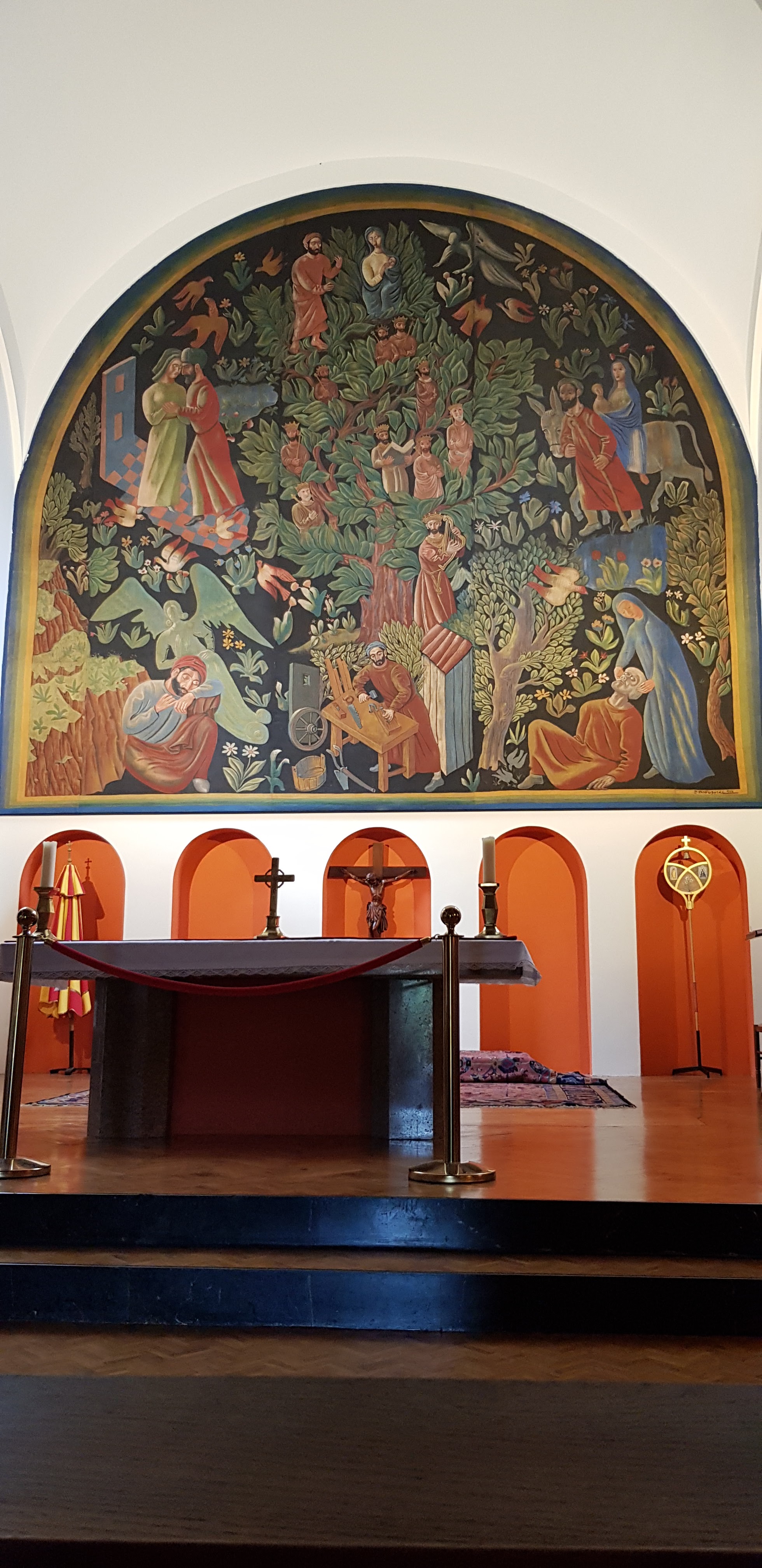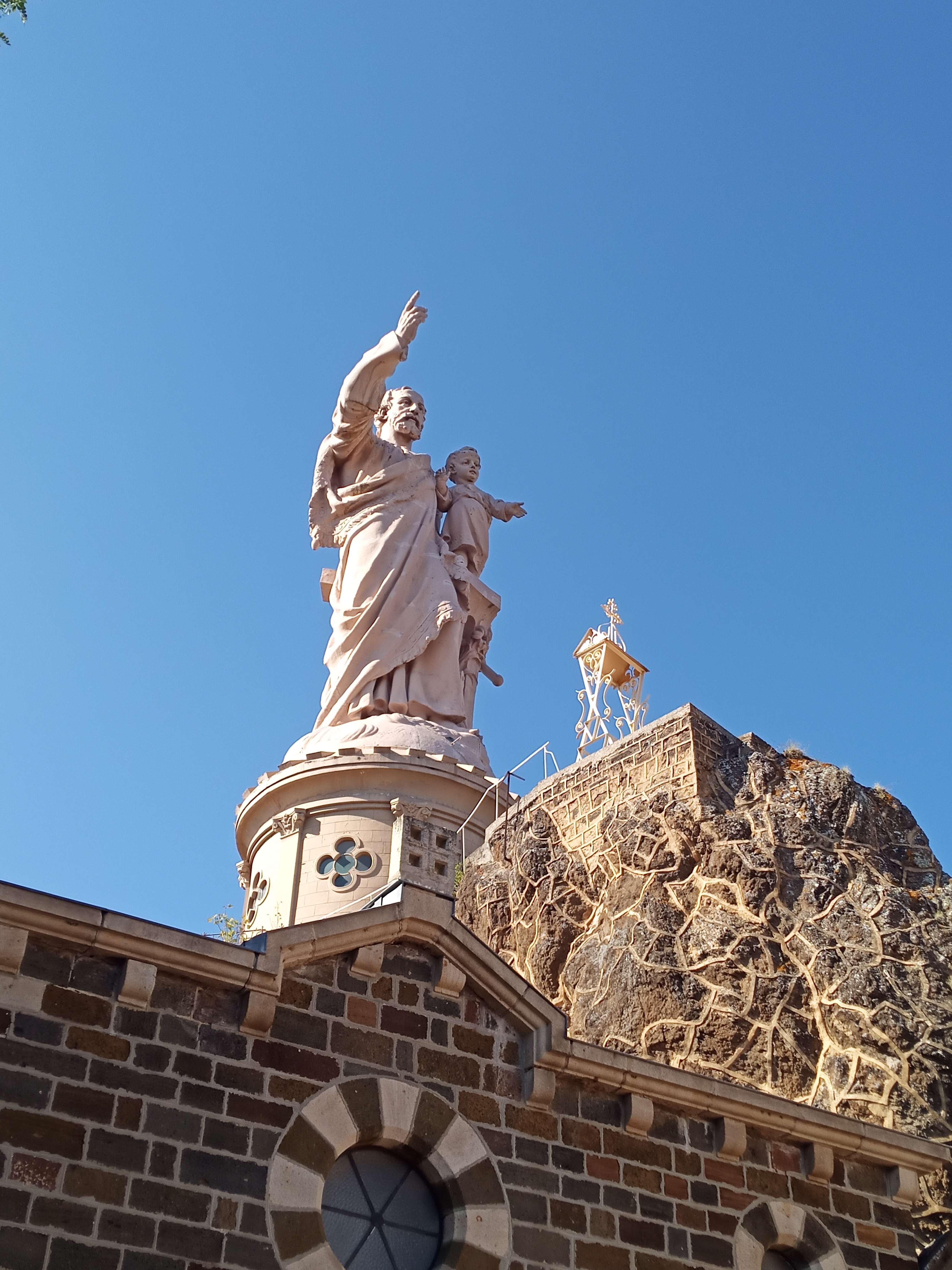 L'accès à la statue de St Joseph était fermé. Mis à part nous, sous 38 degrés, il n'y avait personne L'église est à visiter, entièrement dédiée à St Joseph avec une splendide peinture sur toile relatant sa vie