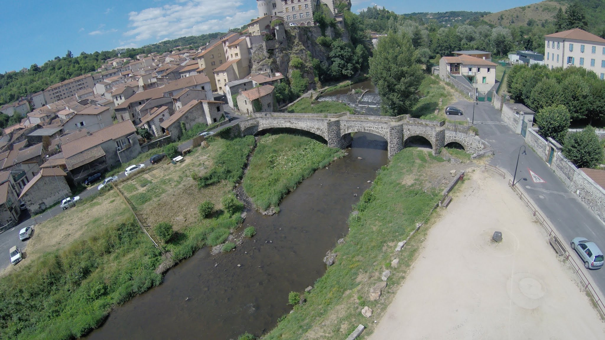Site surprenant au dessus d'un village en colimaçon, joli pont sur la Borne